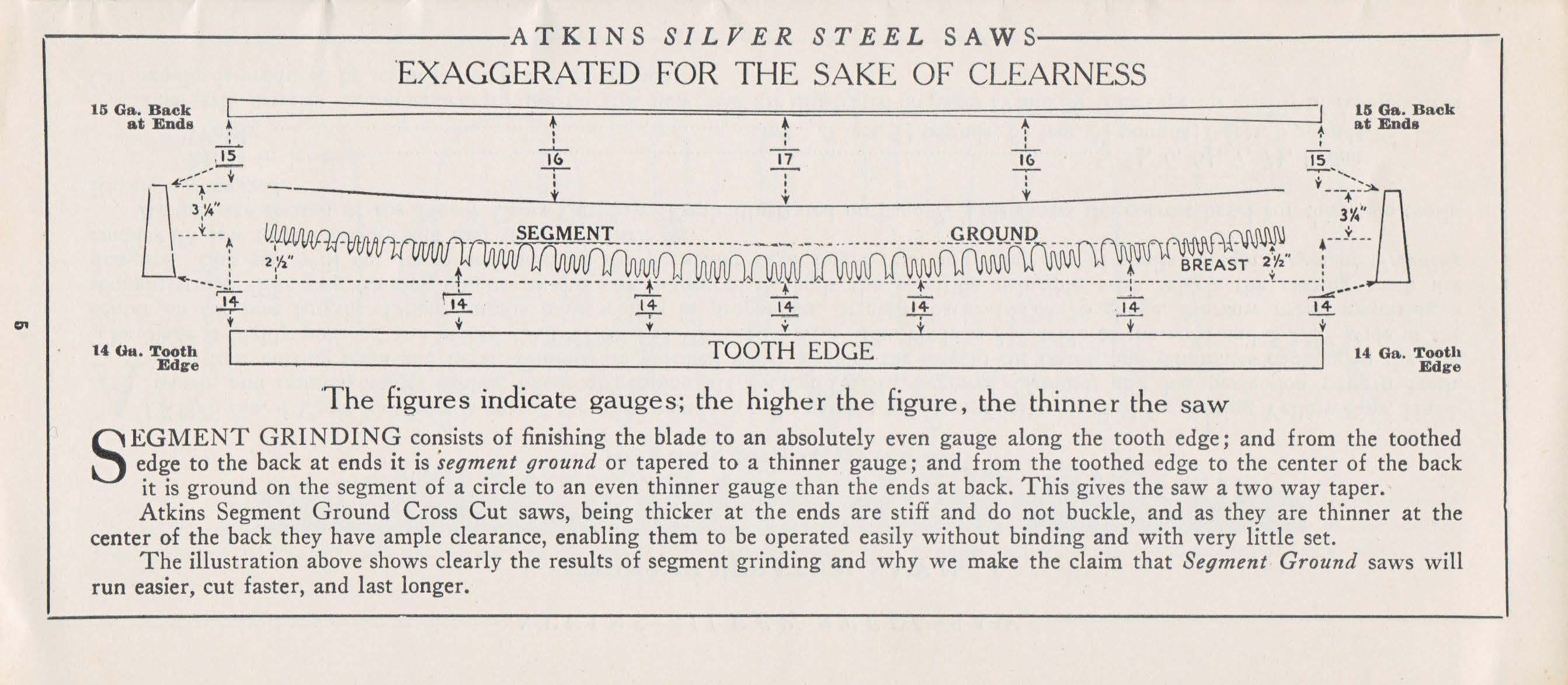 - More on Segment Grinding, Information about the advantages of segment grinding. From the Atkins Crosscut Saws Eastern Patterns A Page 07.