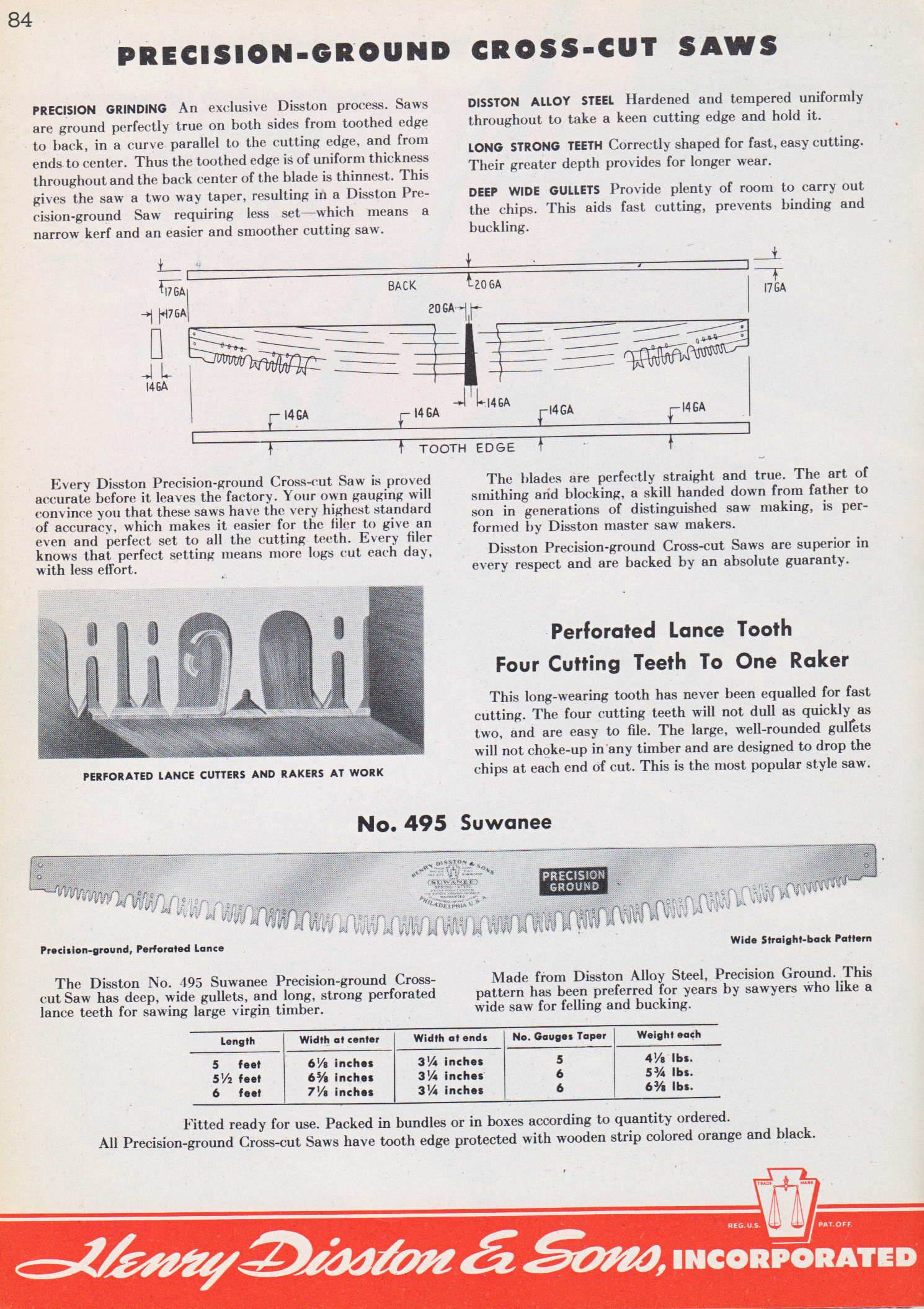 - Disston Precision-Grind,, Disston Precision-Ground Cross-Cut Saws. From the Disston catalog for 1923