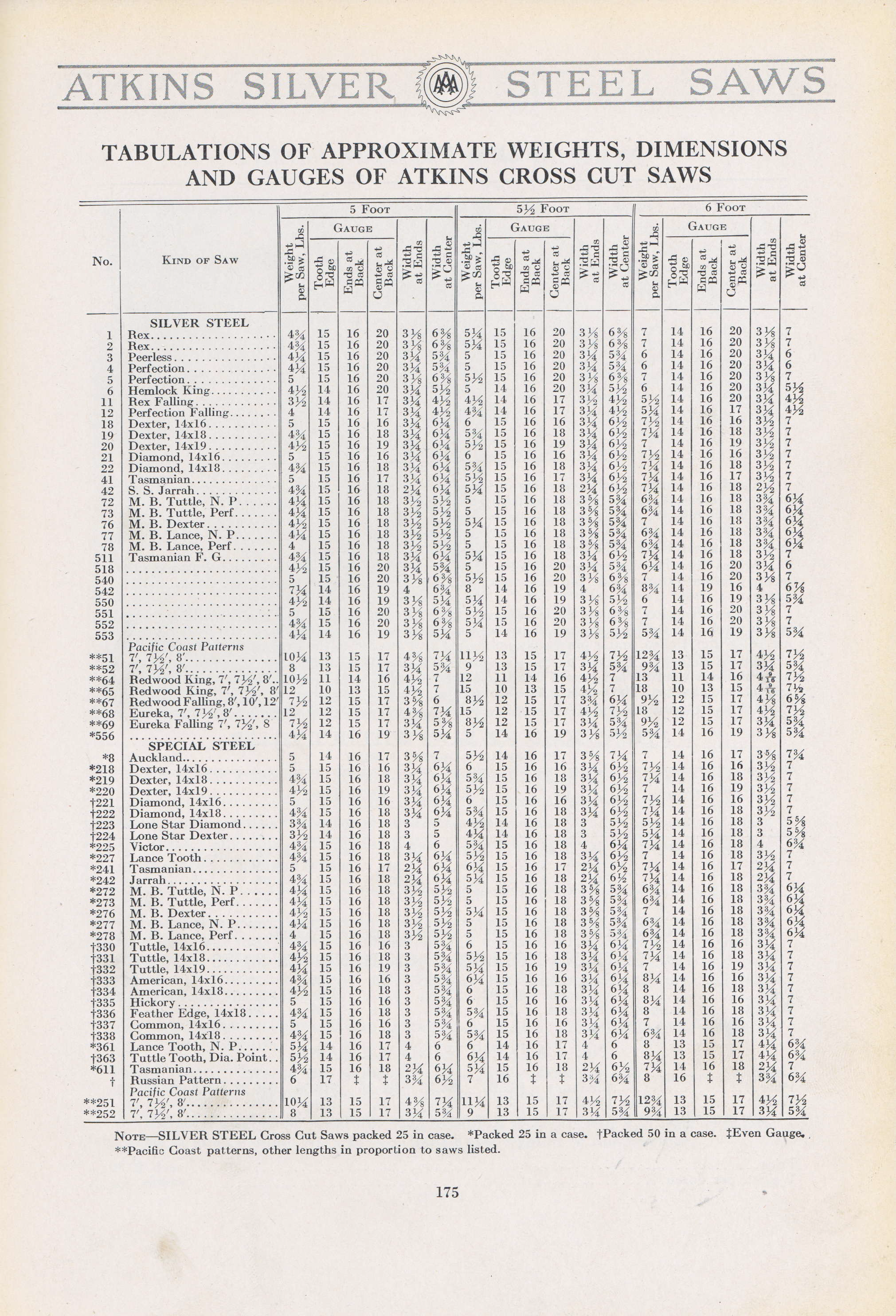 - All Atkins Saws with weights and sizes, From Atkins catalog 19 from 1923.