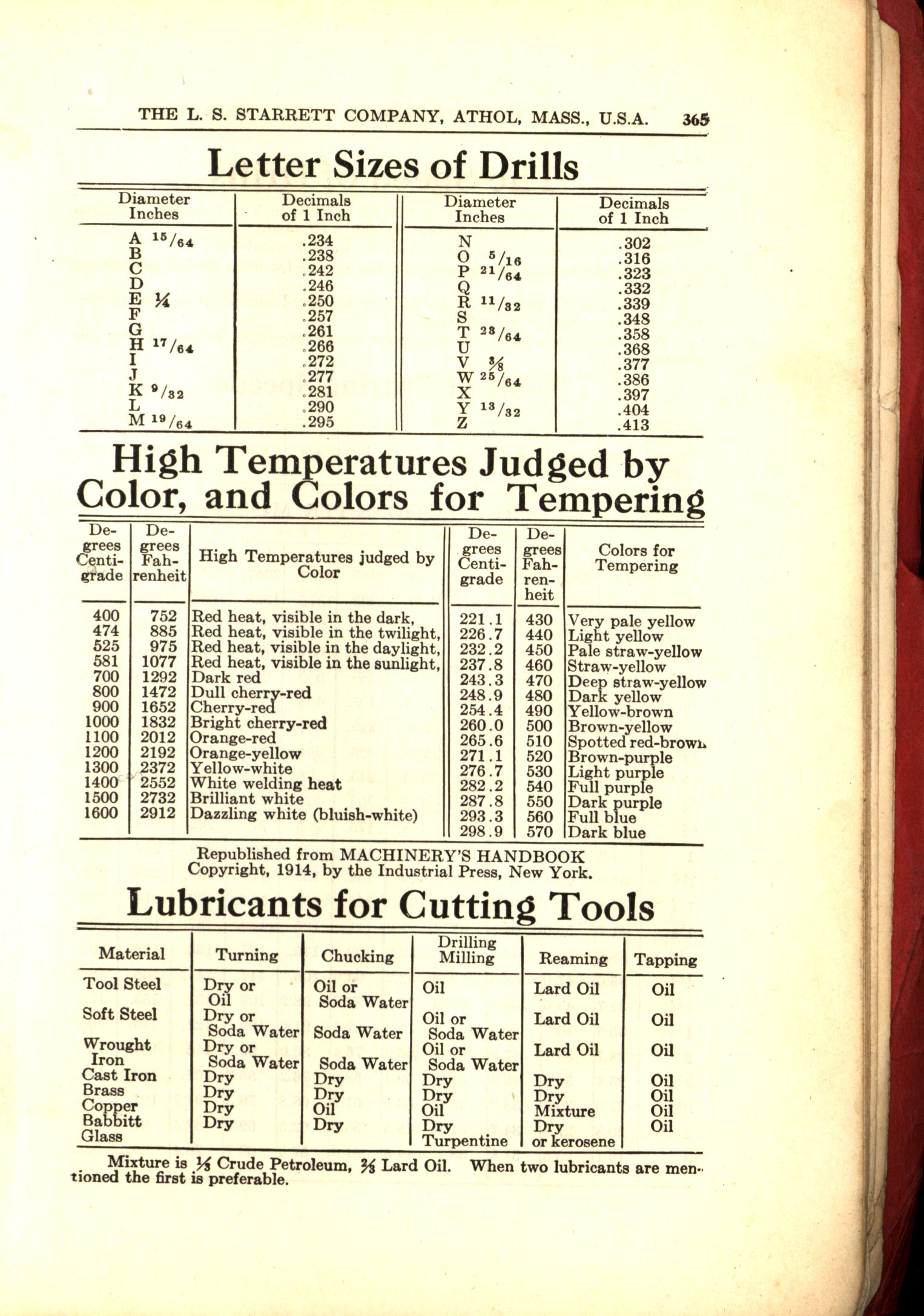 - Color Temperatures, High Temperatures Judged by Color, and Colors for Tempering. From L.S.Starrett catalog no 25, 1935