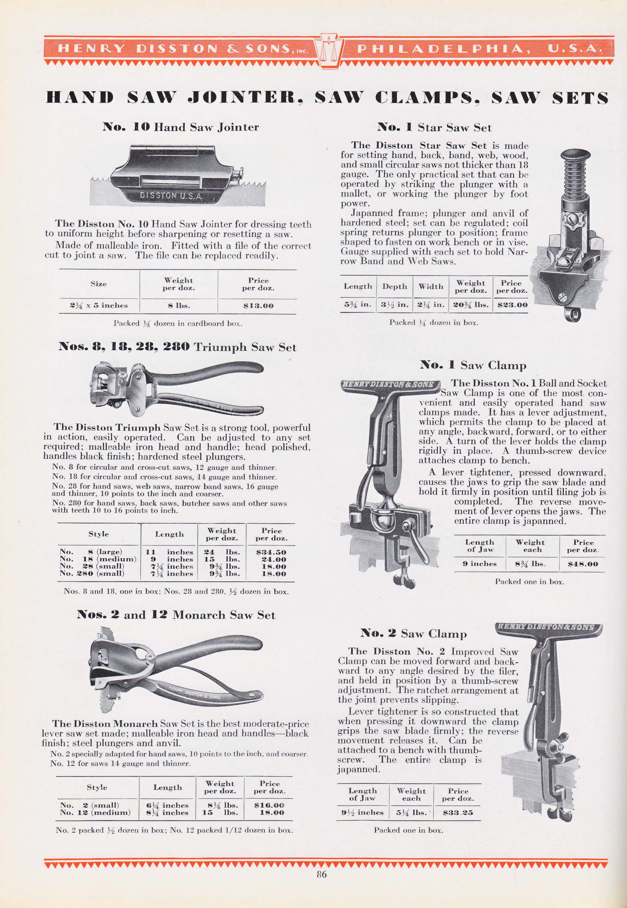 - Disston Saw in History 1916, 72 pages, PDF. This, and some similar documents, is a reason that Disston is a relatively well know saw maker.