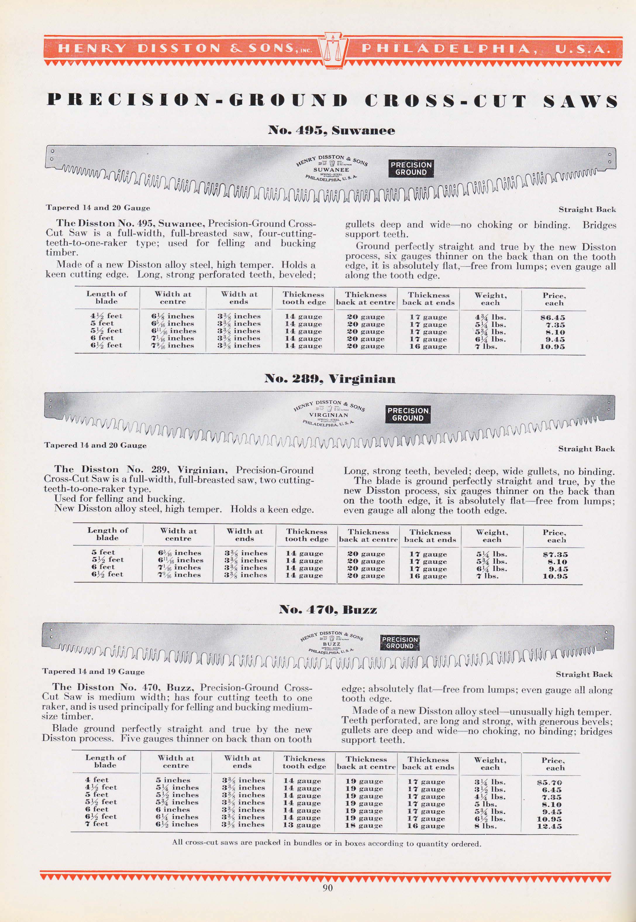 - Precision-Ground Cross-Cut Saws, 495, 289, 470, Suwanee, Virginian, Buzz