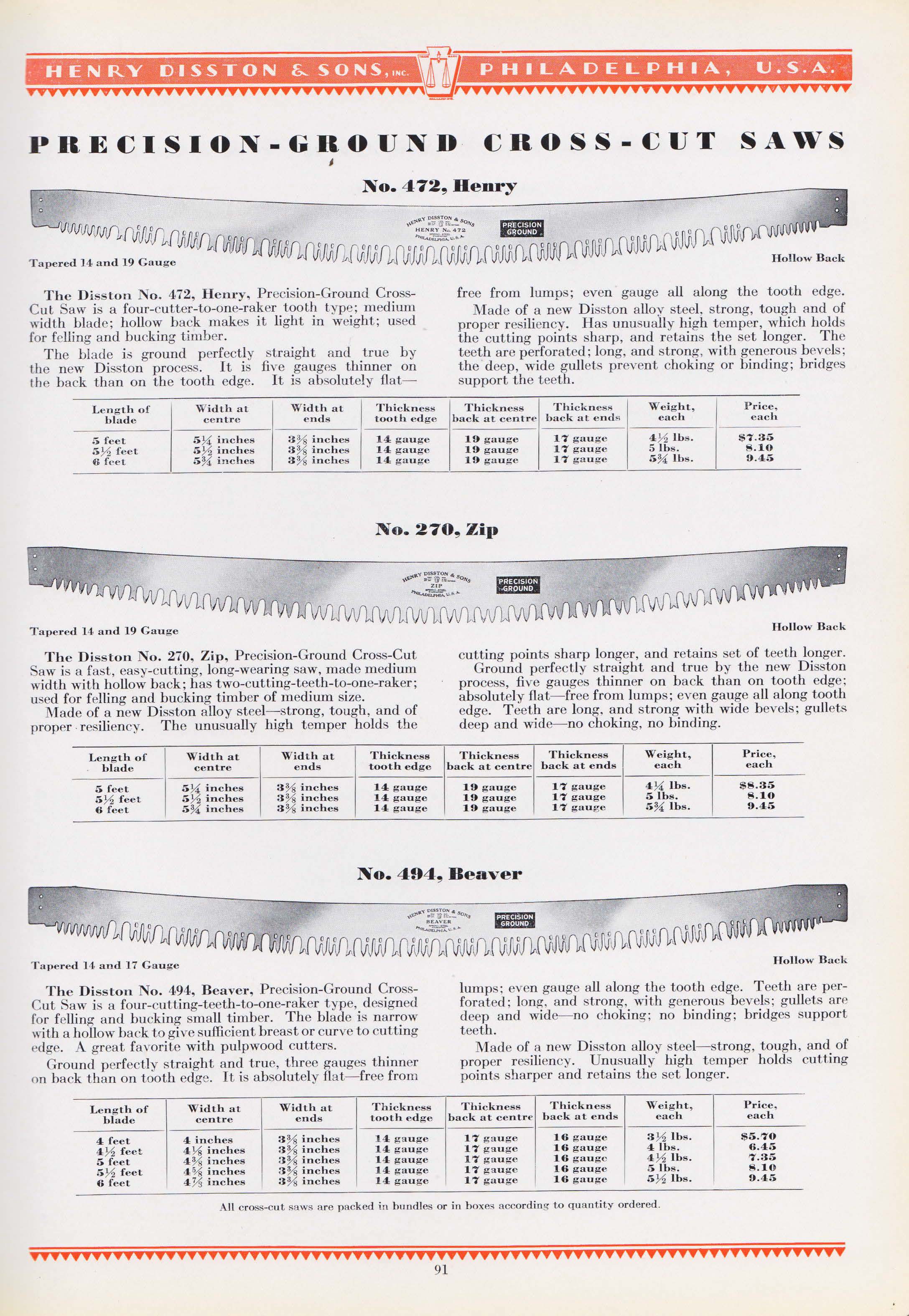 - Precision-Ground Cross-Cut Saws, 472, 270, 494, Henry, Zip, Beaver