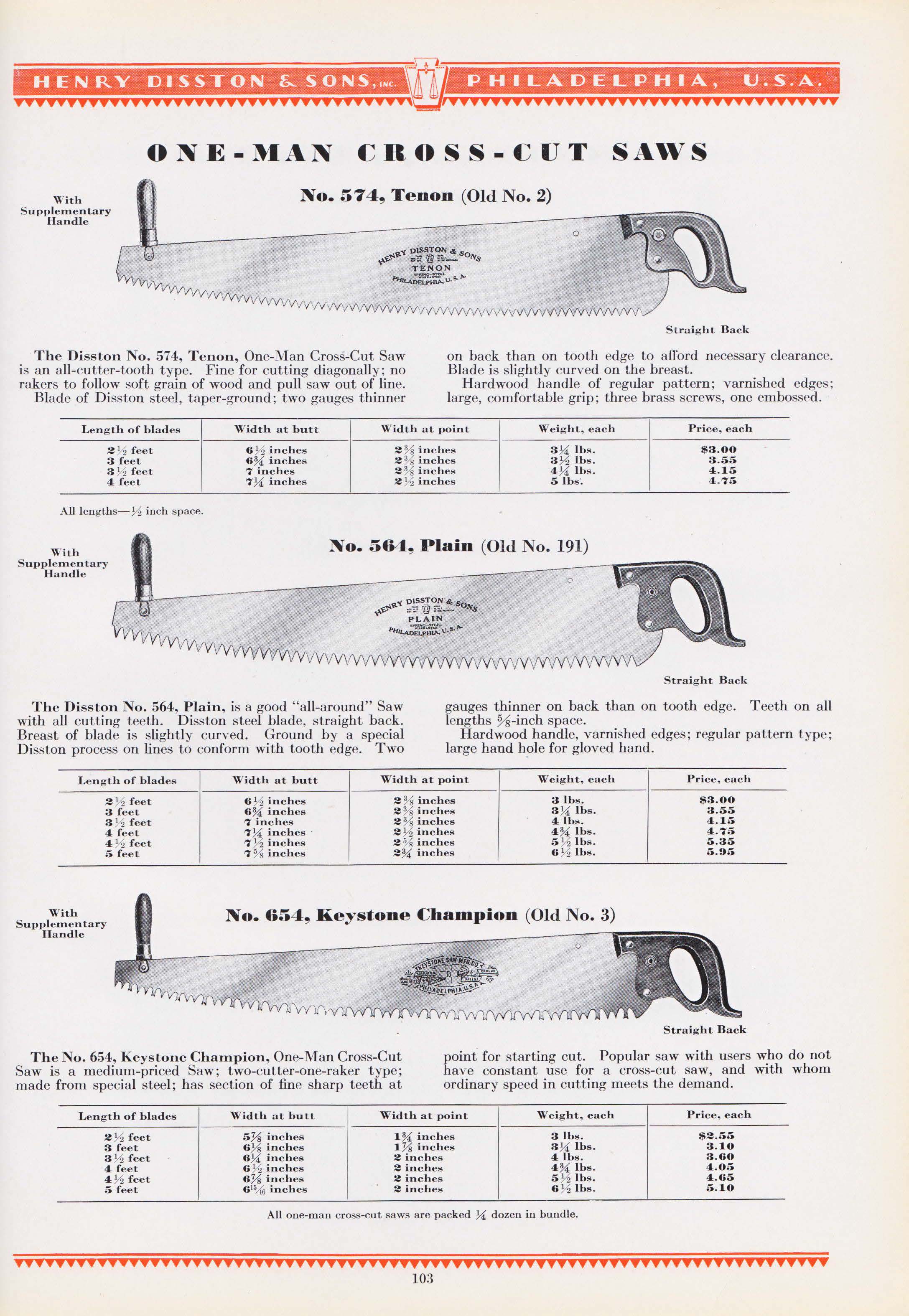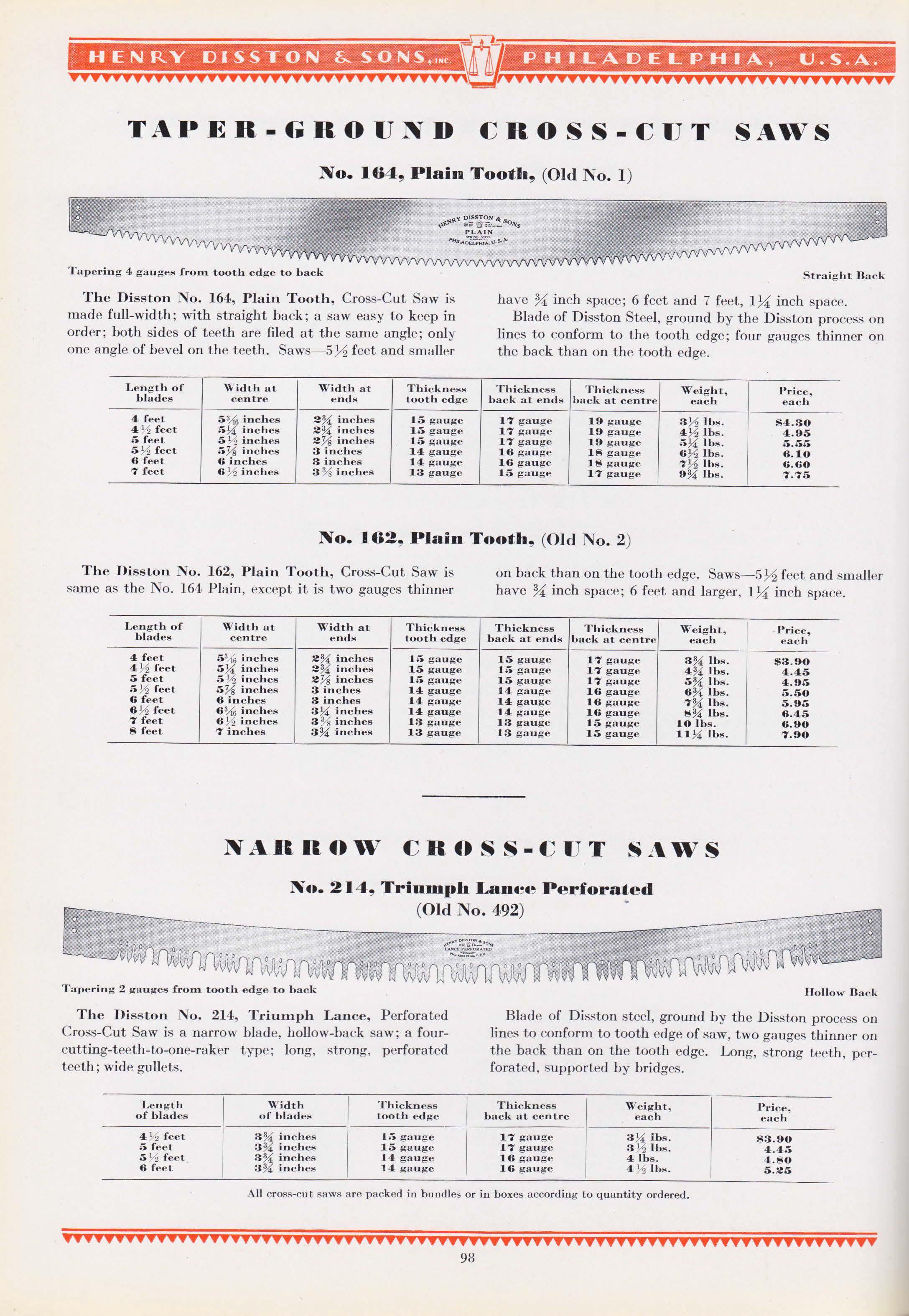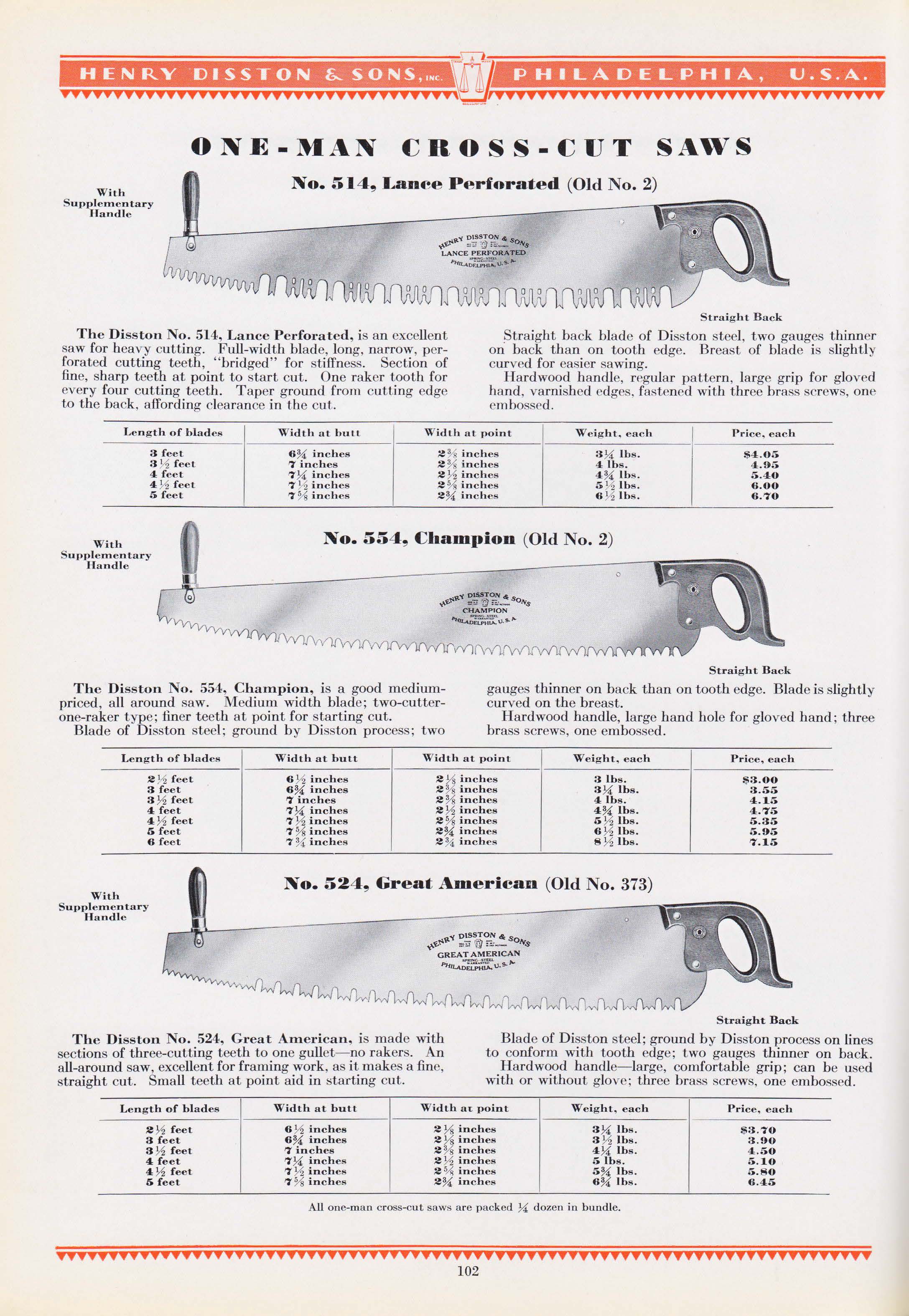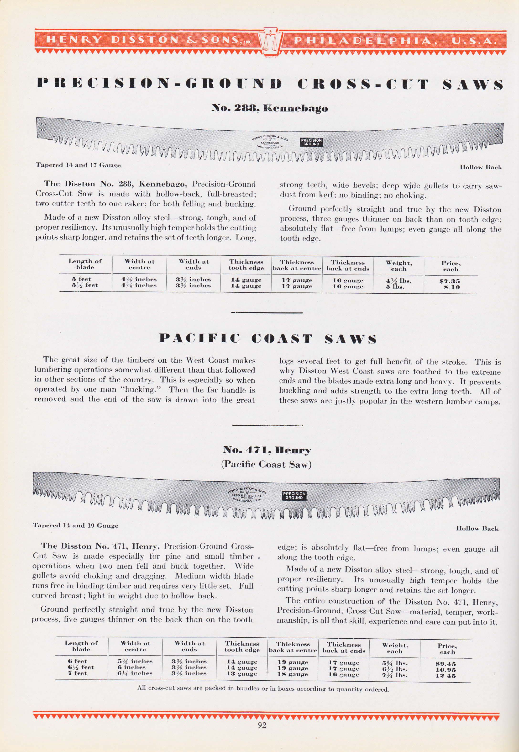 - Disston ca1919 Cross Cut Saws, 57 pages, PDF
