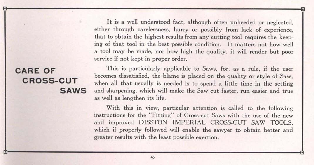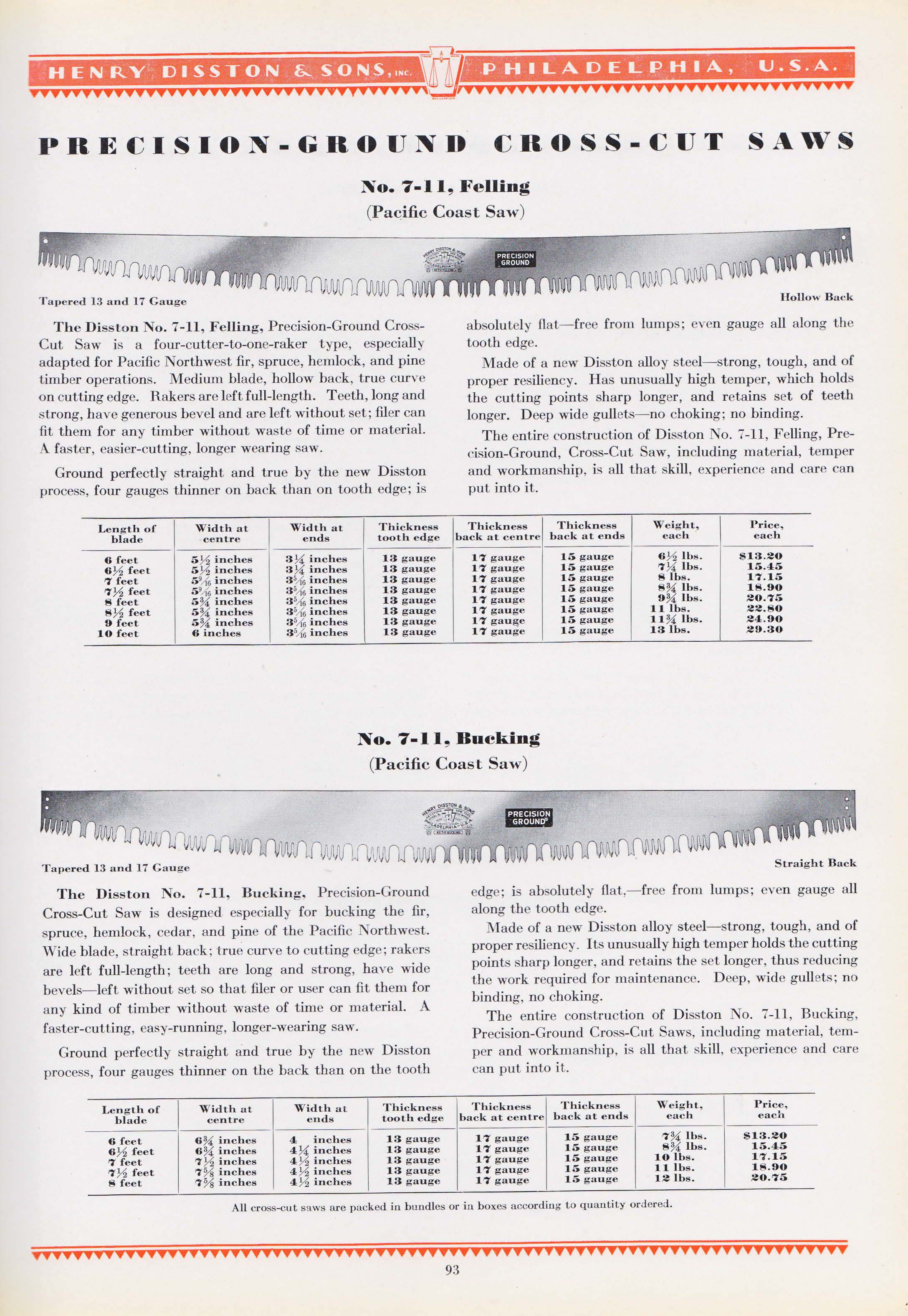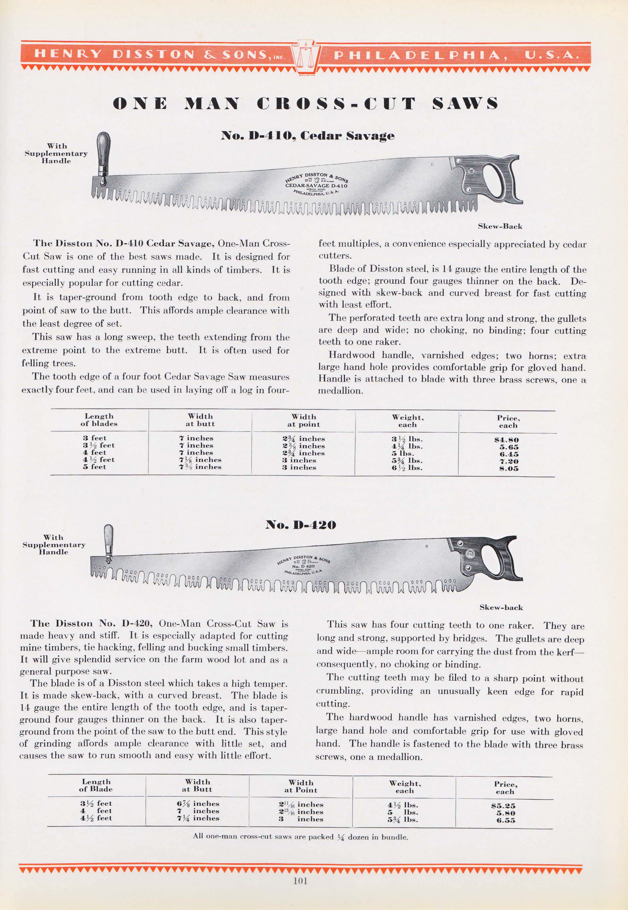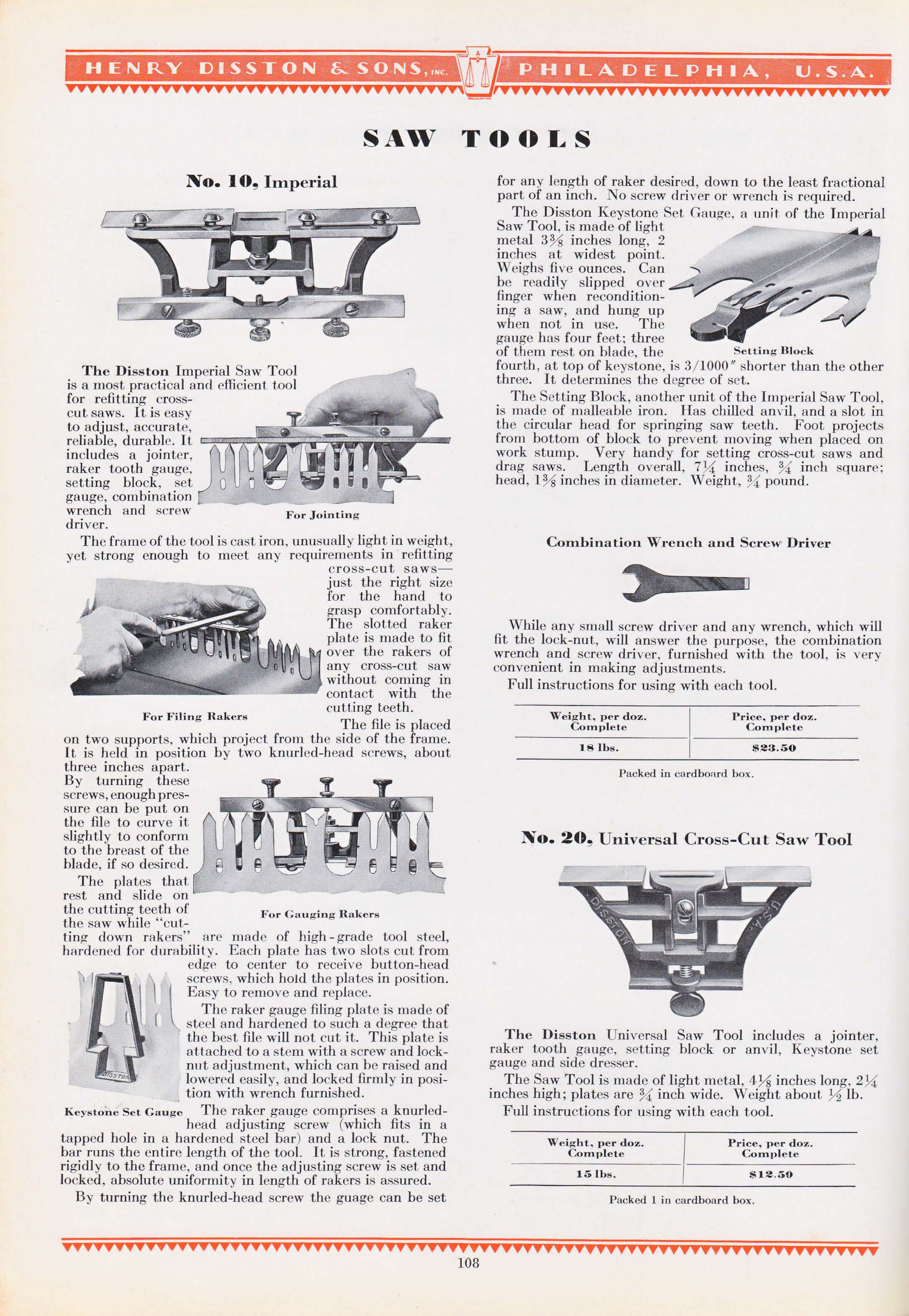 - Disston ca1919 Cross Cut Saws, 57 pages, PDF