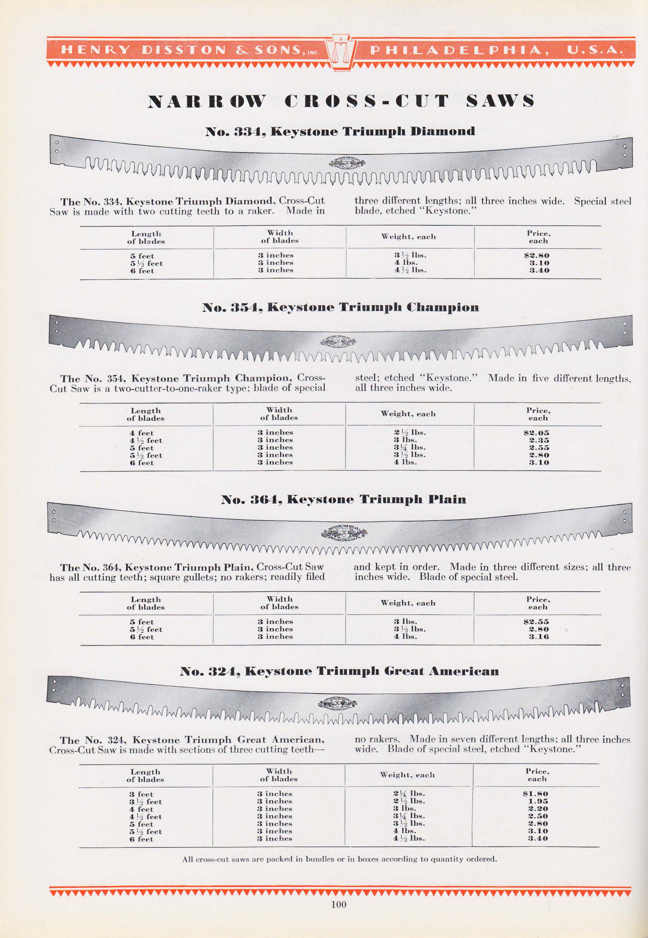 - Narrow Cross-Cut Saws, 334, 354, 364, 324, Keystone Triumph Diamond, Champion, Plain, Great American