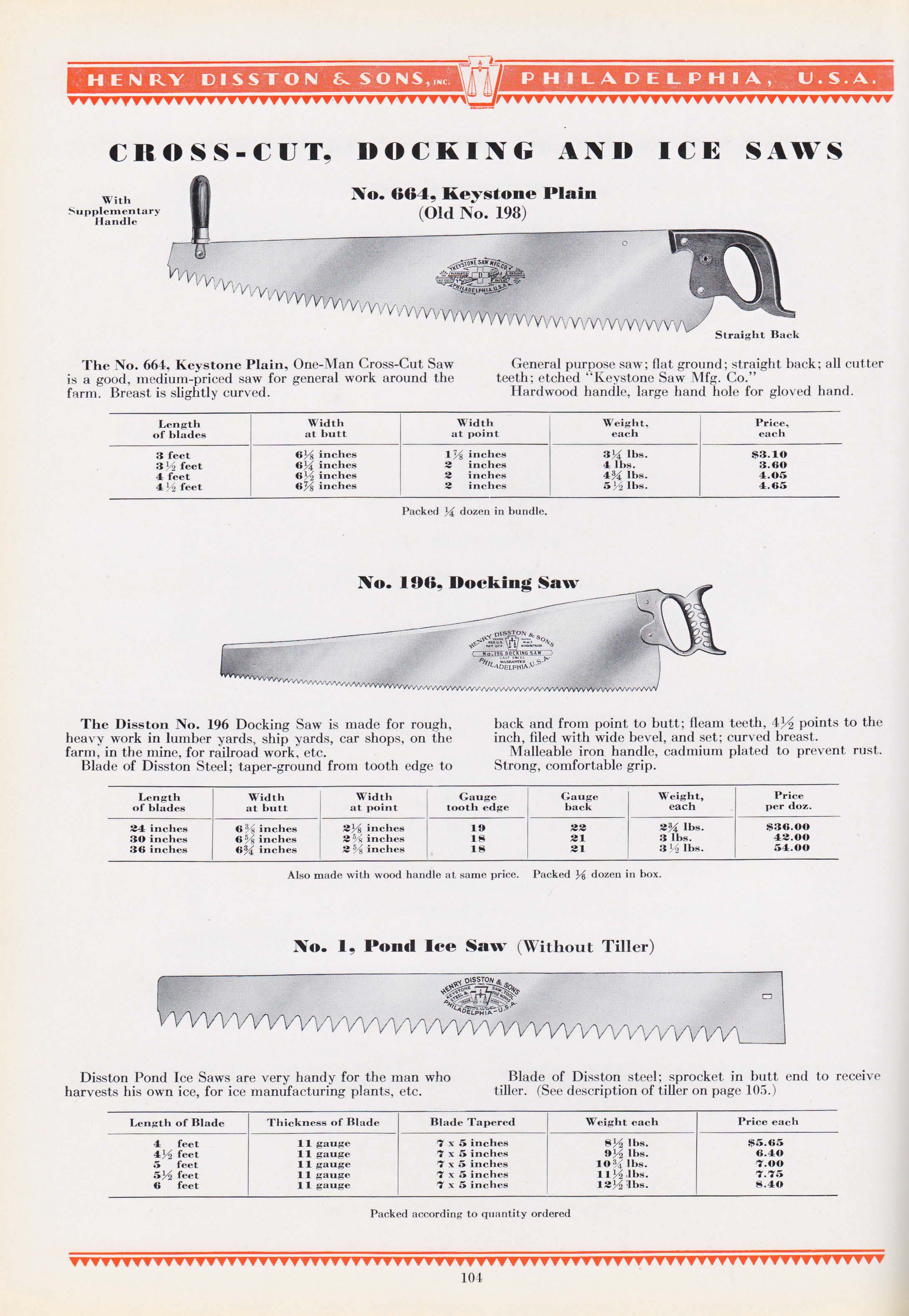 - Cross-Cut Docking and Ice Saws, 664, 196, 1, Pond Ice Saw, Docking Saw, Keystone Plain (Old No 198)
