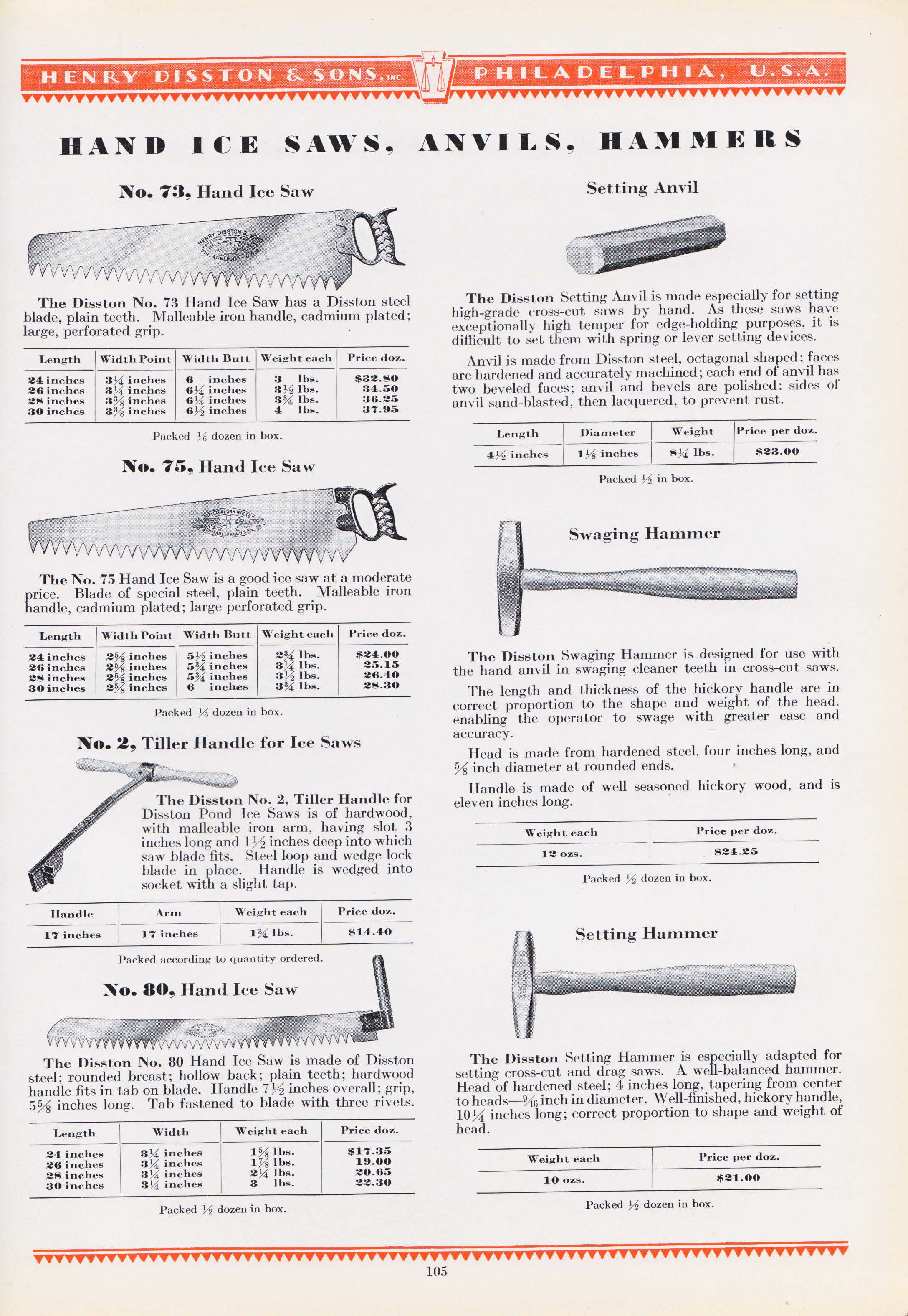 - Hand Ice Saws, Anvil, Hammers, 73, 75, 80, Hand Ice Saw, Setting Anvil, Swaging Hammer, Setting Hammer