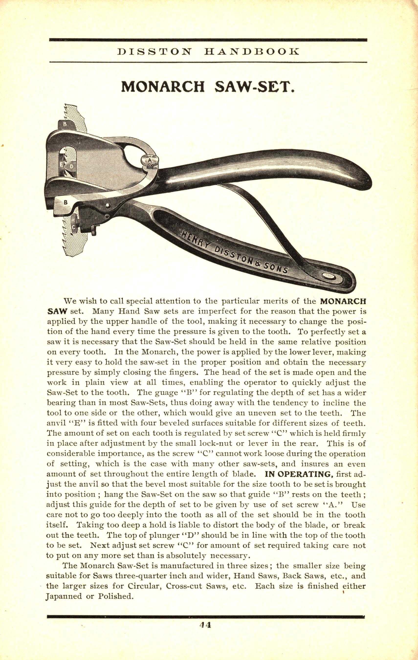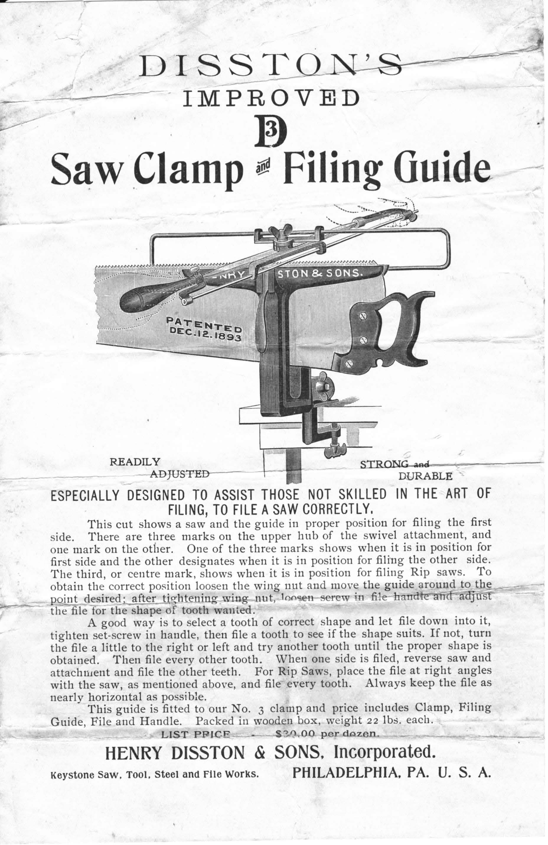 - Disston Ltd How to Set and File Your Saw before 1900? 2 pages, PDF