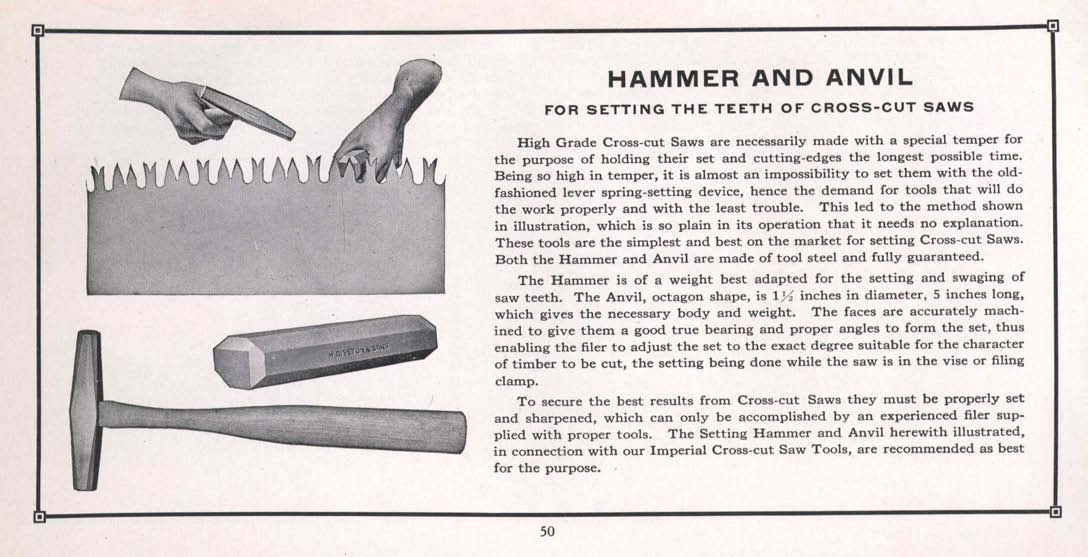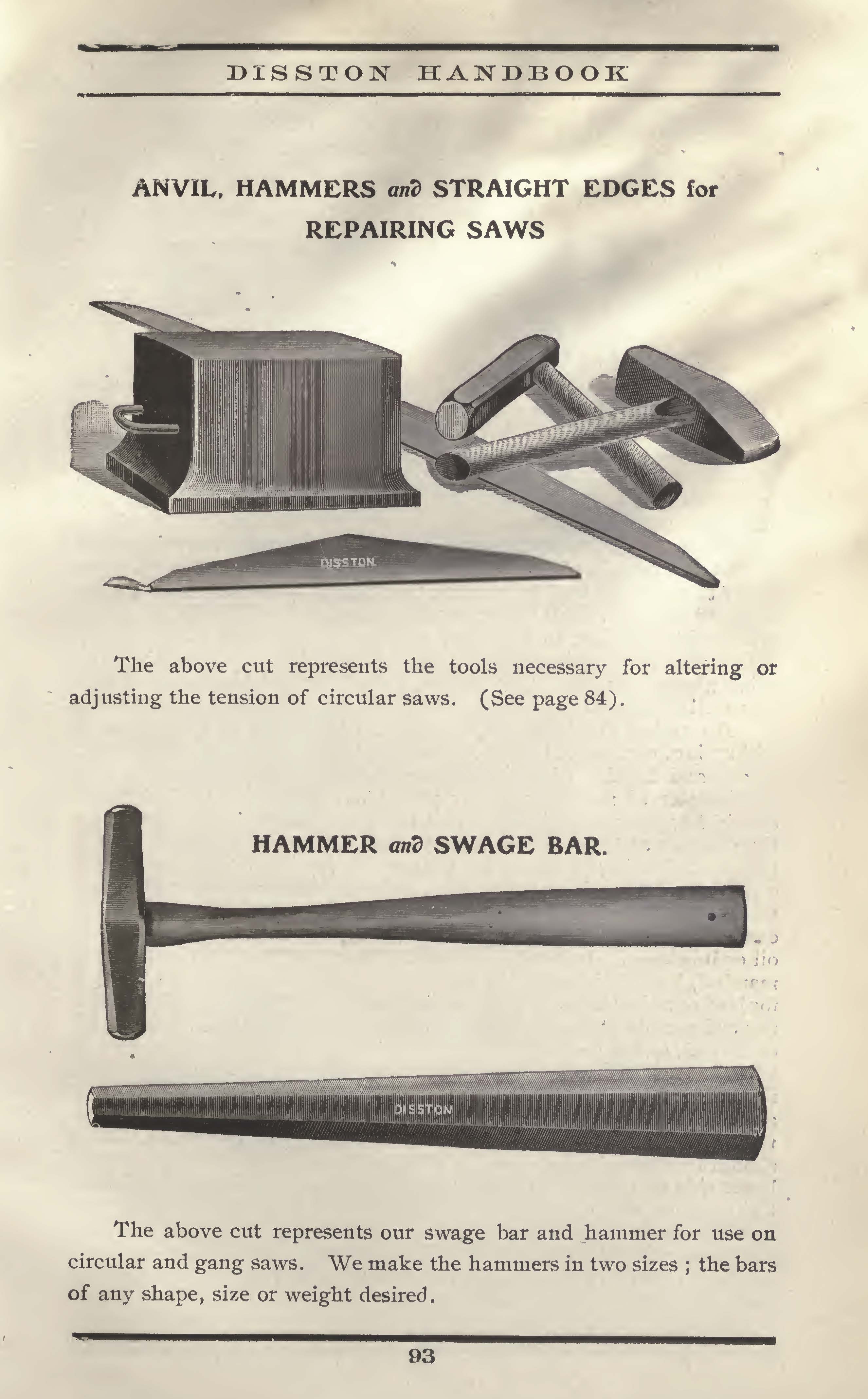 - Anvils, Hammers and Straight Edges for Repairing Saws, Hammer and Swage Bar
