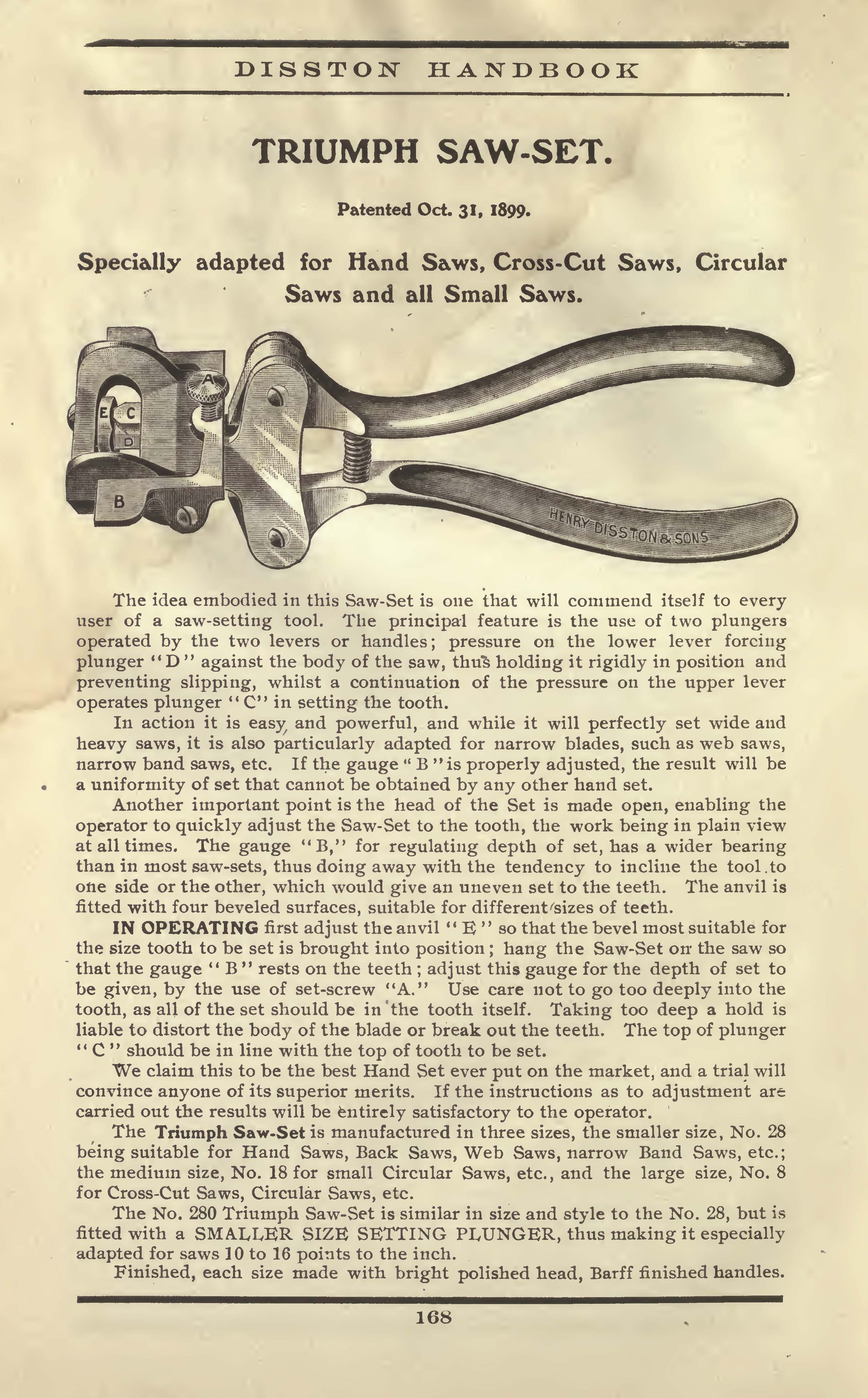 - Disston Handbook on Saws 1917, Contains much more information about saws. 224 pages, PDF