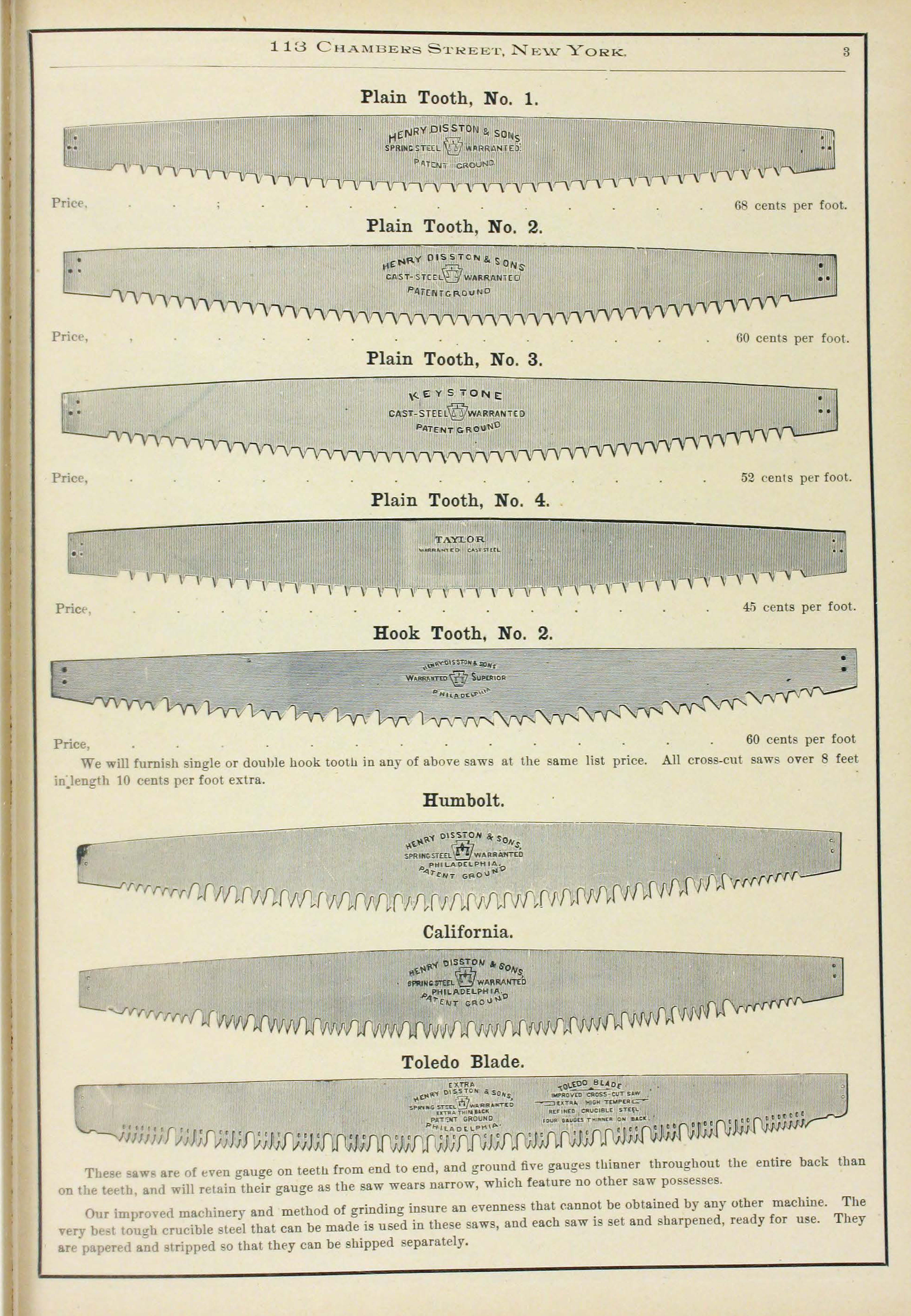 - Henry Disston and Sons abt 1879, 11 pages, PDF