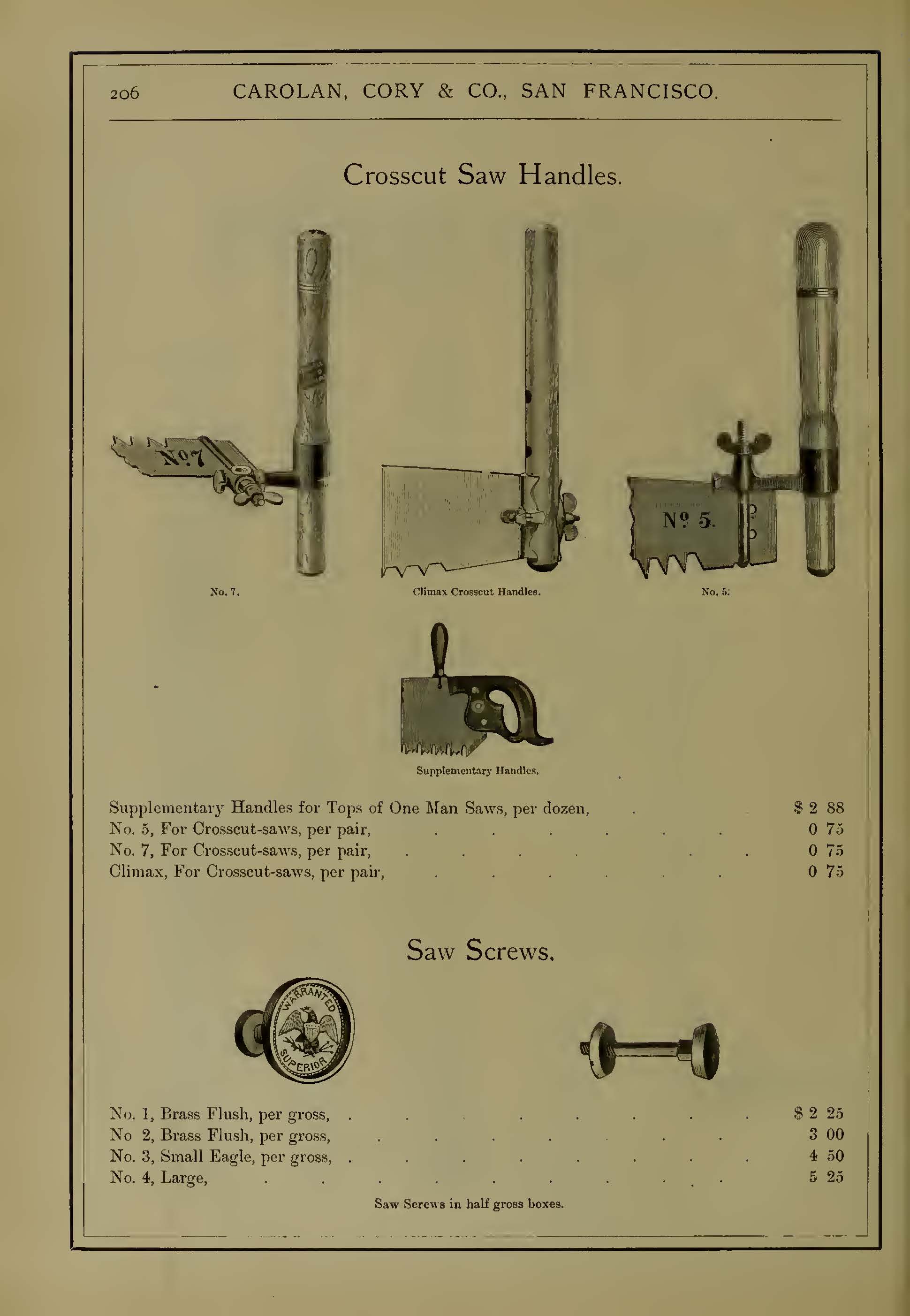 - An old hardware catalog (Carolan Cory) that contains Disston saws about 1879?, 440 pages, PDF