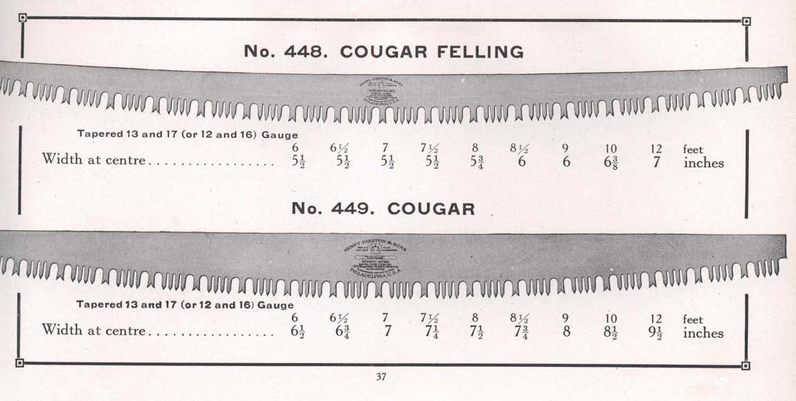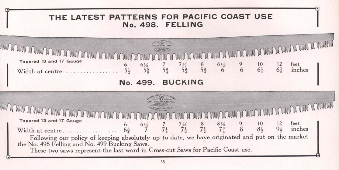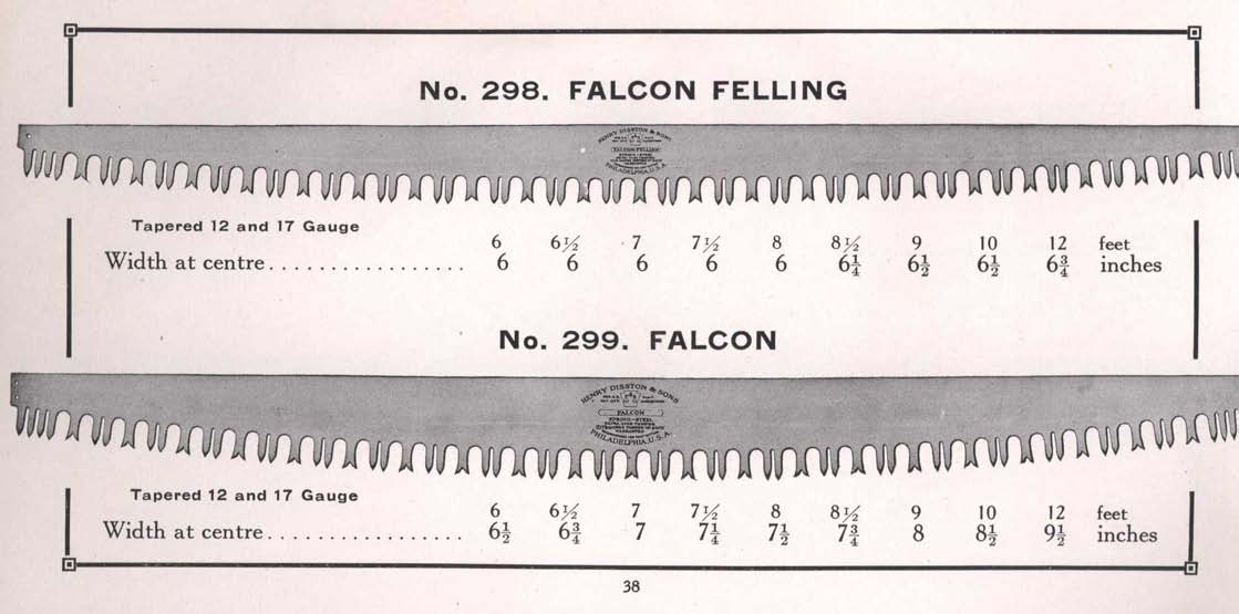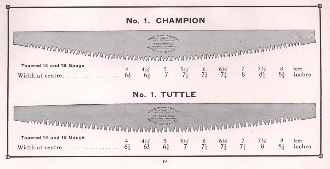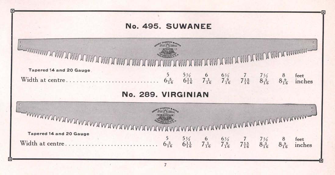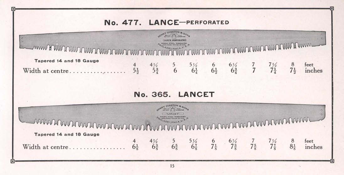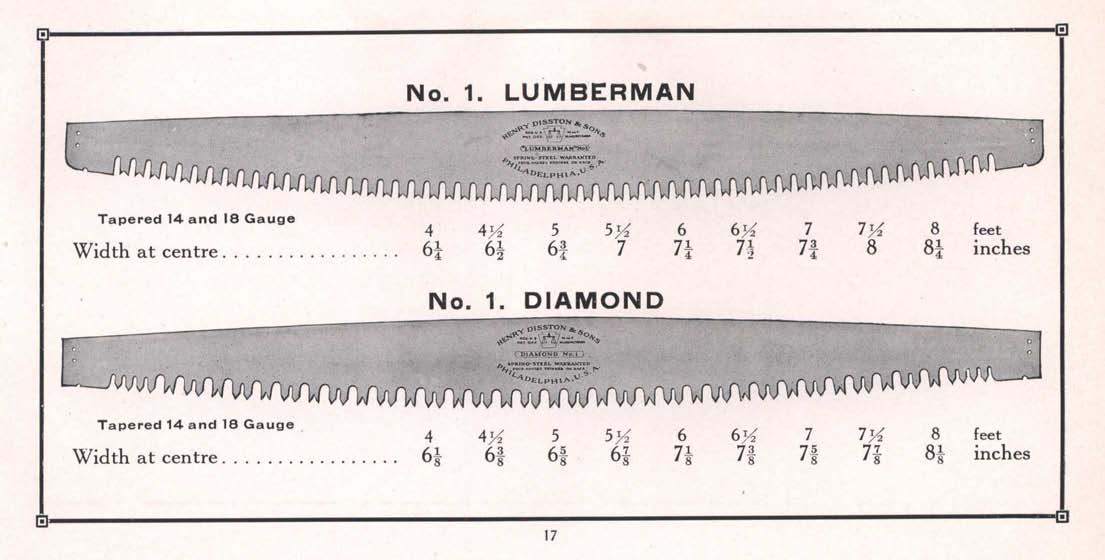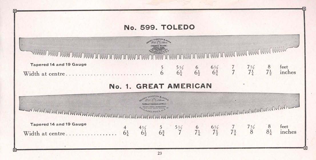 Note in many of the following catalog pages there is a suggestion that the image is full size. All images have been scanned in and the size that is available here may or may not have a close relation to the actual saw tooth size.
