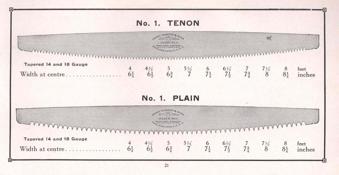 The "Disston 1917 catalog" is quite complete and has extra back ground information.