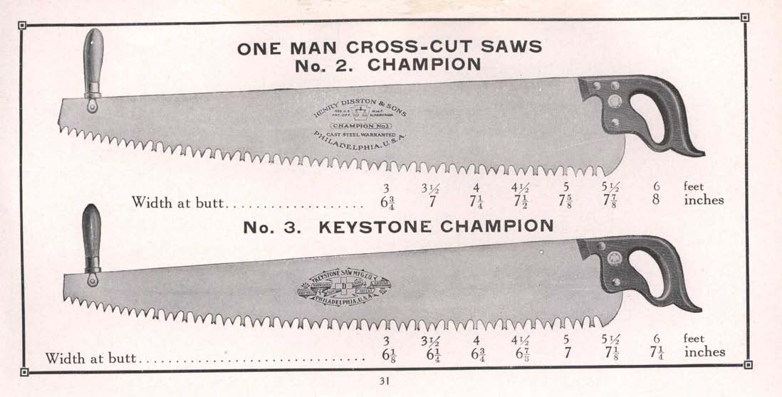 - One Man Cross-Cut Saws, No 2, No 3, Champion, Keystone Champion