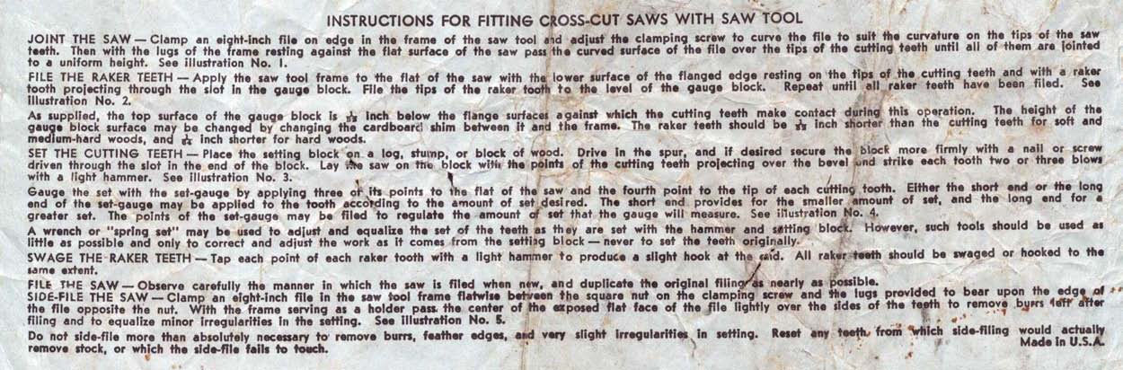 - Instructions for Fitting Cross-Cut Saws with Saw Tool