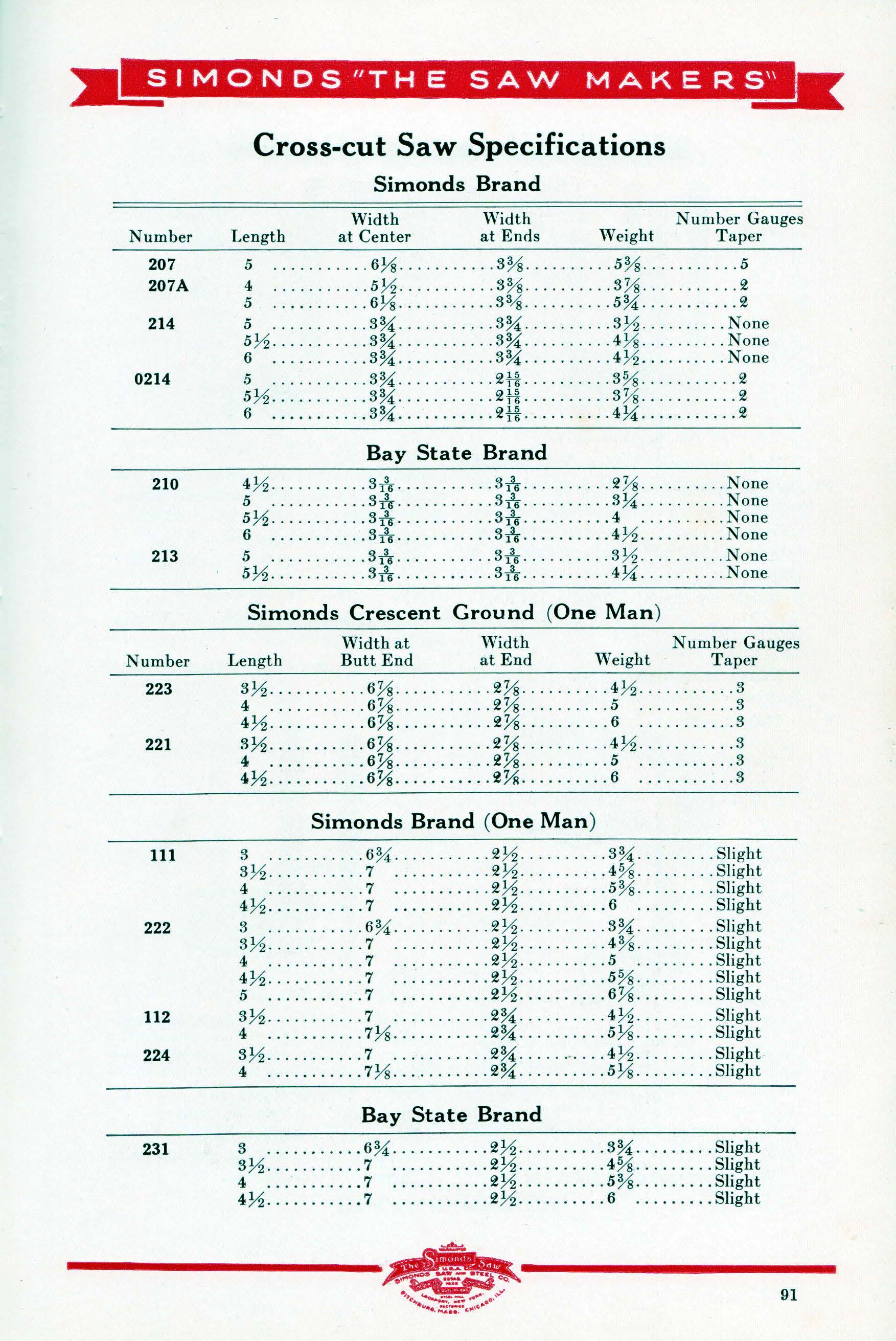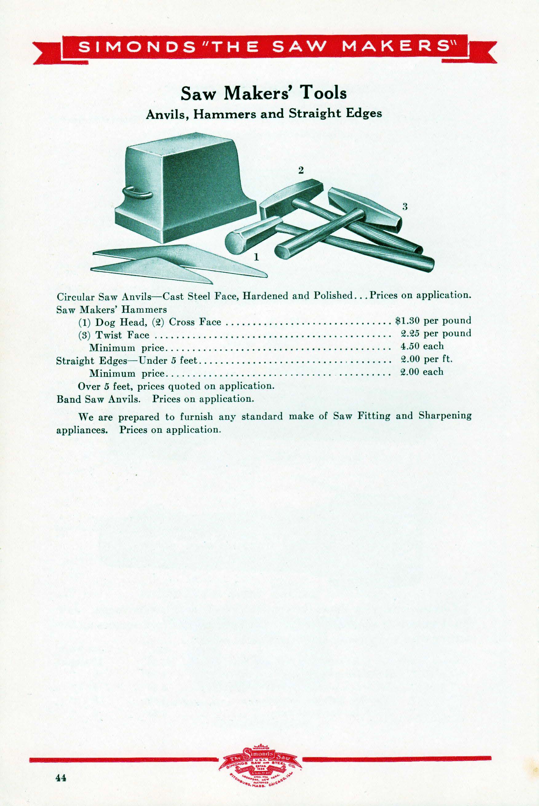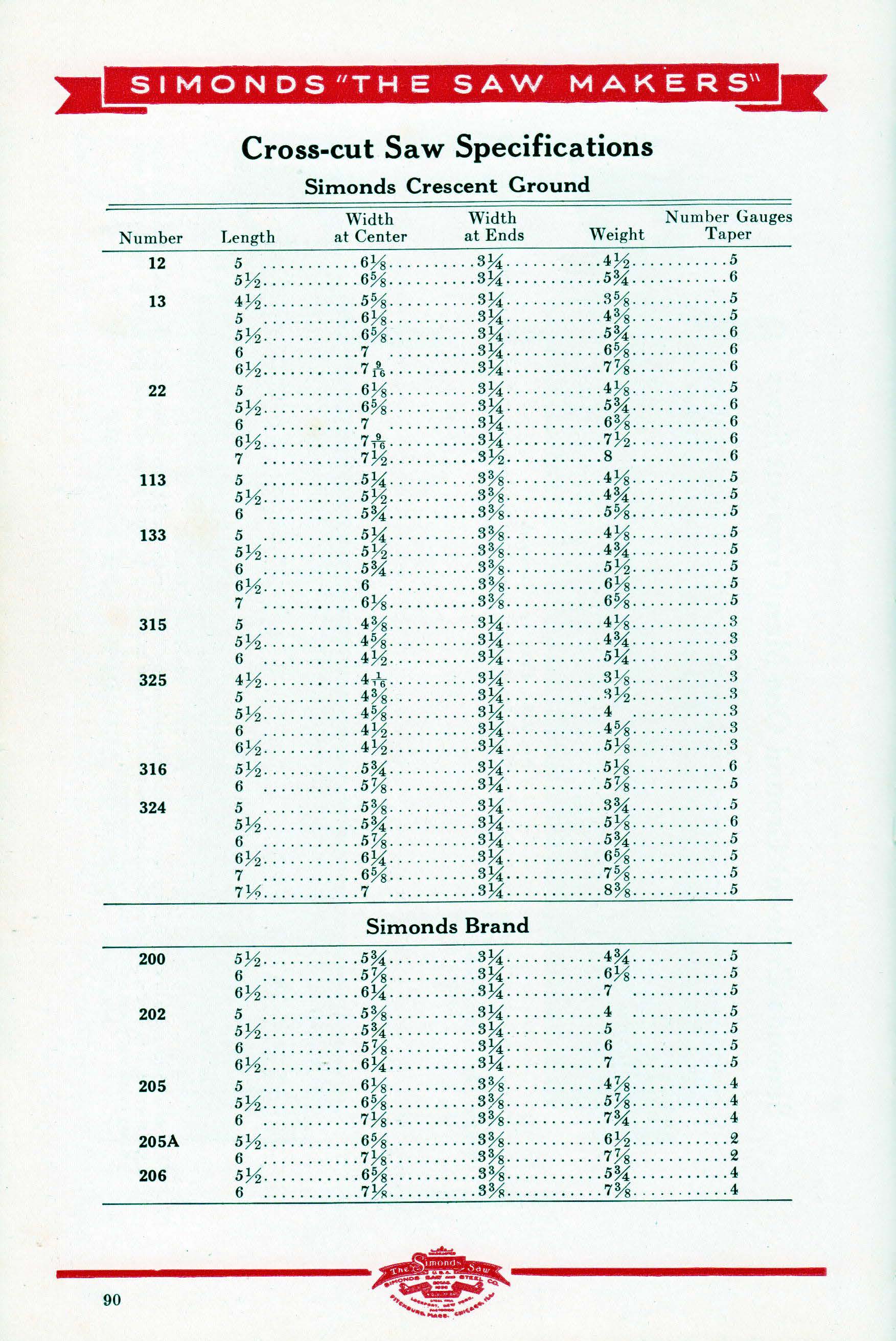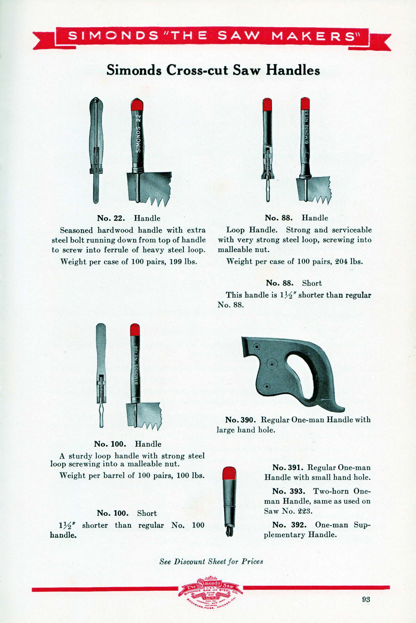 - Saw and Handle Data From the "Simonds Catalog 38"