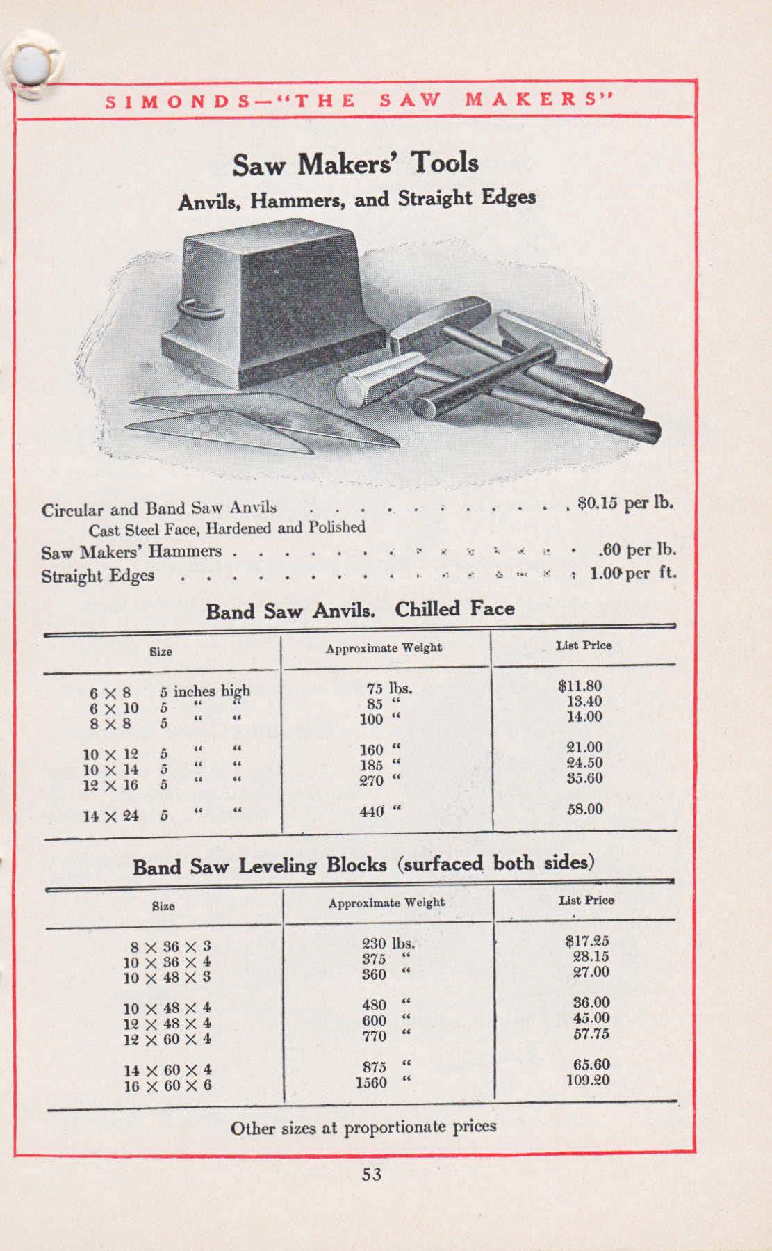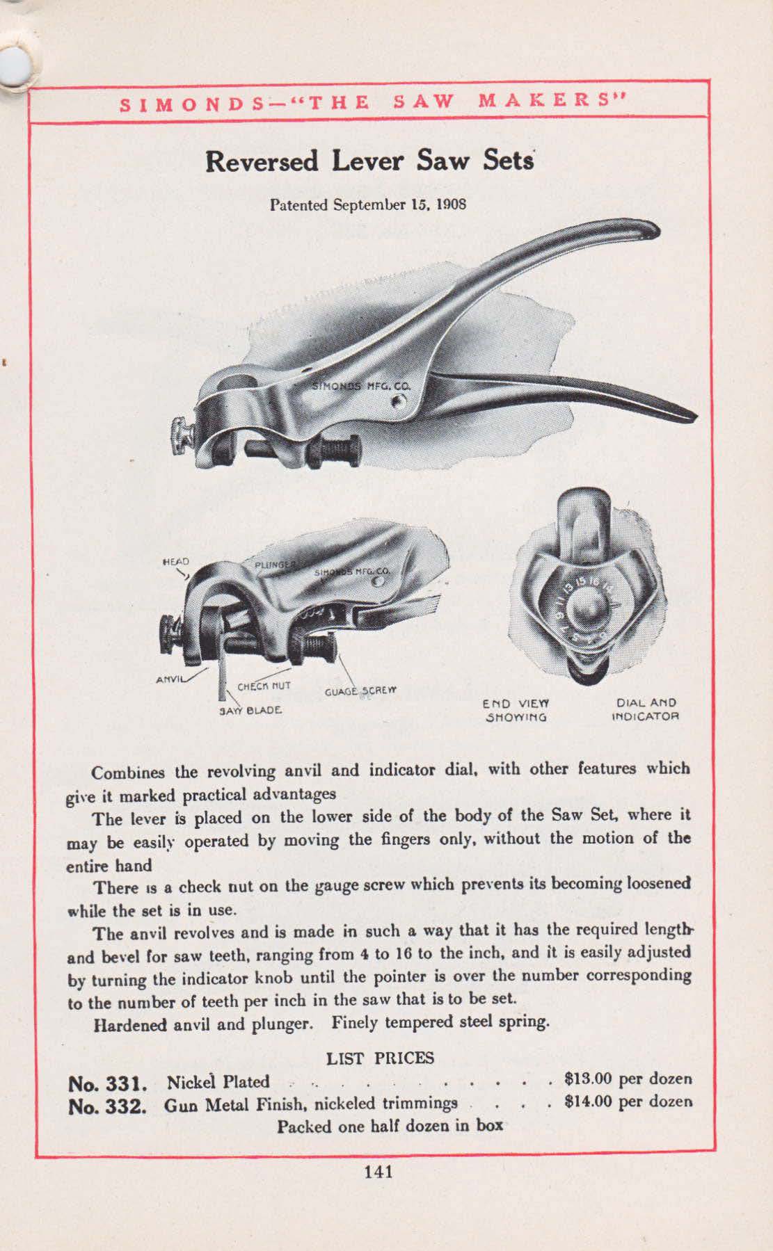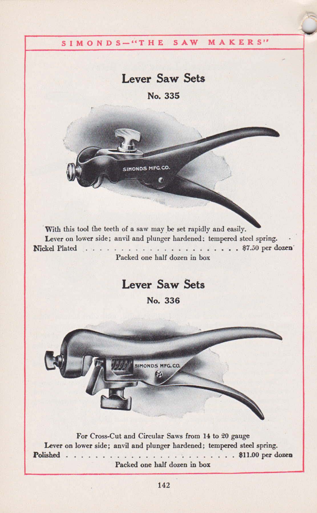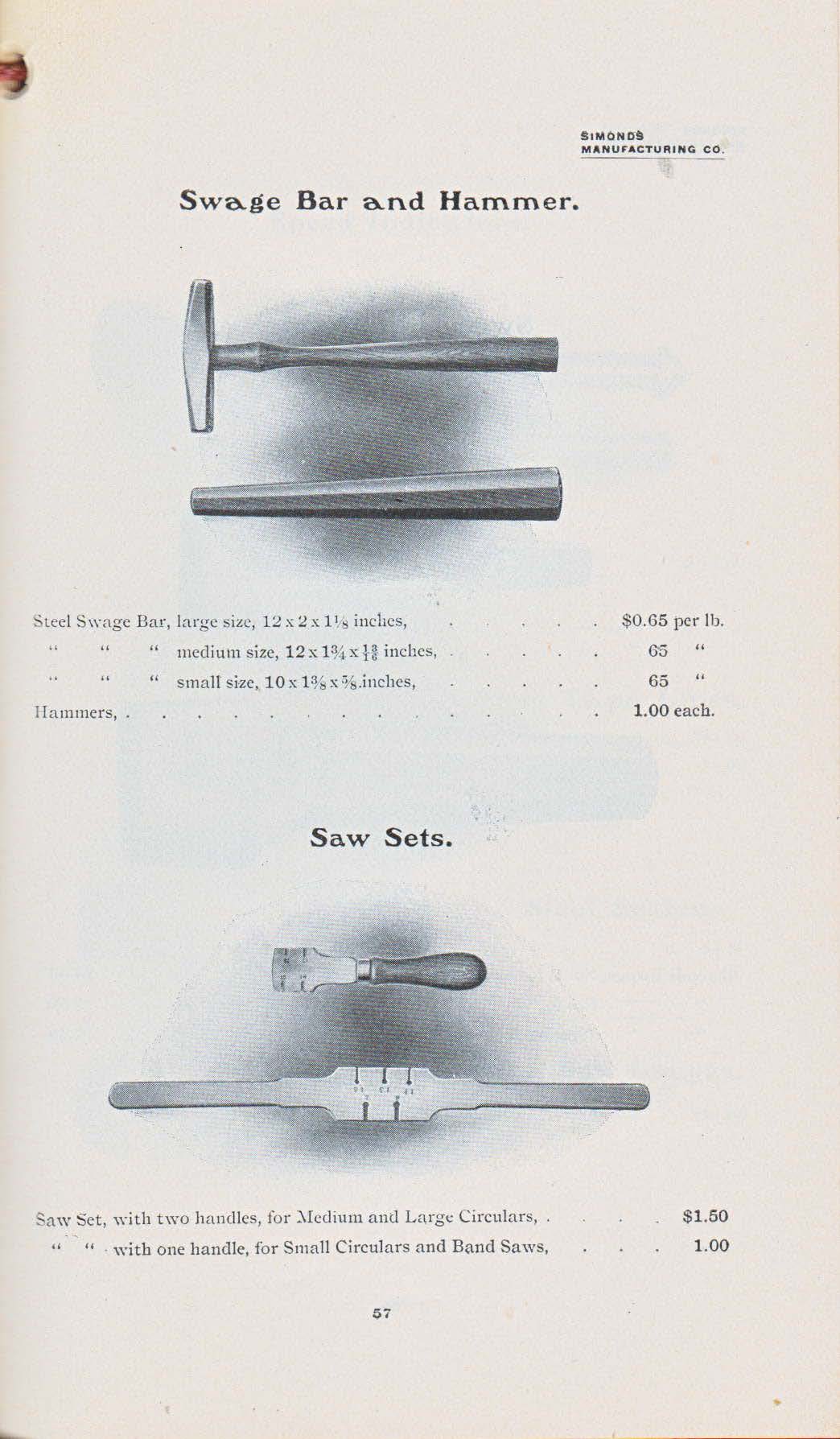 - Saw and Handle Data From the "Simonds Catalog 38"