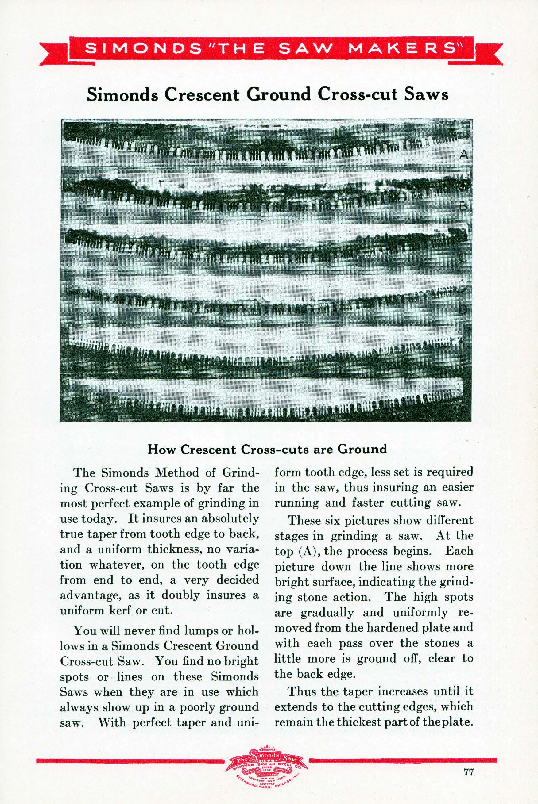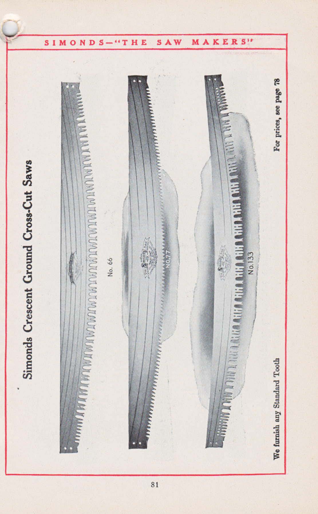- Crescent Ground Cross-Cut Saws, 66, 77, 133,