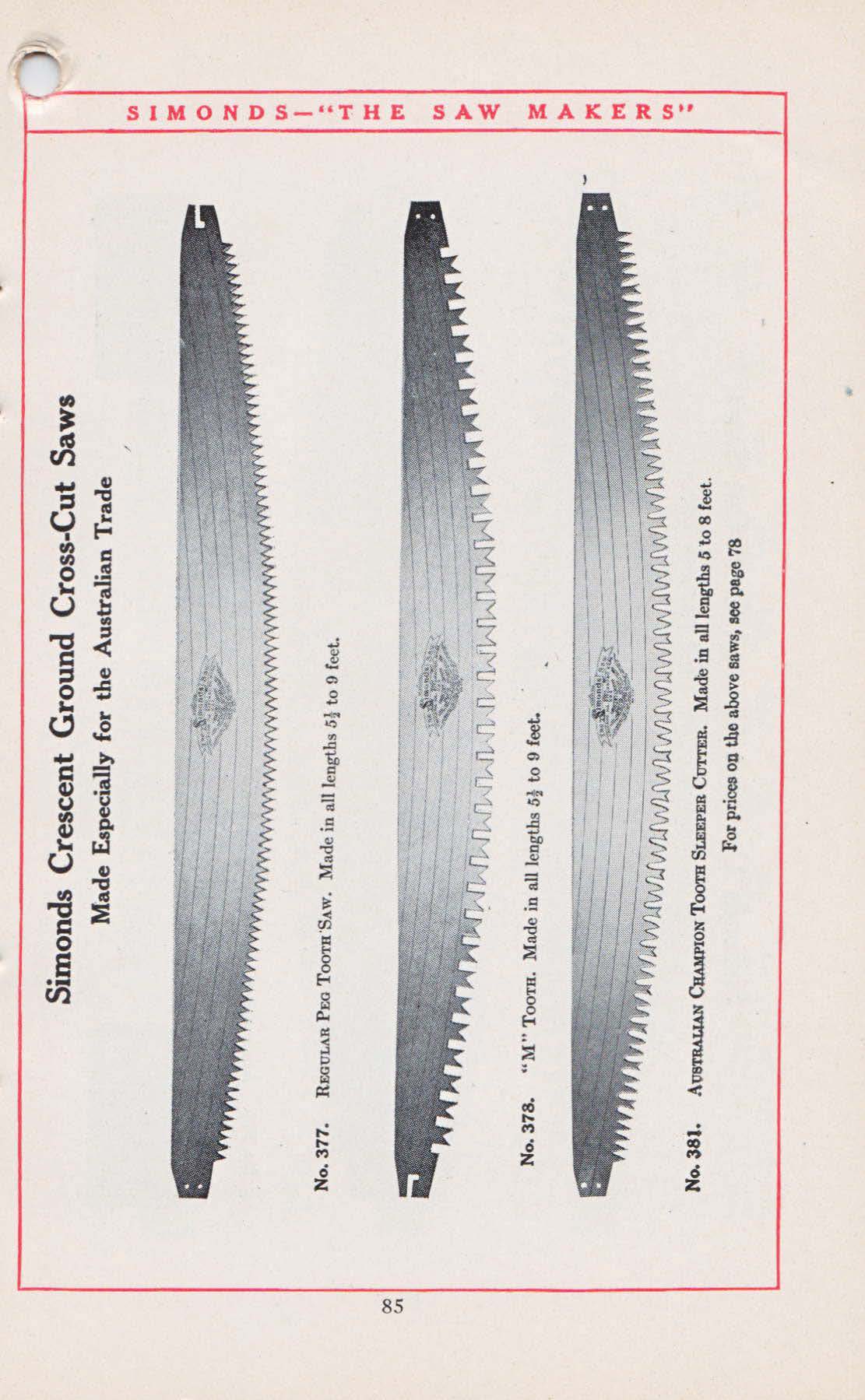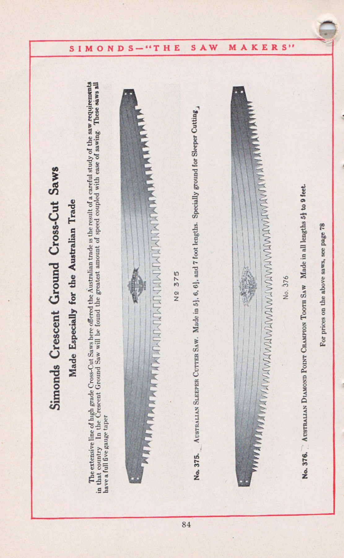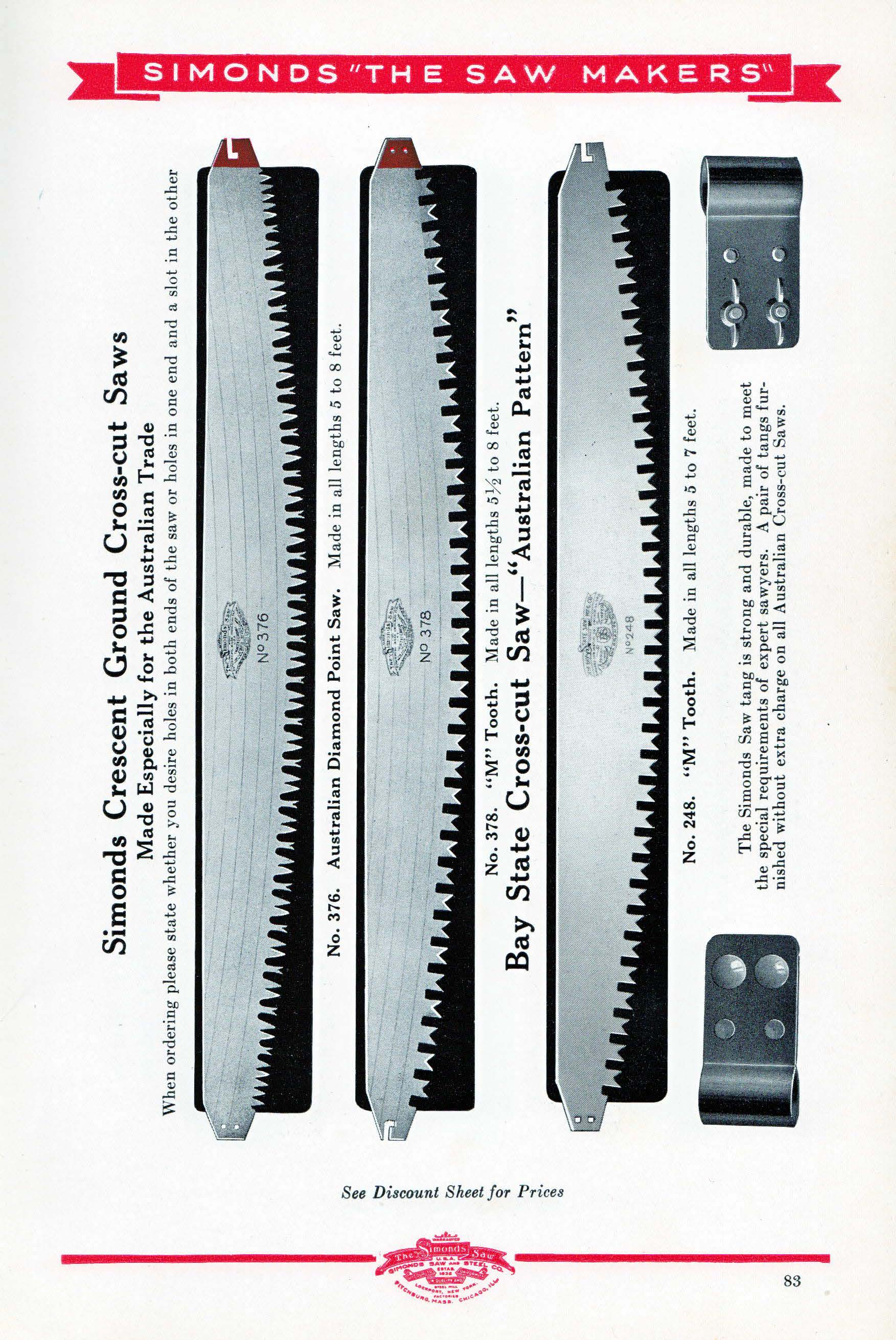 - These Cross-Cut Saws are all Crescent Ground Made especially for the Australian Trade, 377, 376