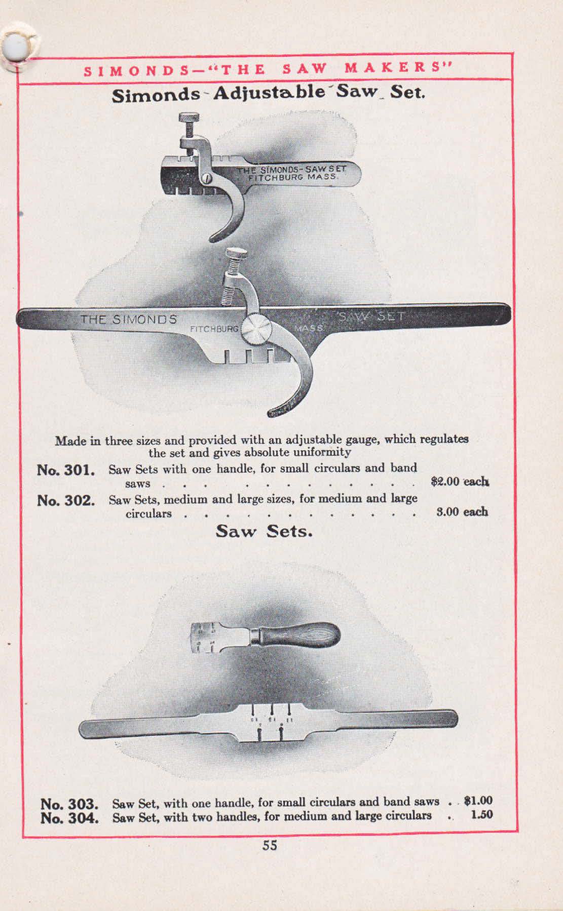 - Adjustable Saw Sets, 301, 302, 303, 304