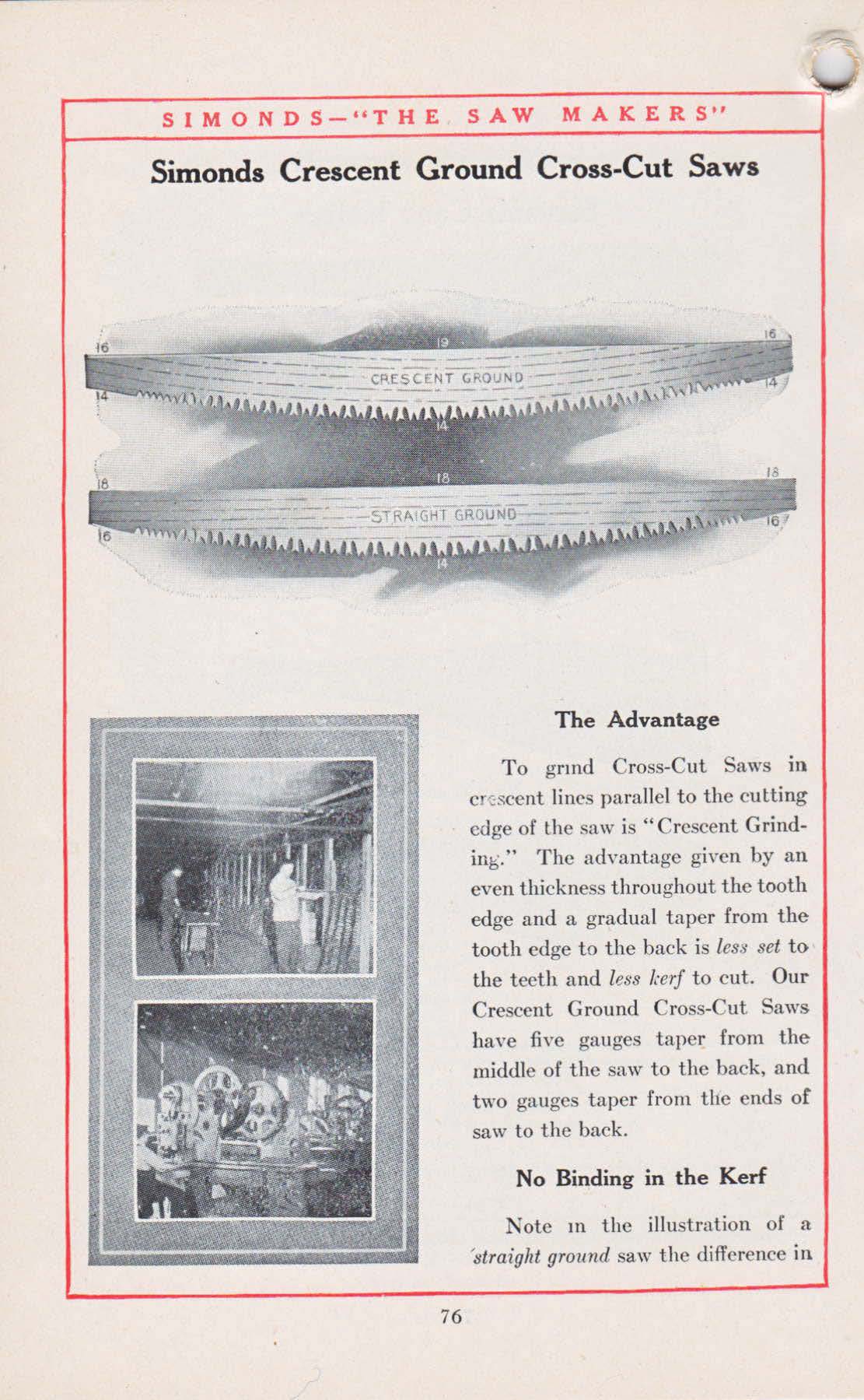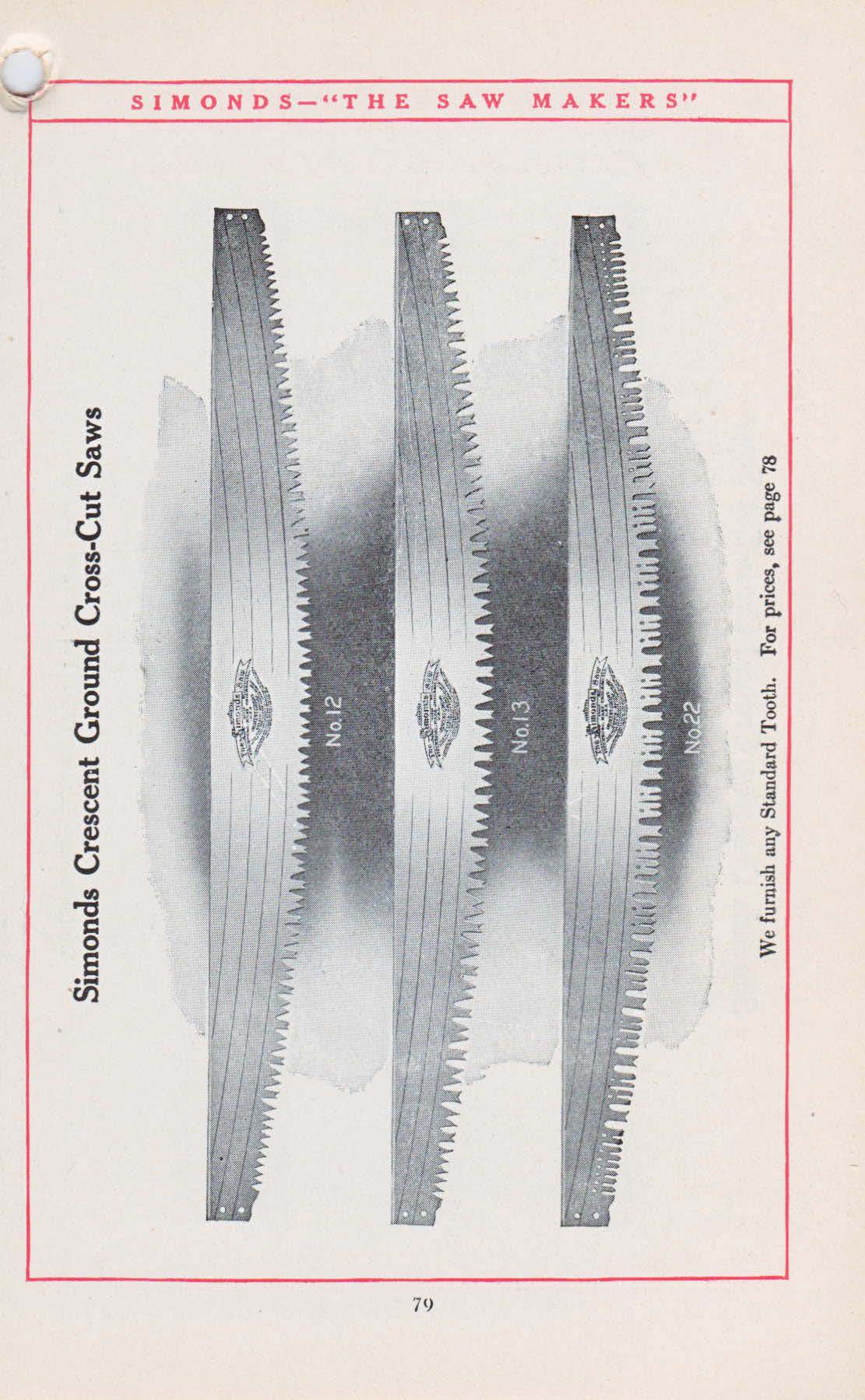 - Crescent Ground Cross-cut Saws, 12, 13, 22,