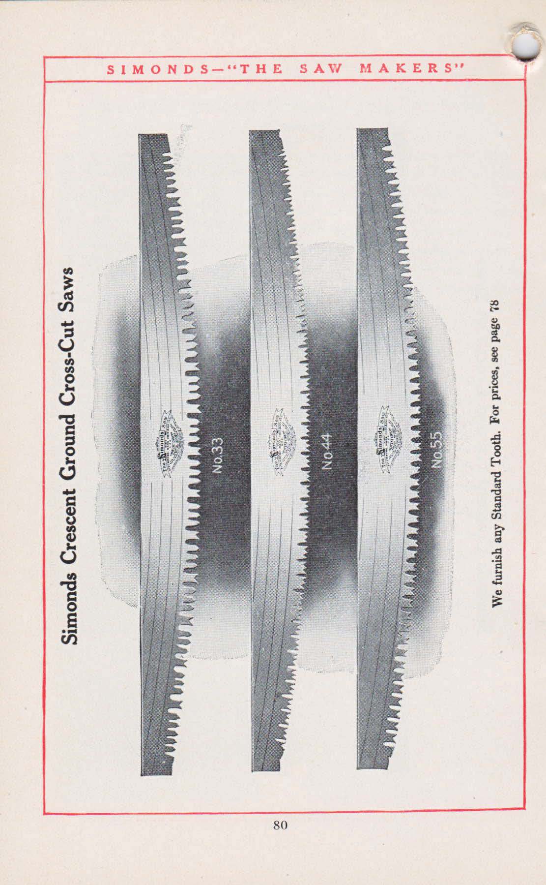 - Crescent Ground Cross-Cut Saws, 33, 44, 55,
