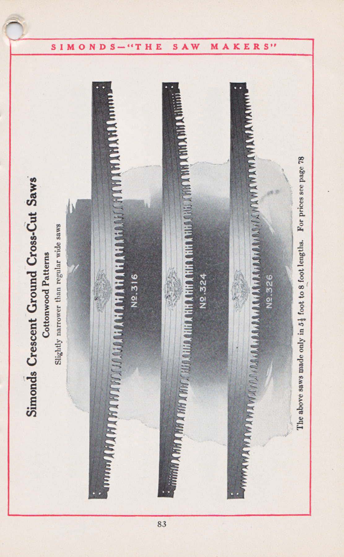 - Crescent Ground Cross-Cut Saws, 316, 324, 326,