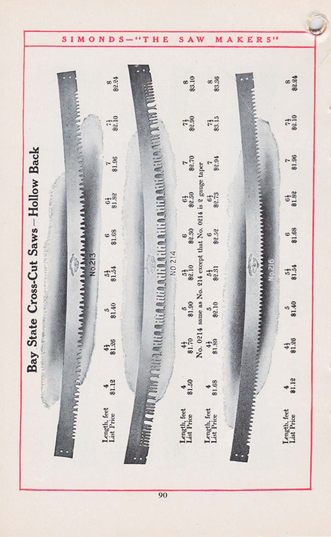 - Bay State Cross-Cut Saws -- Hollow Back, 213, 214, 216,