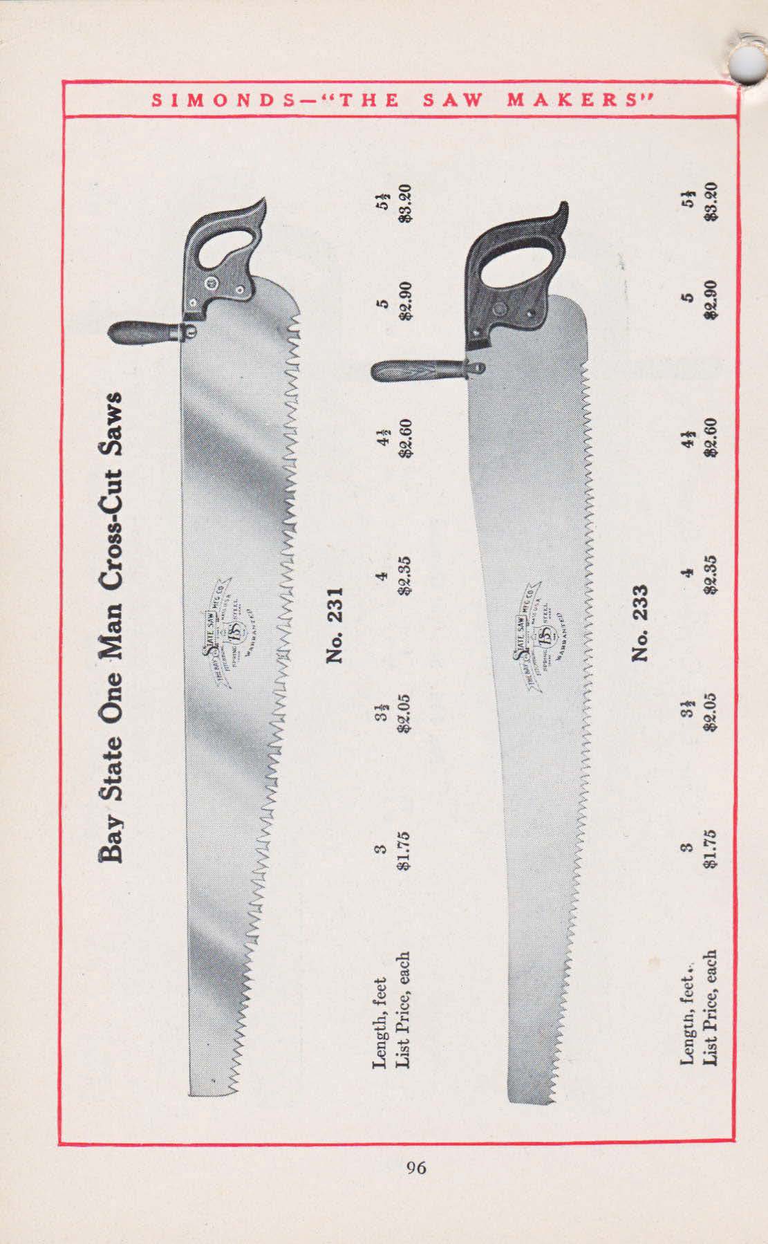| Bay State One Man Cross-Cut Saws, 231, 233,