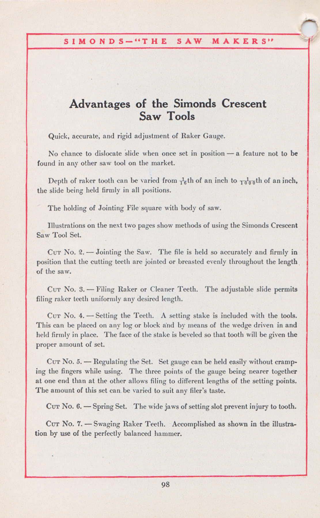 - Advantages of the Simmonds Crescent Saw Tools and Instruction for use