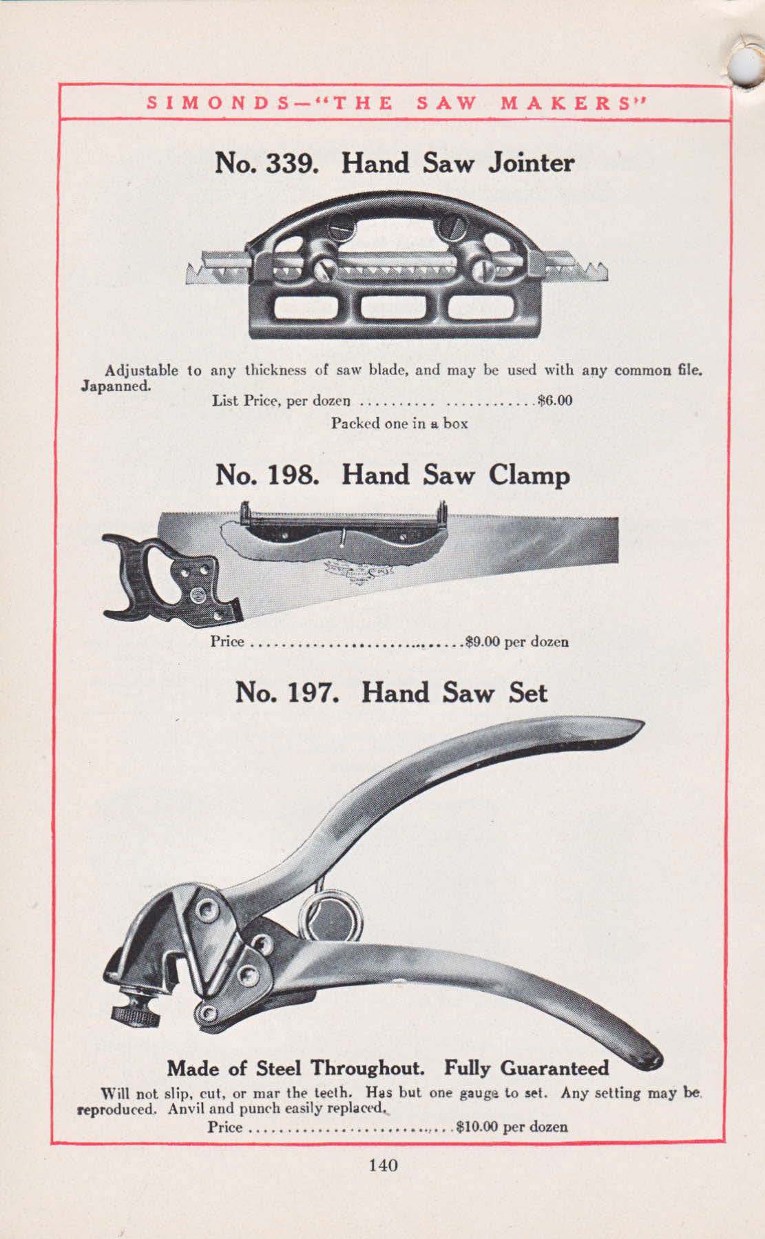 - Hand Saw Jointer, Hand Saw Set, 197, 198, 339