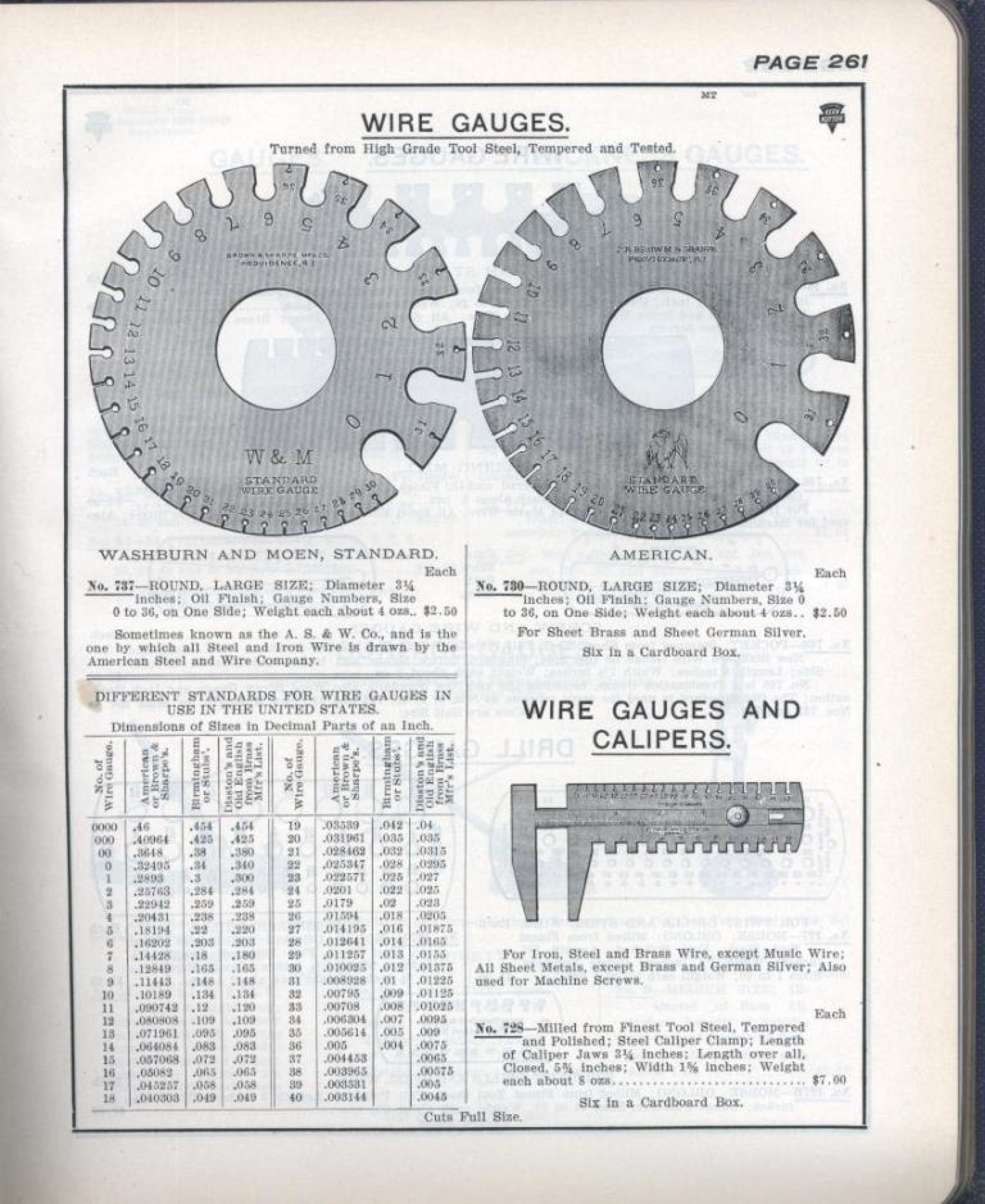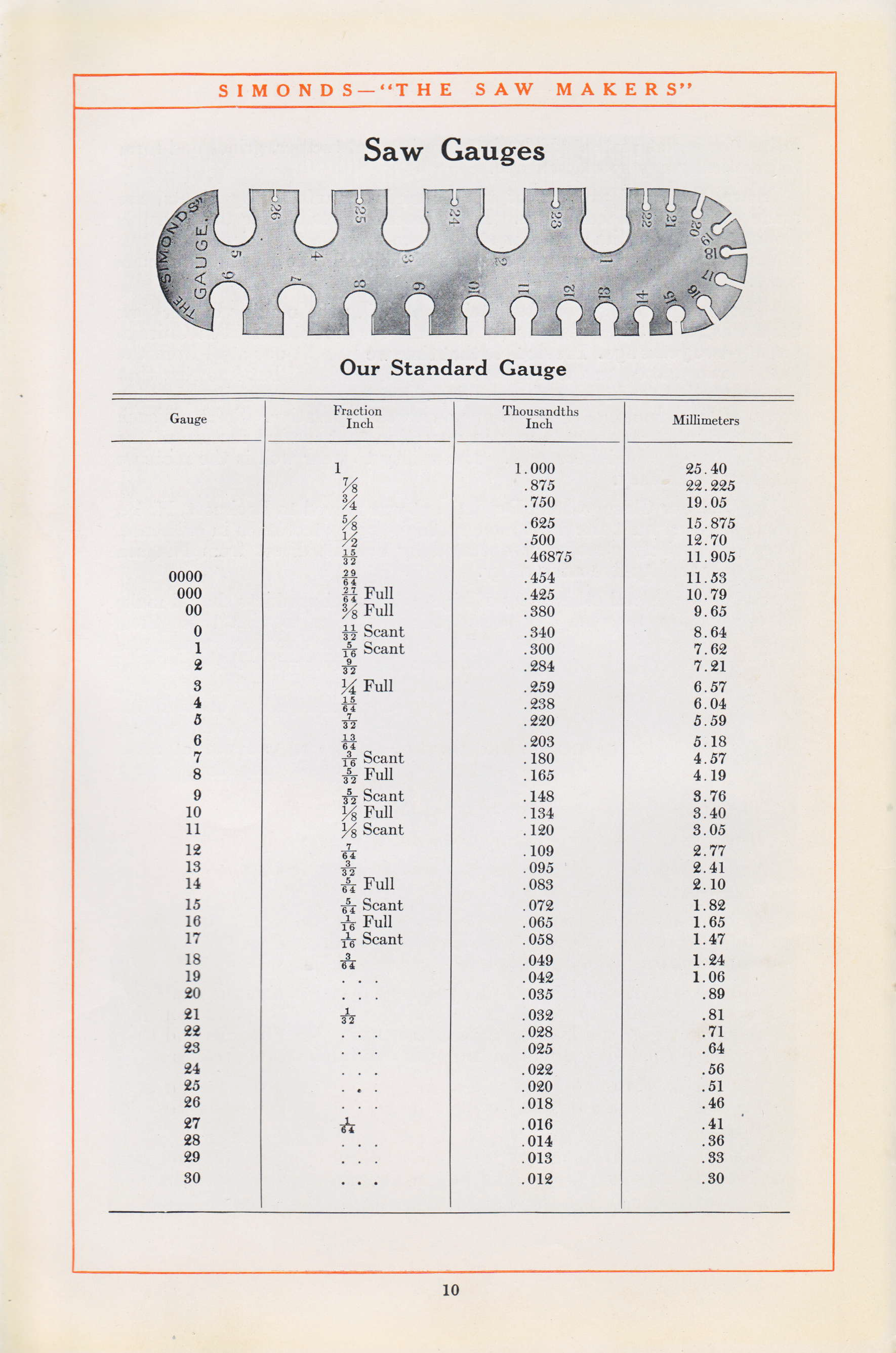 - Keen Kutter, Keen Kutter Catalog No 776 this gauge information is in a small table in the lower left hand side of the catalog page. Unfortunately the copy that I have is not overly clearly reproduced.
