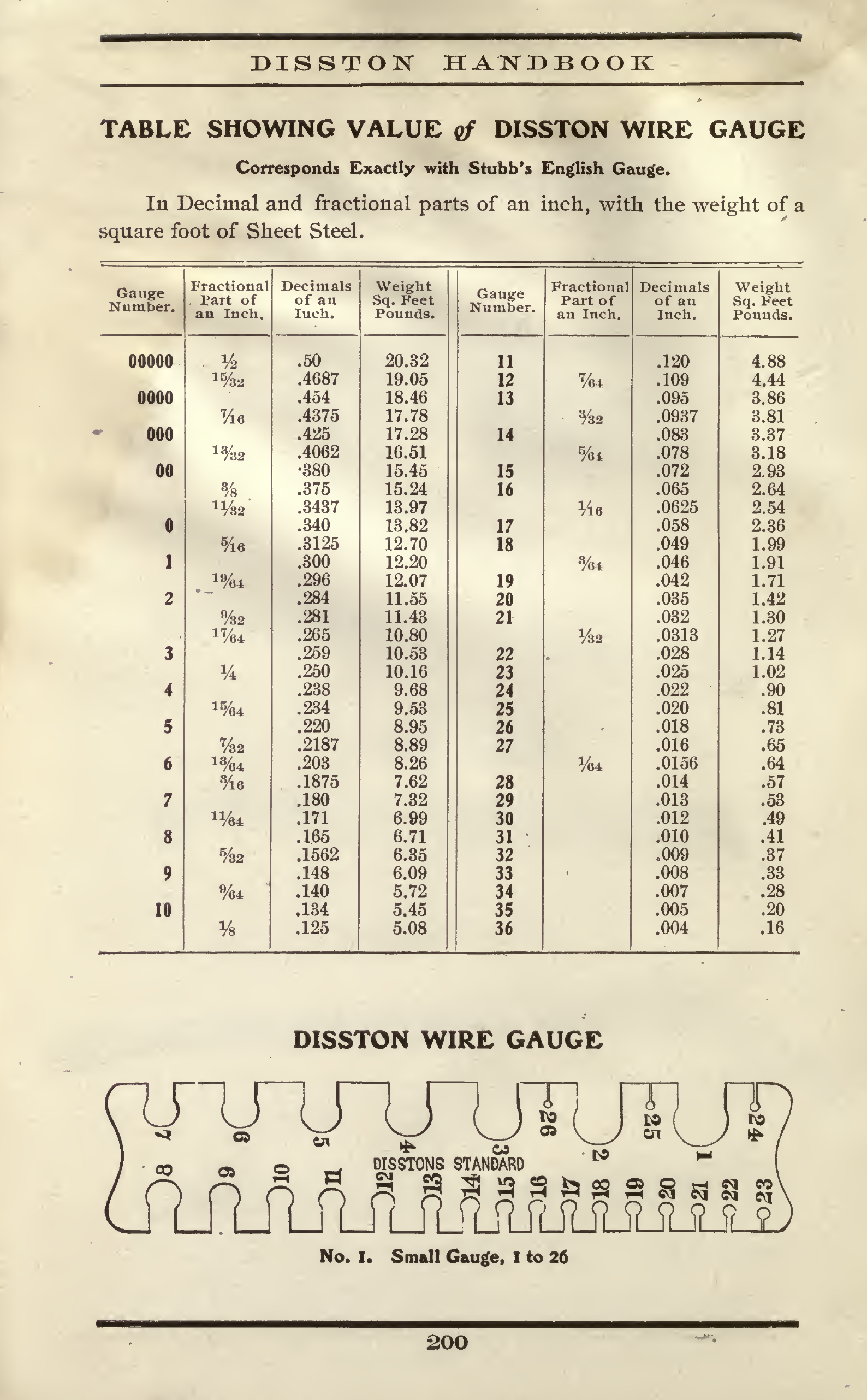 - Disston Saw Gauge,, Table Showing Value of Disston Wire Wire Gauge. From the Disston catalog for 1917.