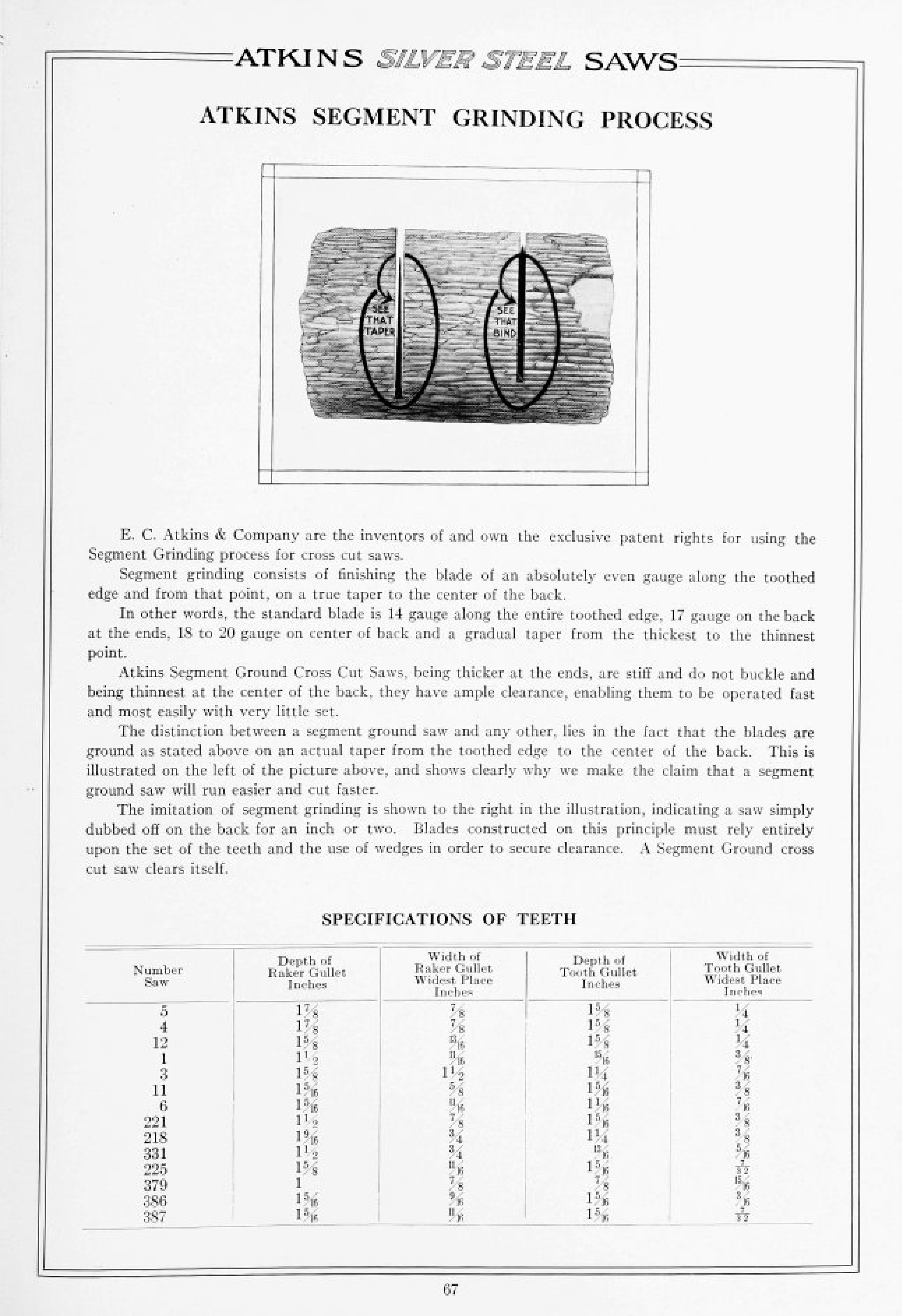 - More on Segment Grinding, Information about the advantages of segment grinding. From the Atkins Crosscut Saws Eastern Patterns A Page 07.