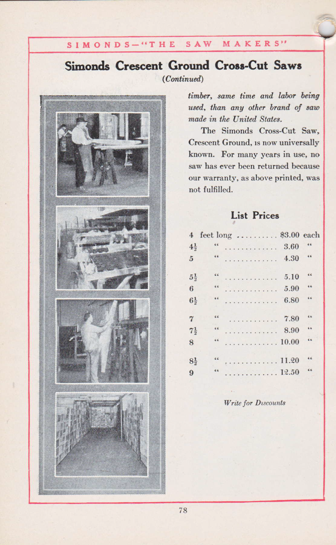 - Simonds Grinds Part 1,, Simonds Crescent Ground Cross-Cut Saws, The Advantage. From Simonds Catalog 23, 1923.