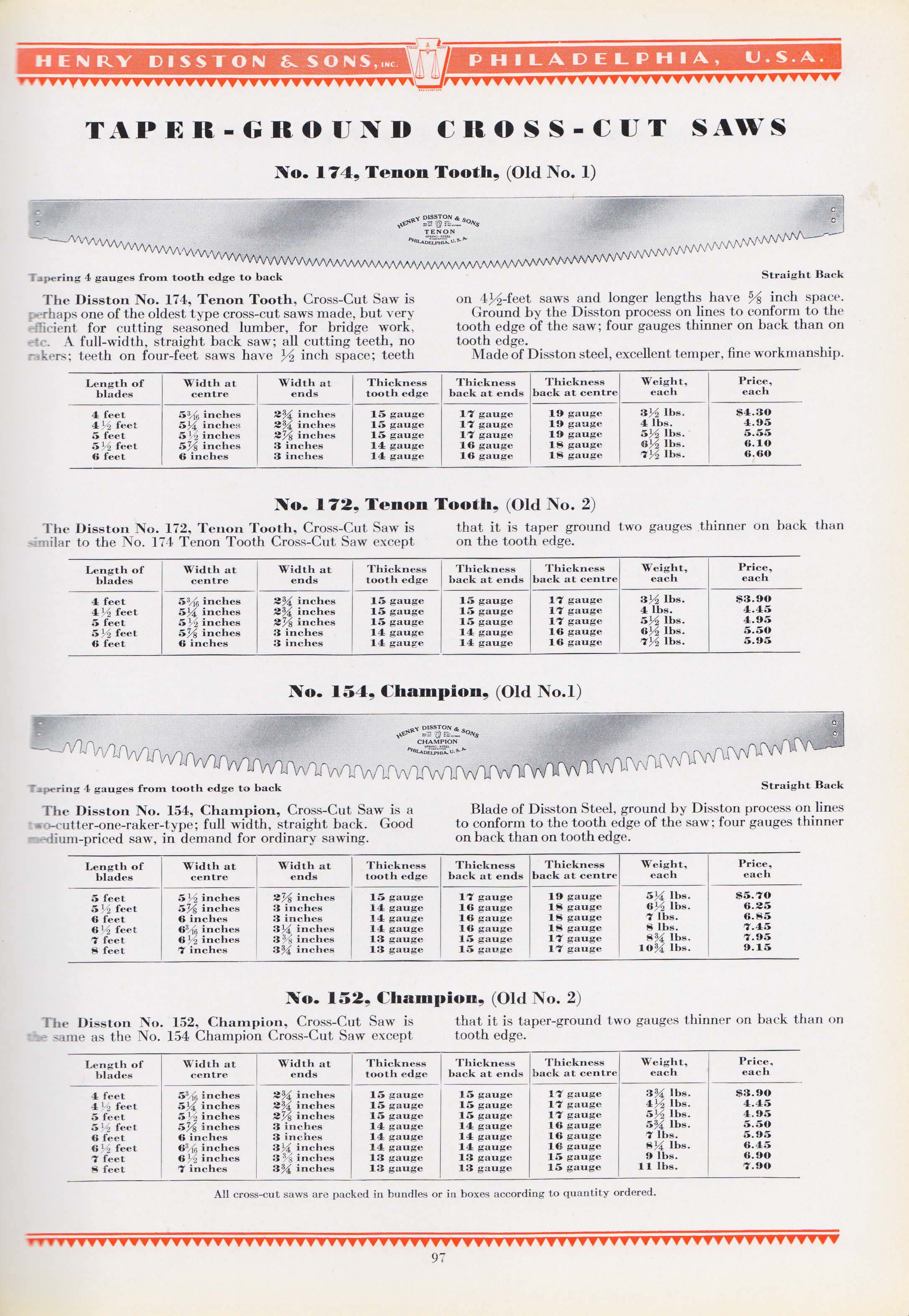 - Taper-Ground Cross-Cut Saws, 174, 172, Tenon Tooth, (Old No 1, 2)