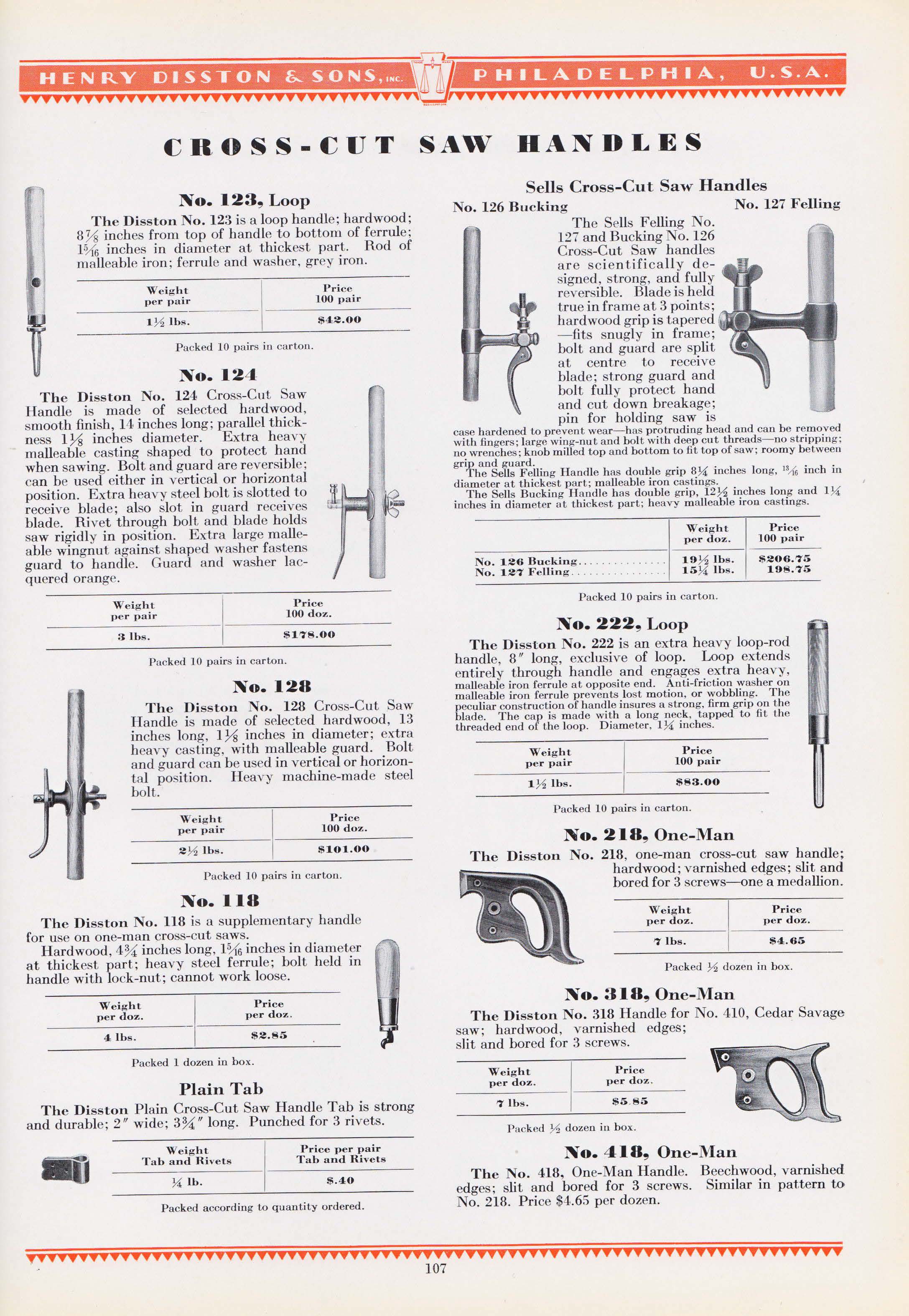 - Disston ca1919 Cross Cut Saws, 57 pages, PDF
