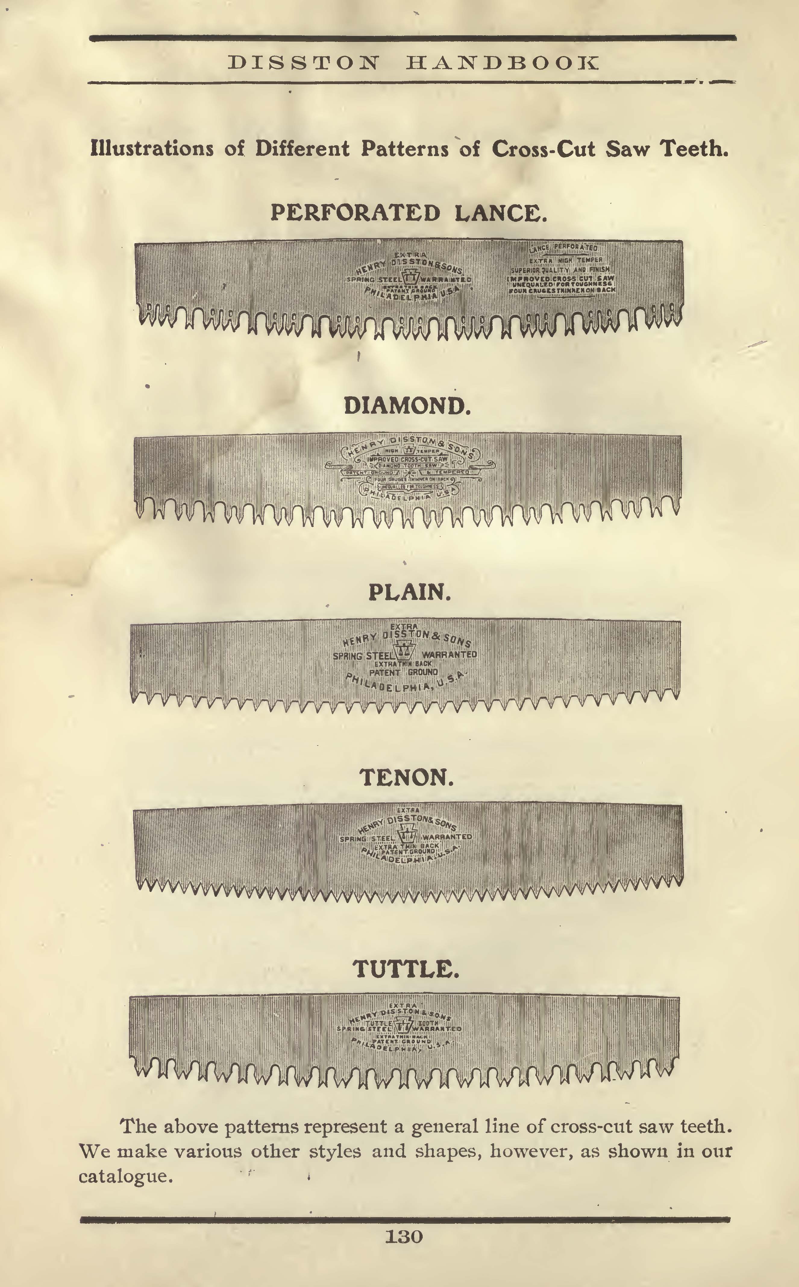 - Cross-Cut Saws, Different Patterns of Teeth, Perforated Lance, Diamond, Plain, Tenon, Tuttle