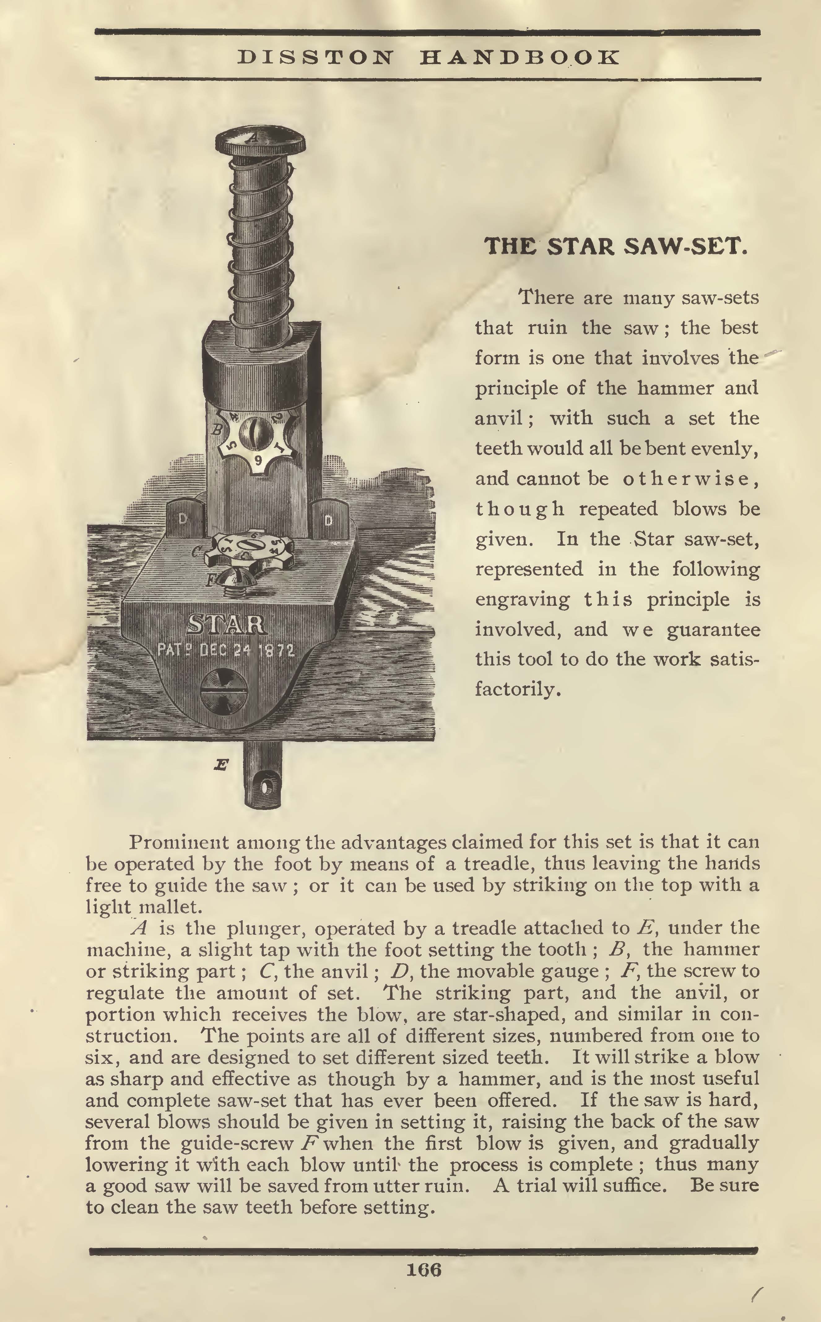 - Disston Ltd How to Set and File Your Saw before 1900? 2 pages, PDF