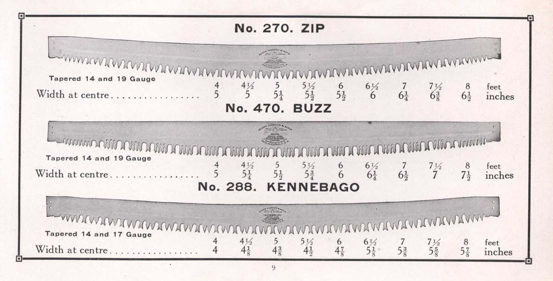 Note in many of the following catalog pages there is a suggestion that the image is full size. All images have been scanned in and the size that is available here may or may not have a close relation to the actual saw tooth size.