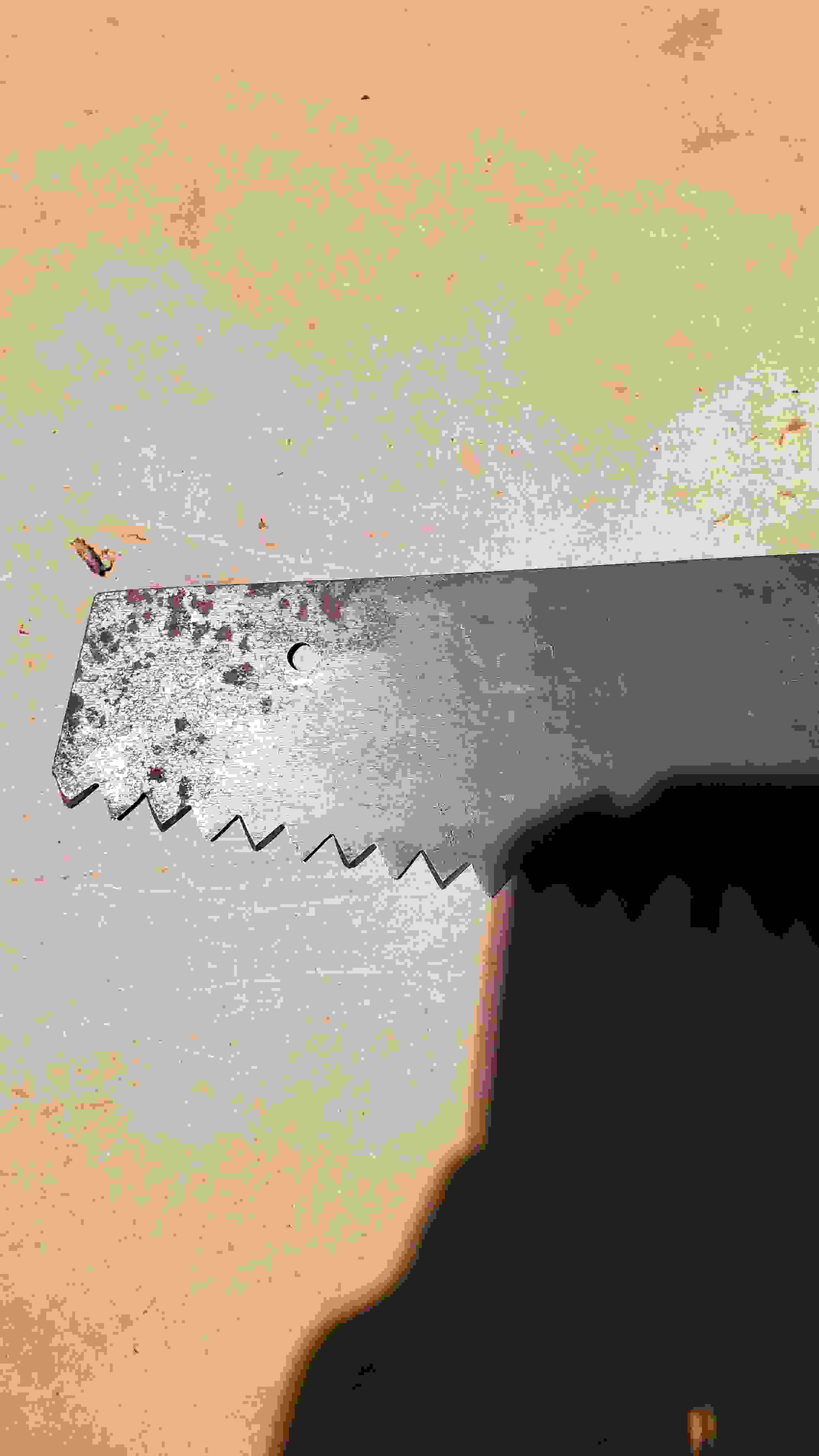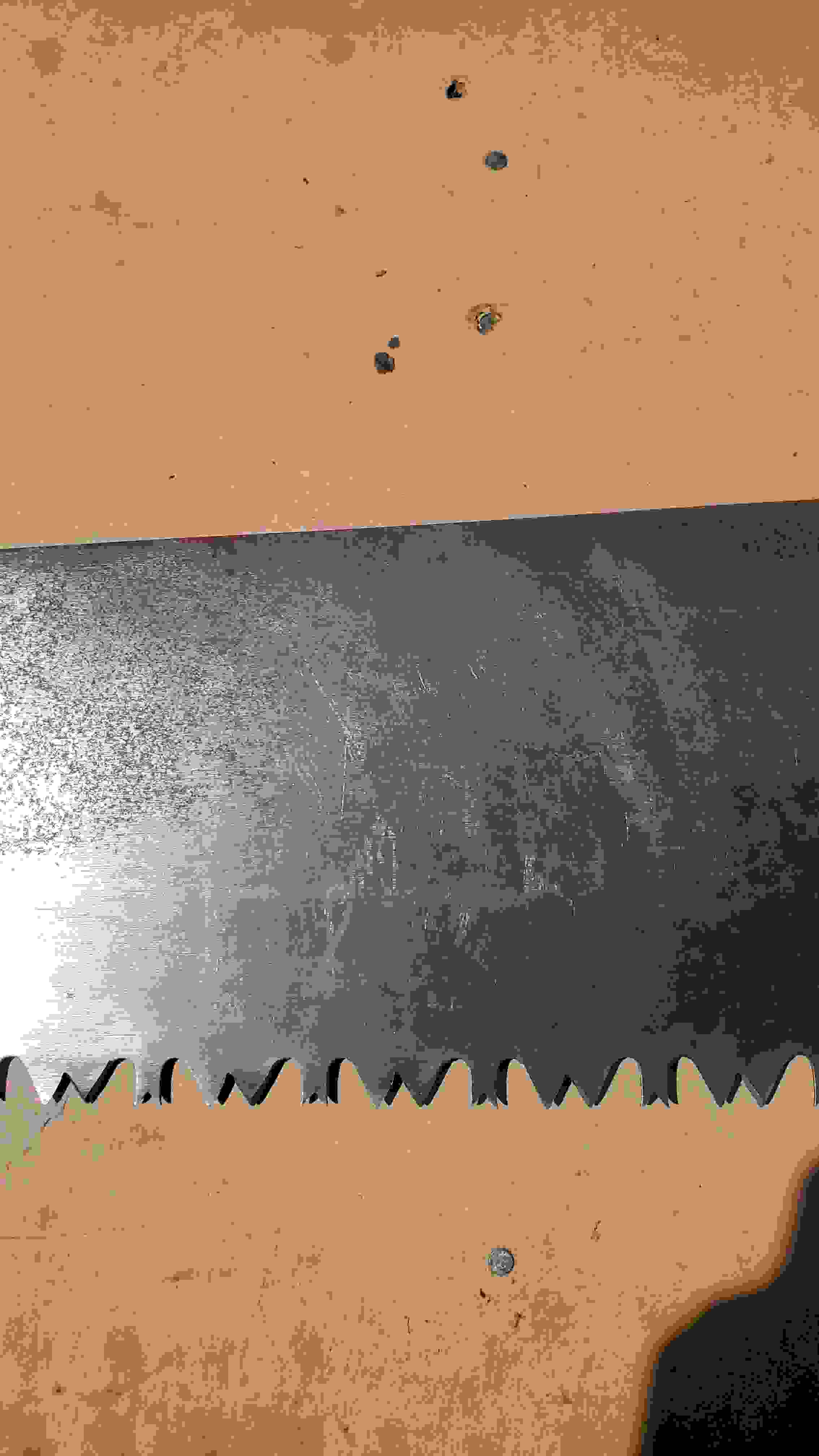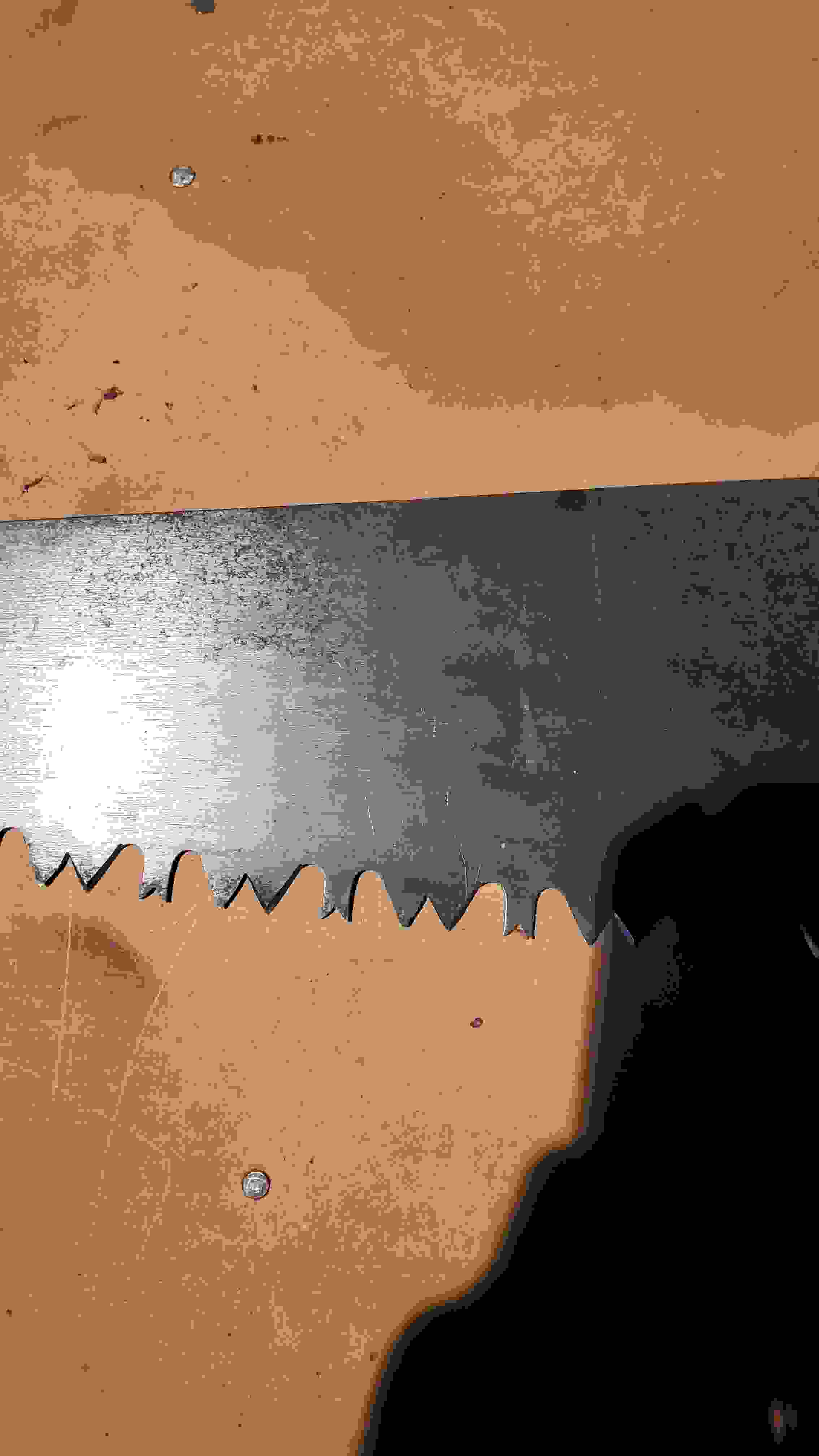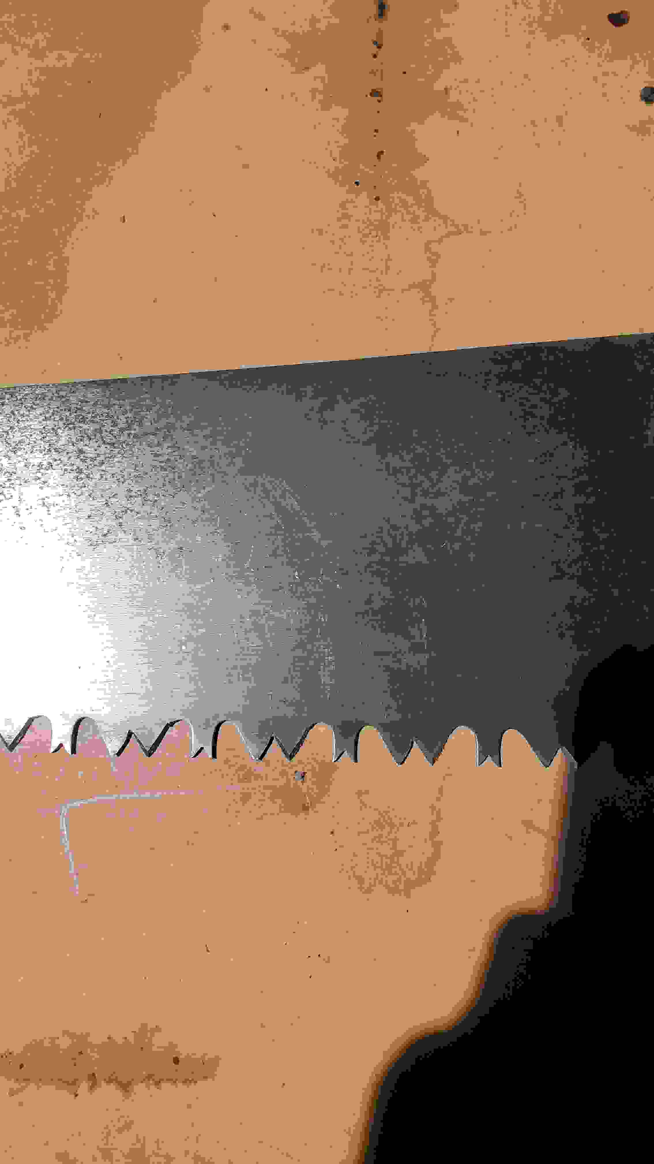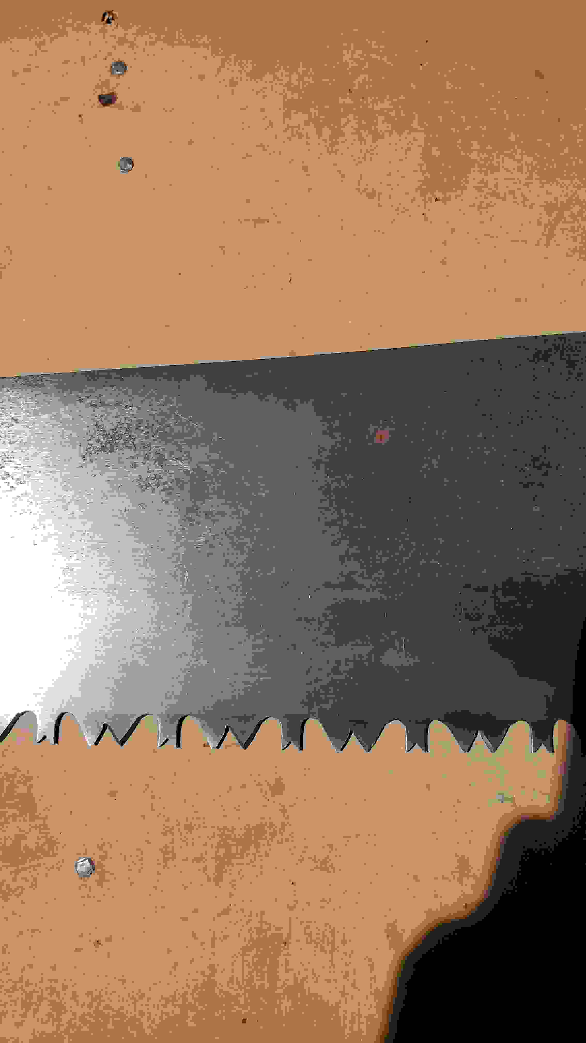 At one point during the 50s, using it as a Boy Scout, I successfully managed to put a permanent scar on my left knee. I did this while trying to prove that I could cut a log faster that a two man team could. Unfortunately the saw jumped out of the cut the first time I gave a pull and the saw fell down on my leg. (I was wearing shorts at the time and my knee stopped it quite nicely).