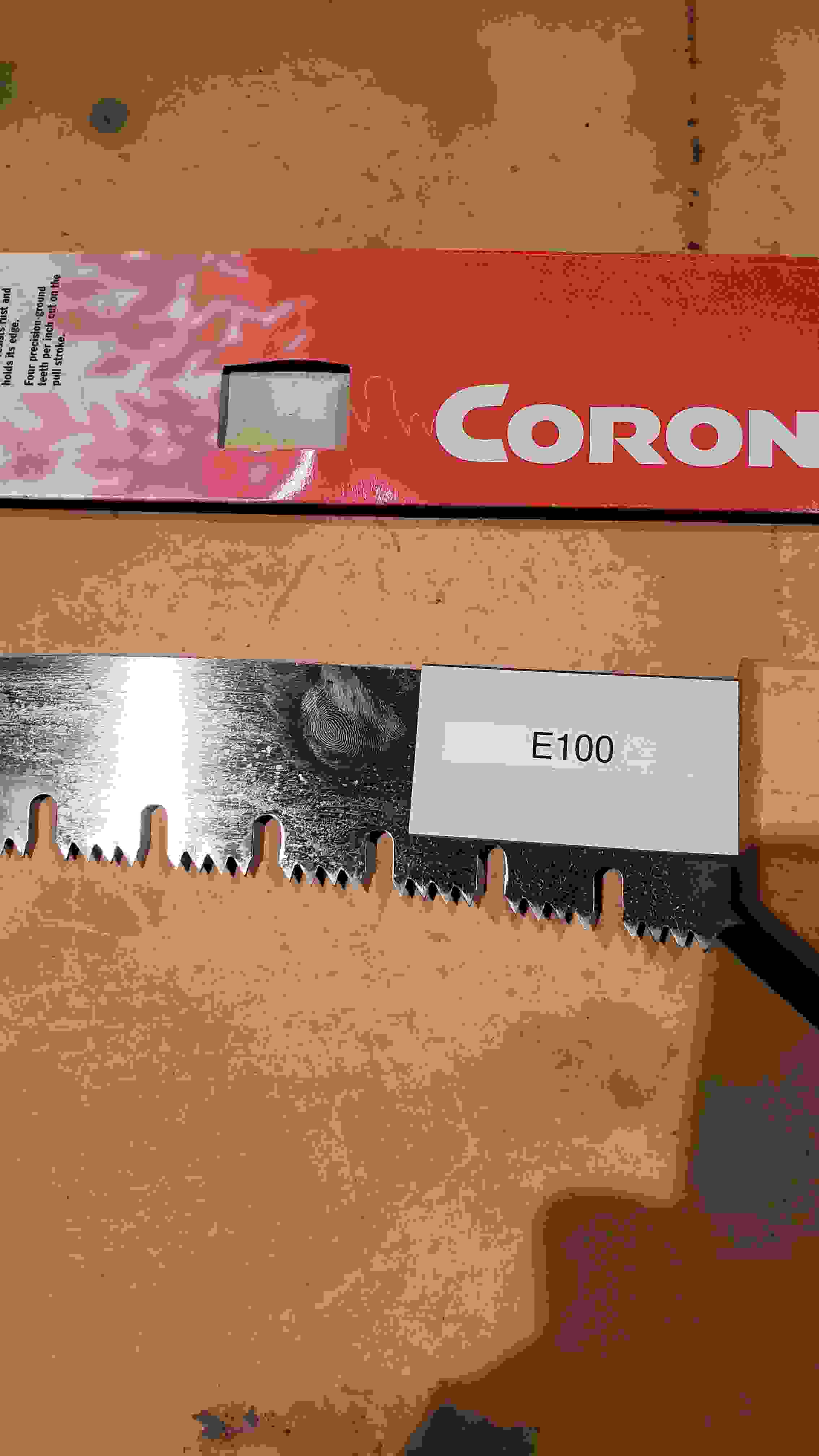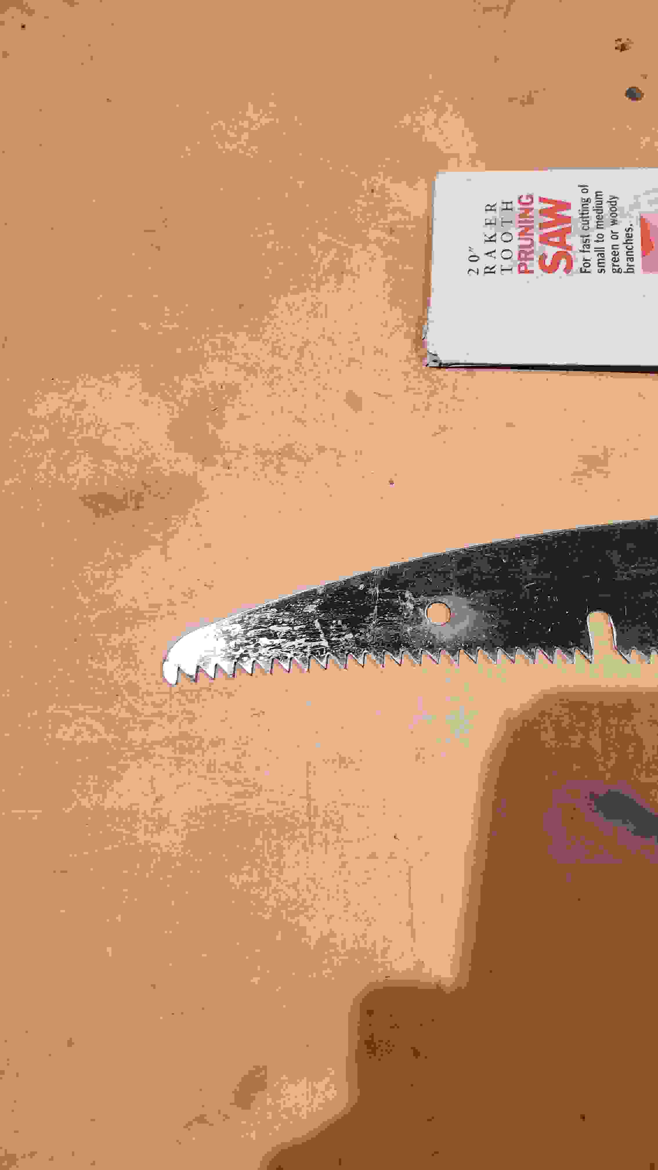 Note: Modern pruning saw. No cleaners, deep gullet teeth are grouped in sets of four.