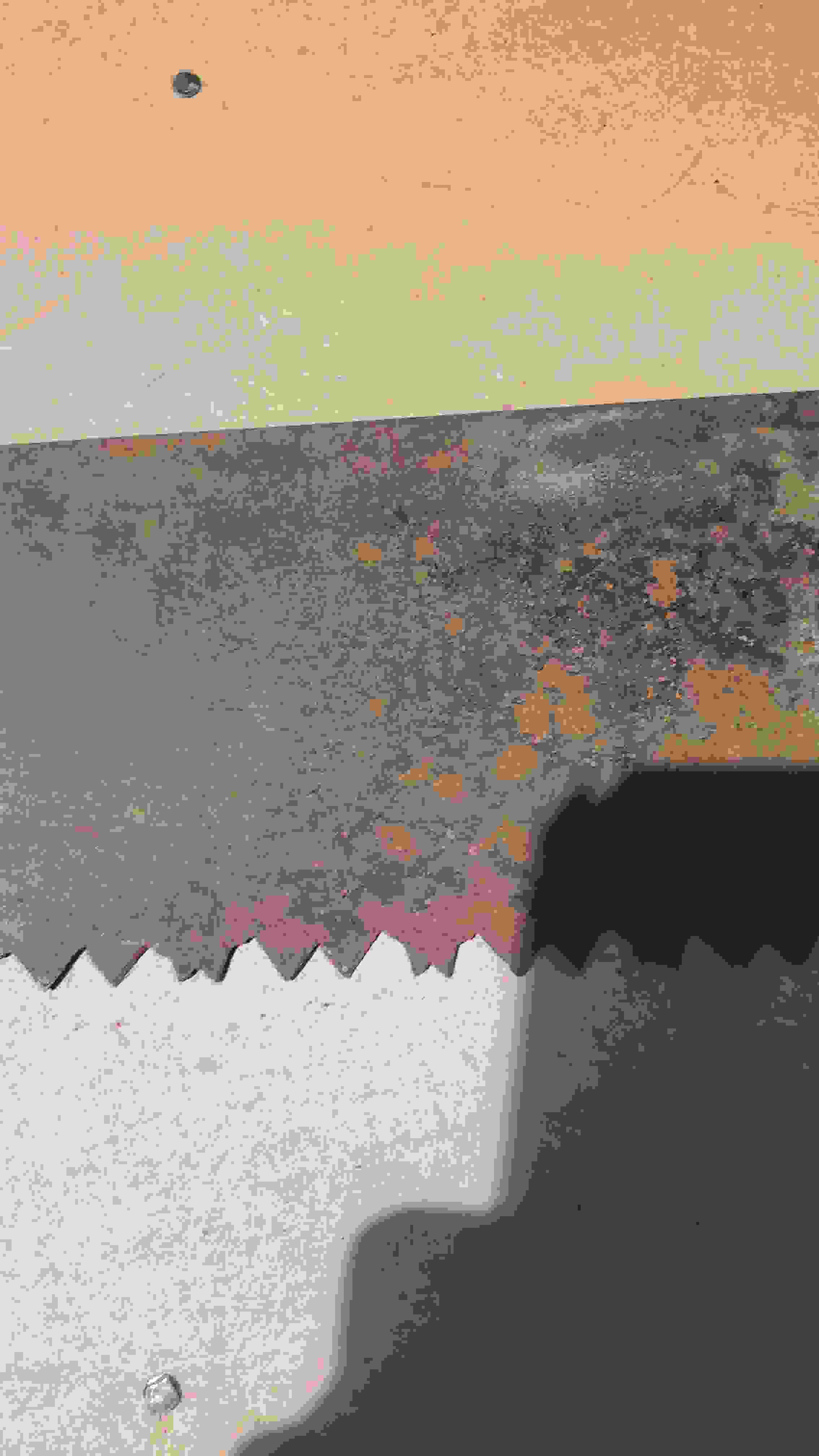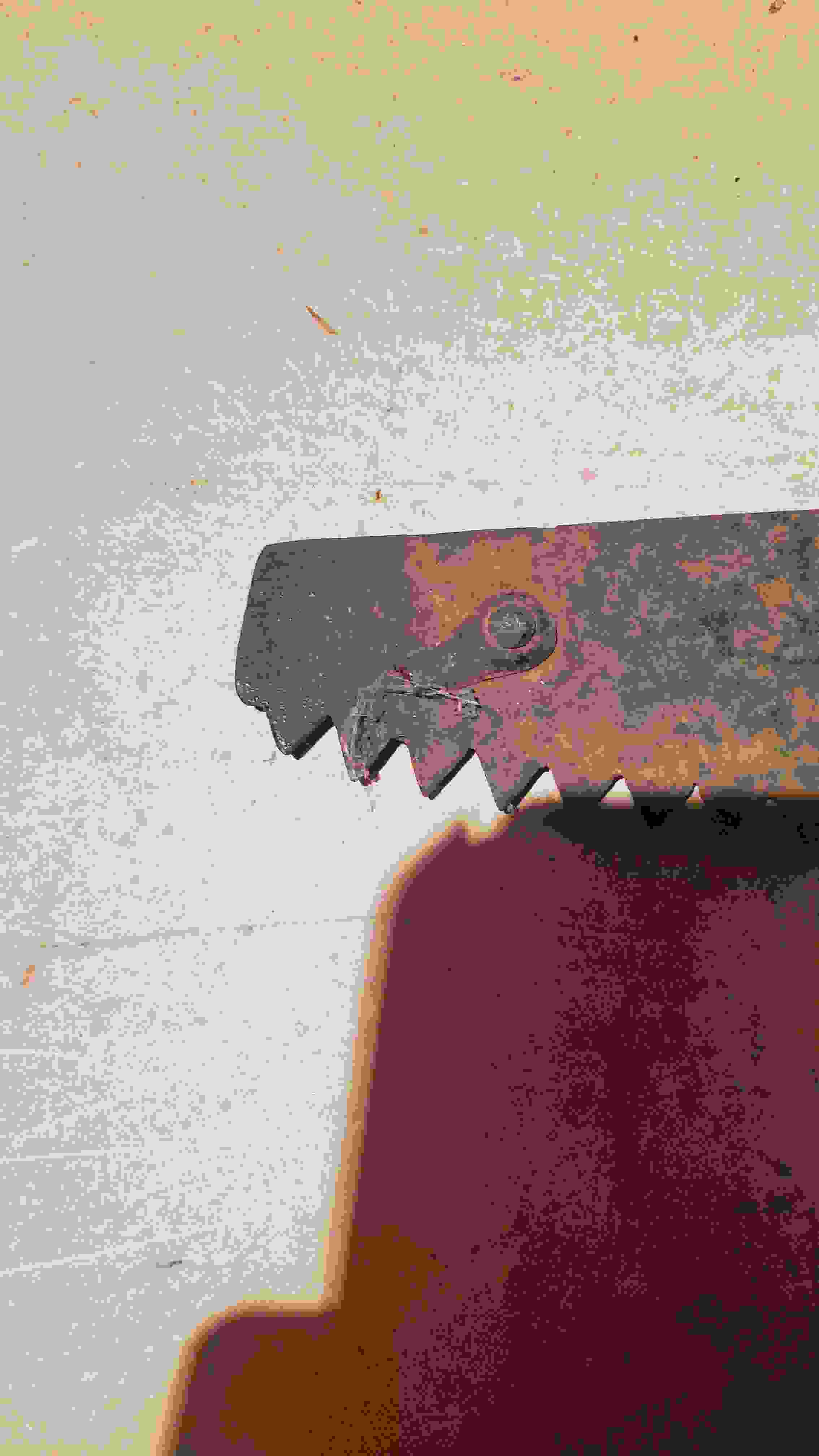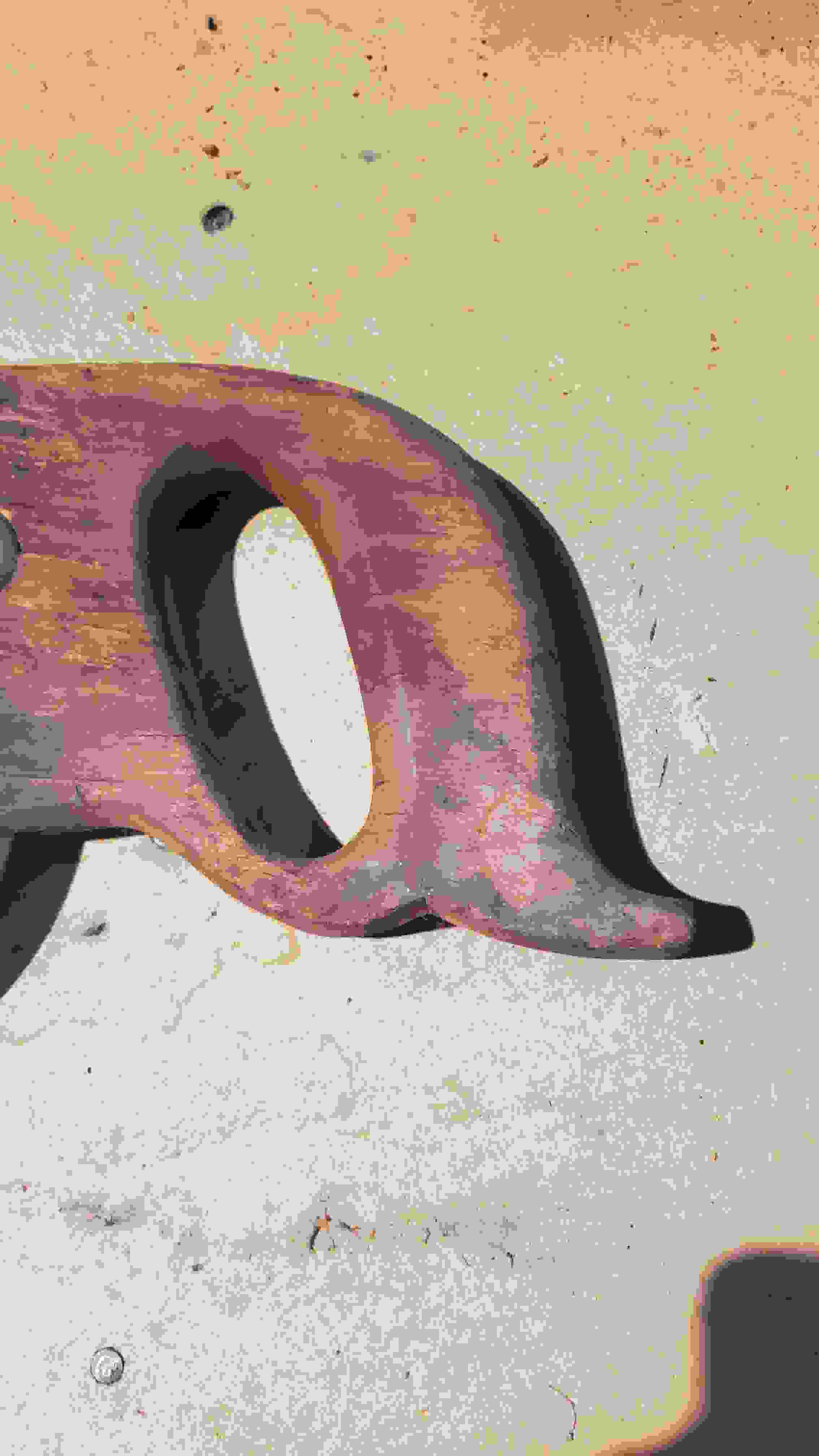 Note: Broken off riveted supplemental handle stub in saw end.>
