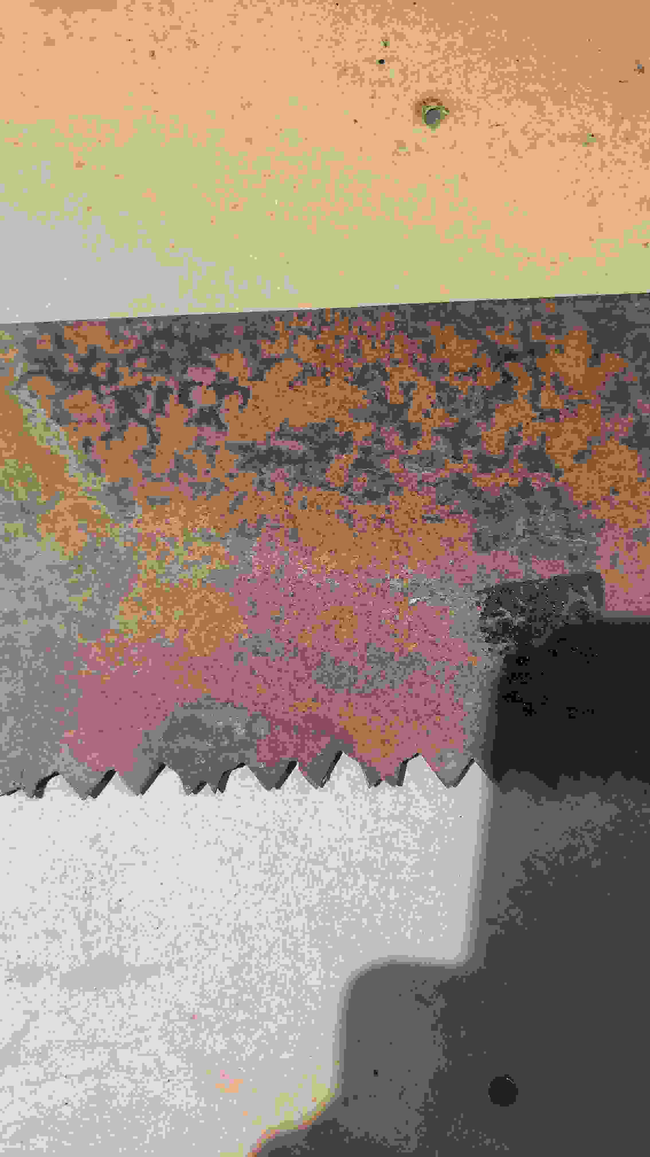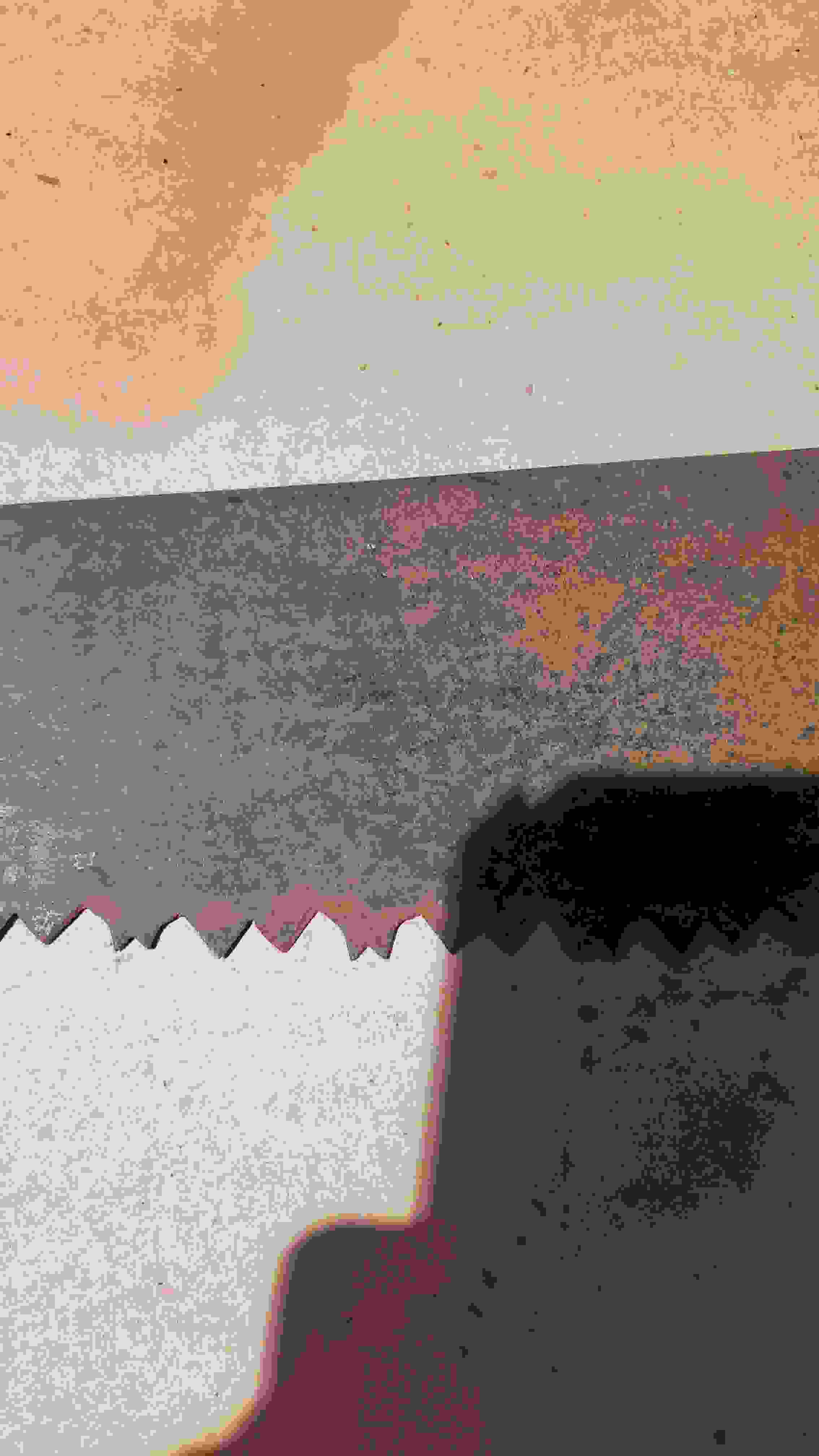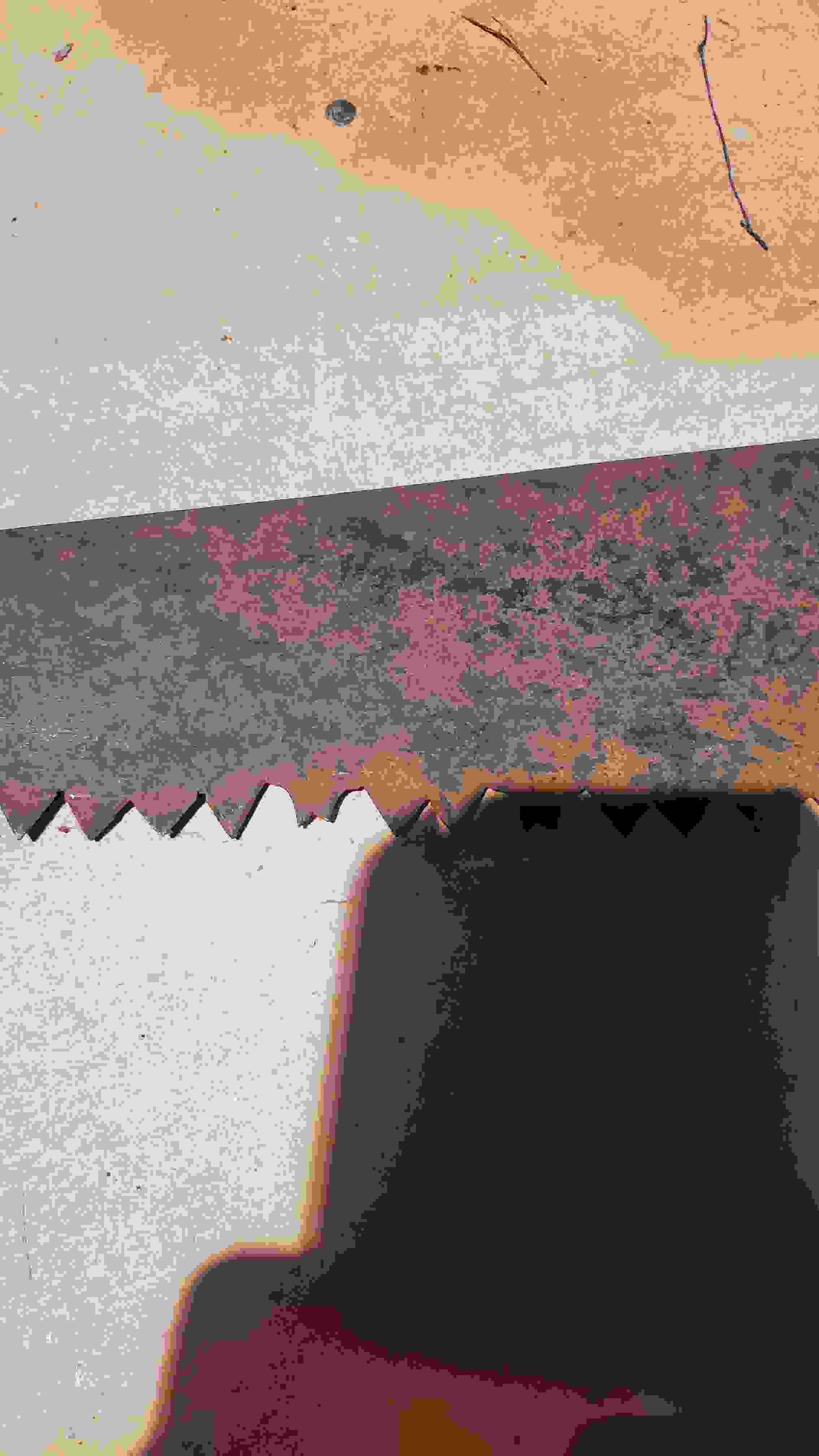 Note: Broken off riveted supplemental handle stub in saw end.>