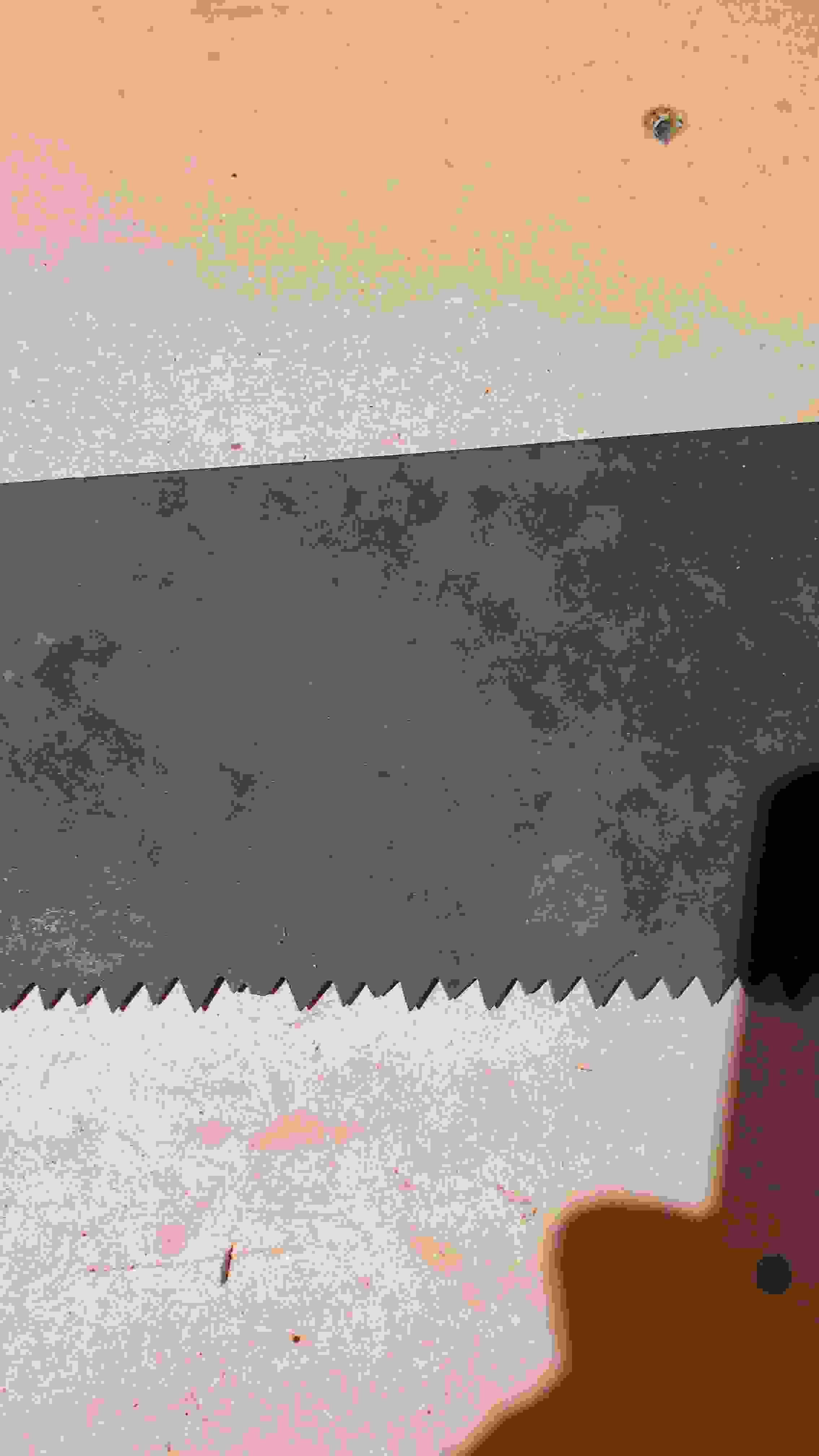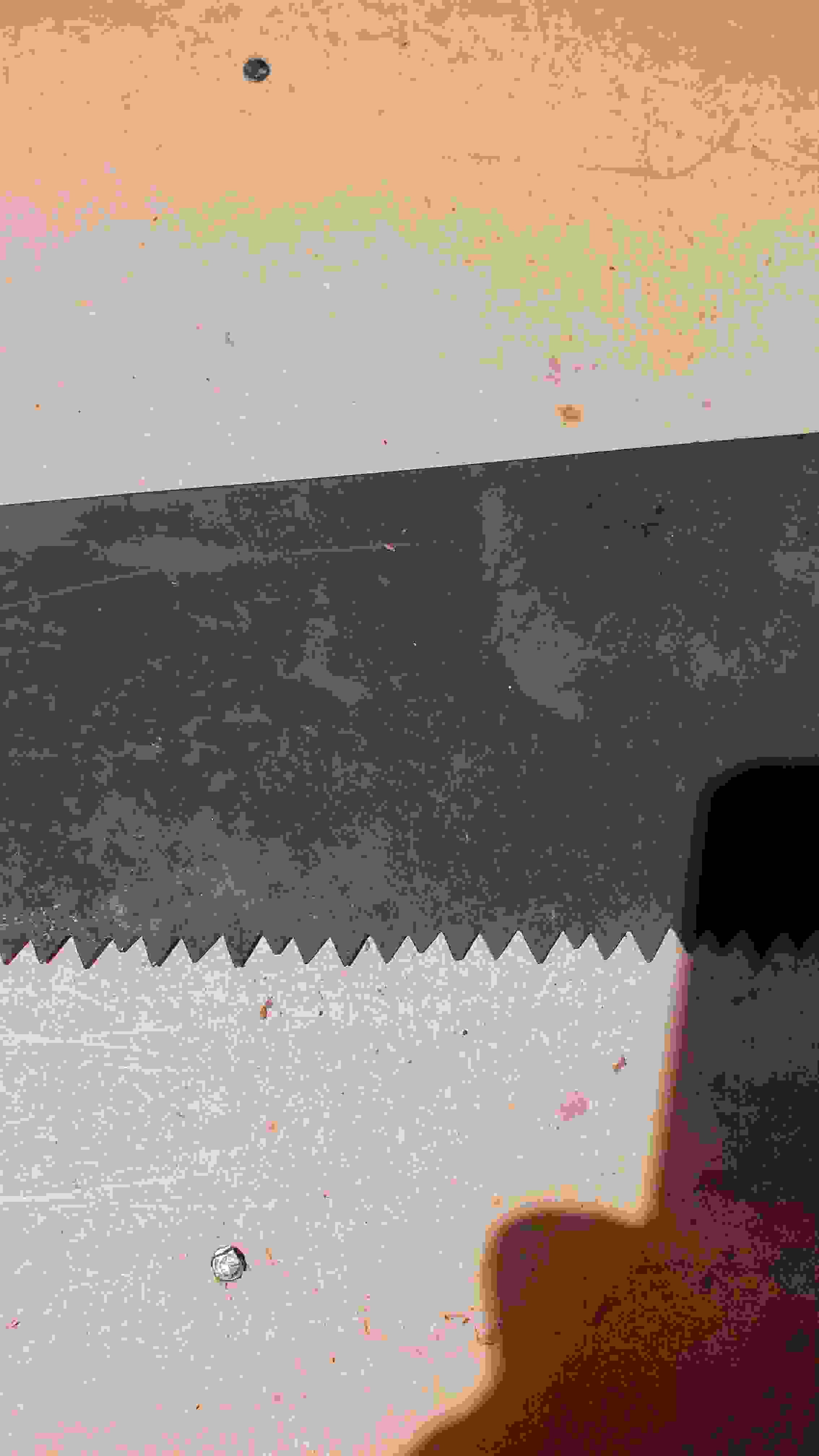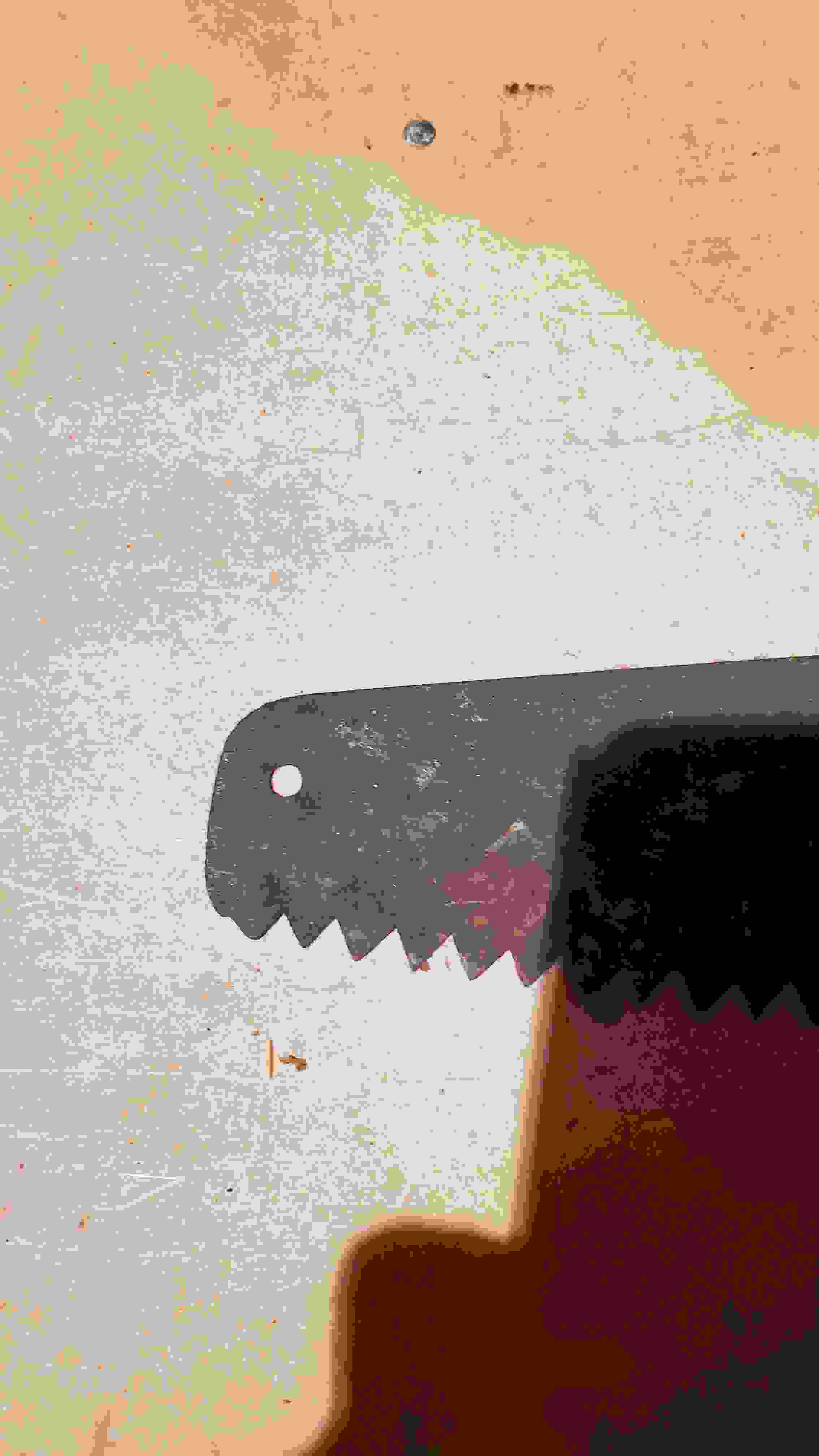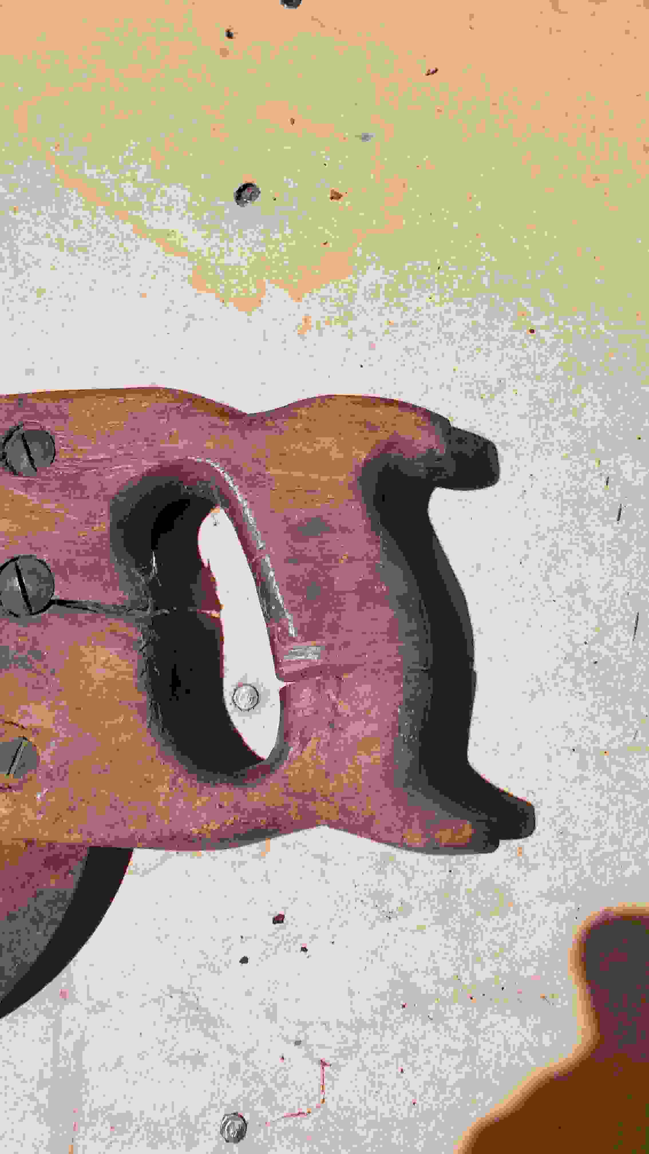 Note: Heavy duty carpenter's saw. No rakers. Badly sharpened. Broken teeth.