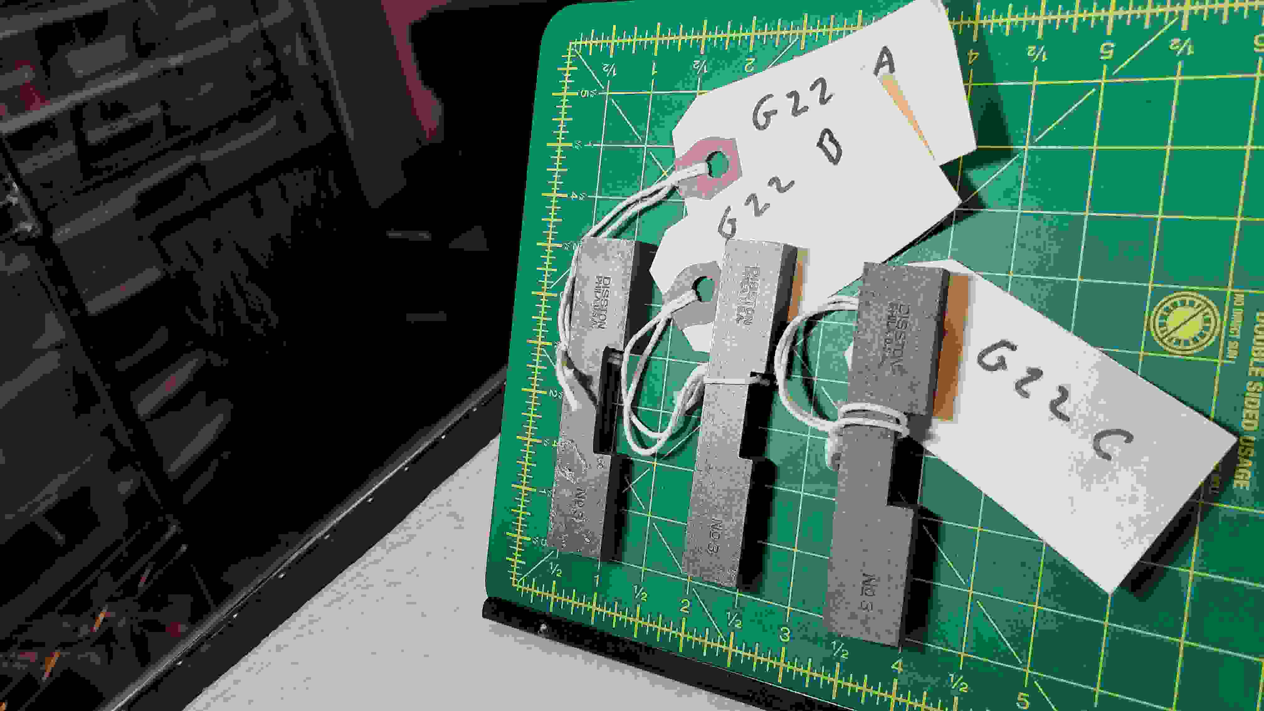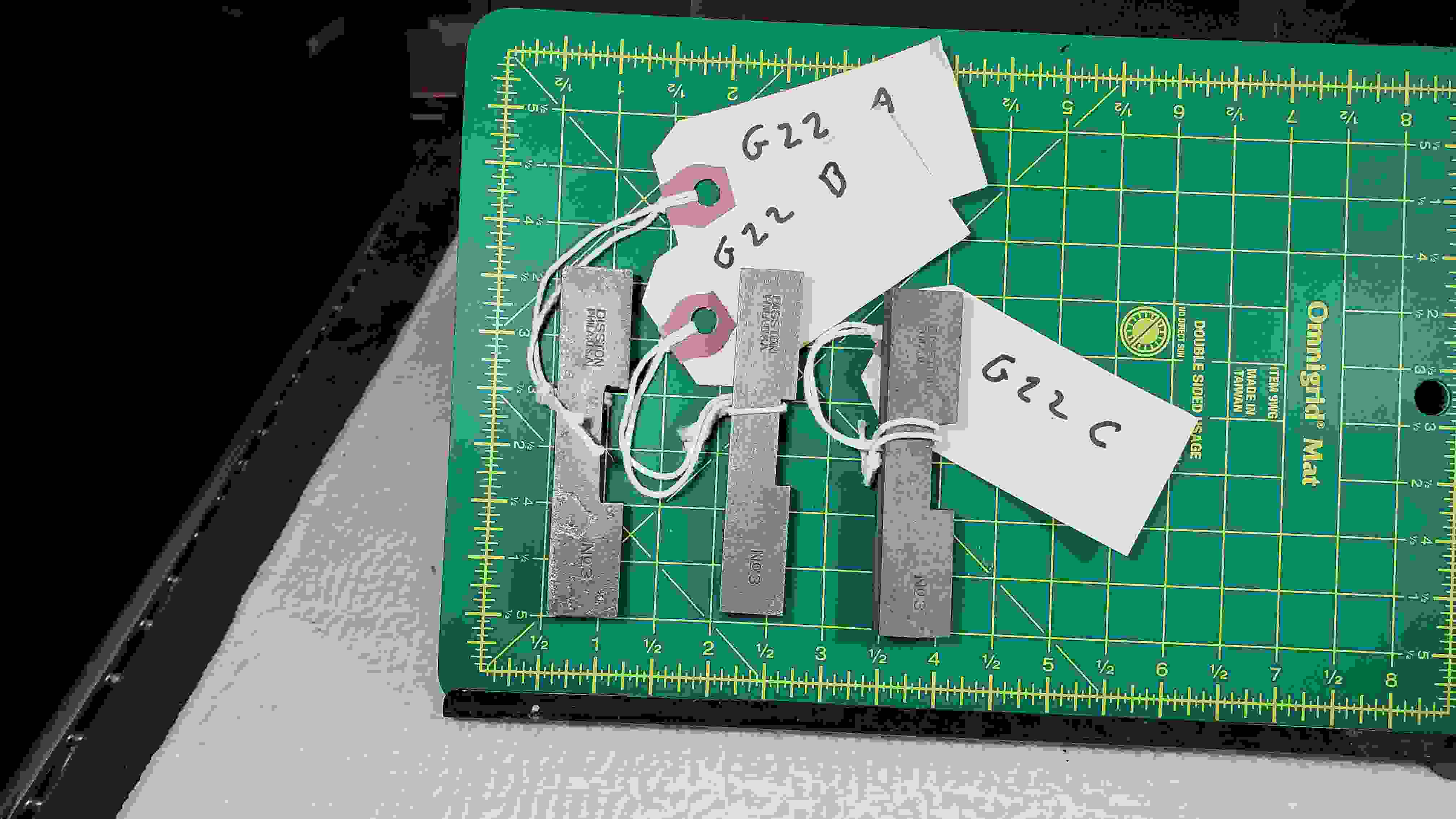 Note: These are three Disston No. 3 gauges which should be identical. However they are all different in at least their weight. G22A has been filed excesively and the physical sizes are different. Unfortunately the differences between G22A and the others to not show well.